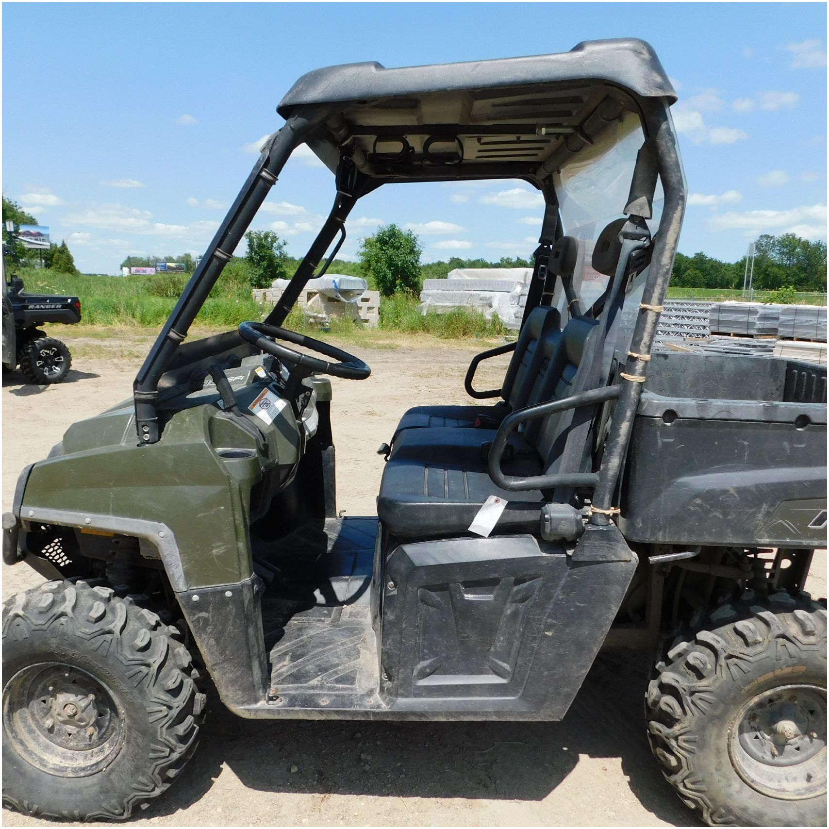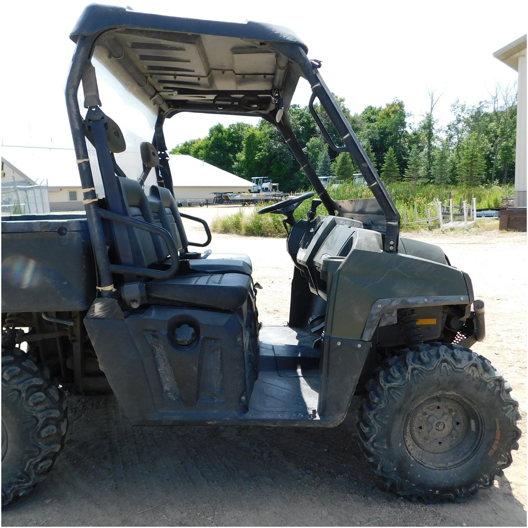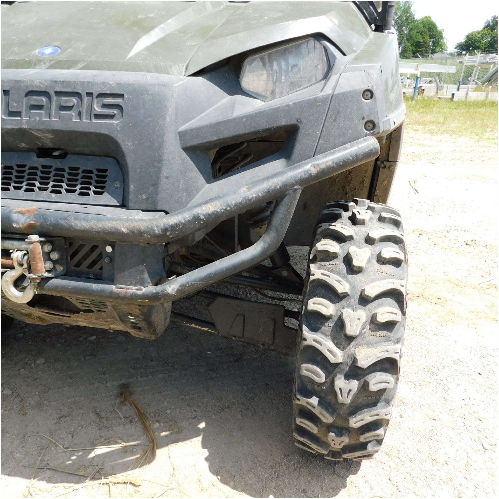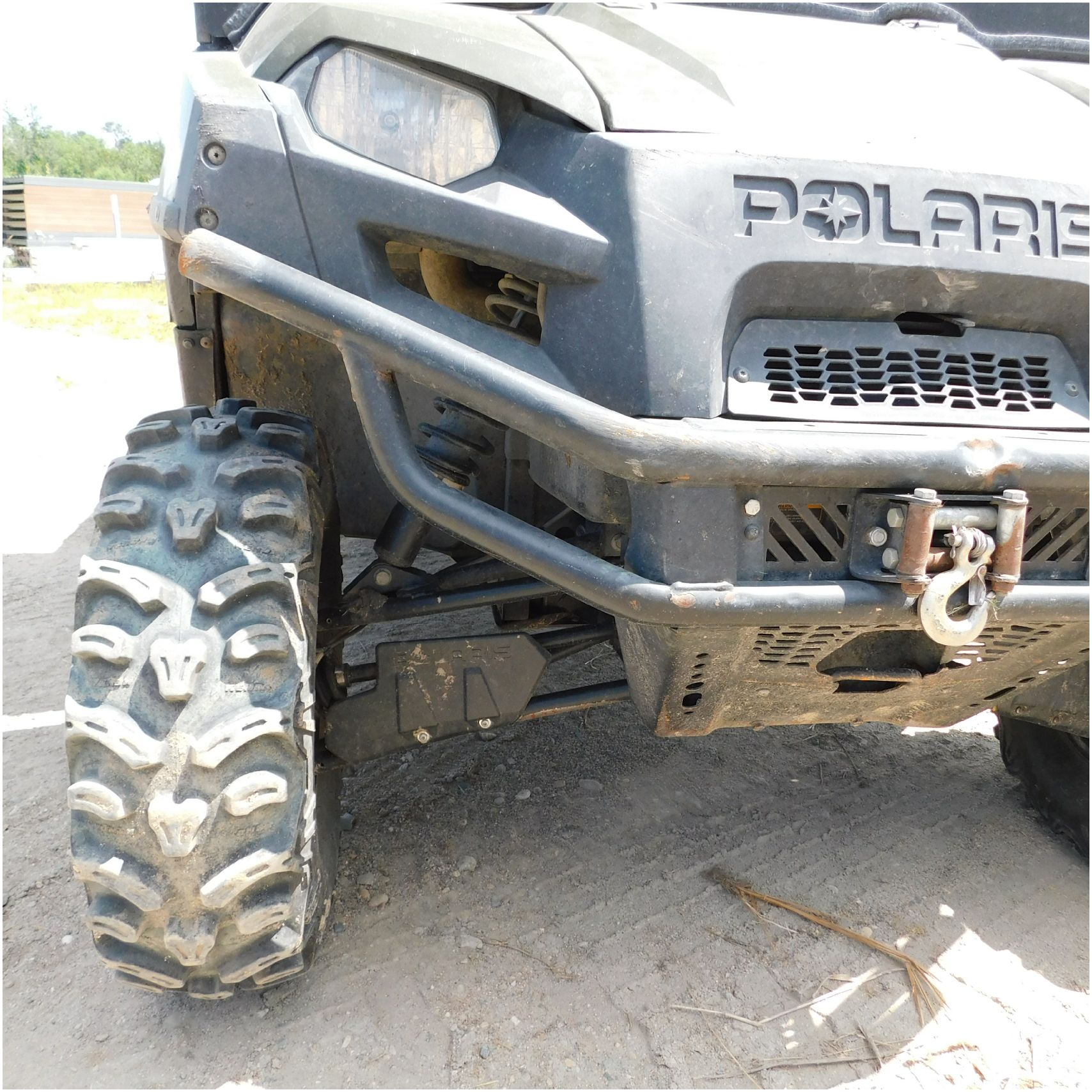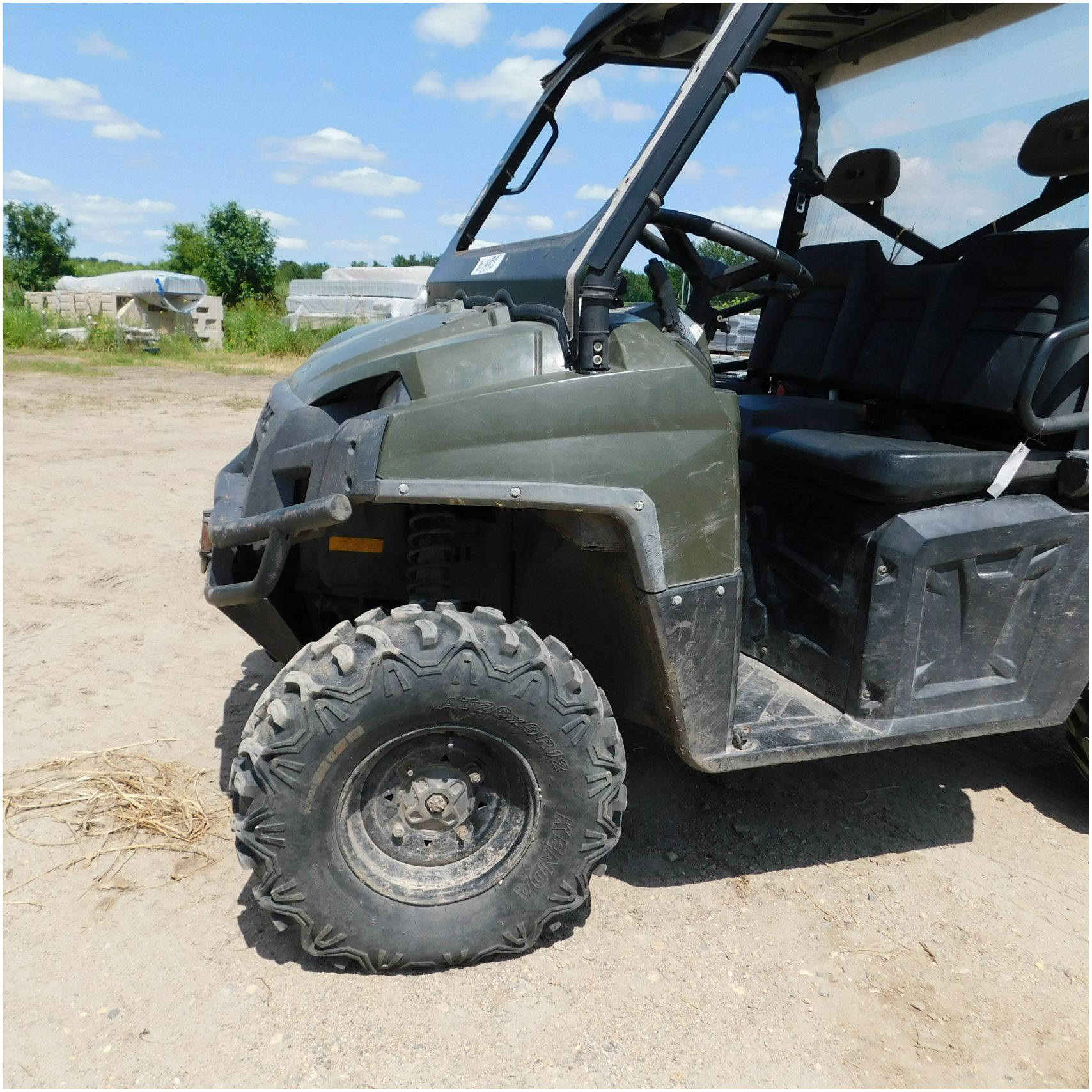 Up for auction is a 2010 Polaris Ranger 800xp. This UTV comes to us with frame damage. The front glass is broke out. The front bumper is rusty and pushed back. The front hook is scuffed up. The driver side has the normal scuffs. The rear box is cracked and the one taillight is broke out. The box is tweaked or out of whack. We are thinking the frame damage is causing that. The passenger side is pretty scuffed up and appears to be tipped on that side. The inside all around is in pretty decent shape. We did test drive it just around our lot and it seems to shift really hard and possible transmission issues. Good Luck Bidding on this Polaris!