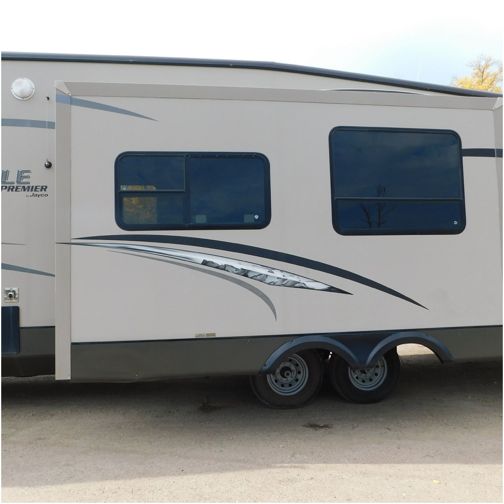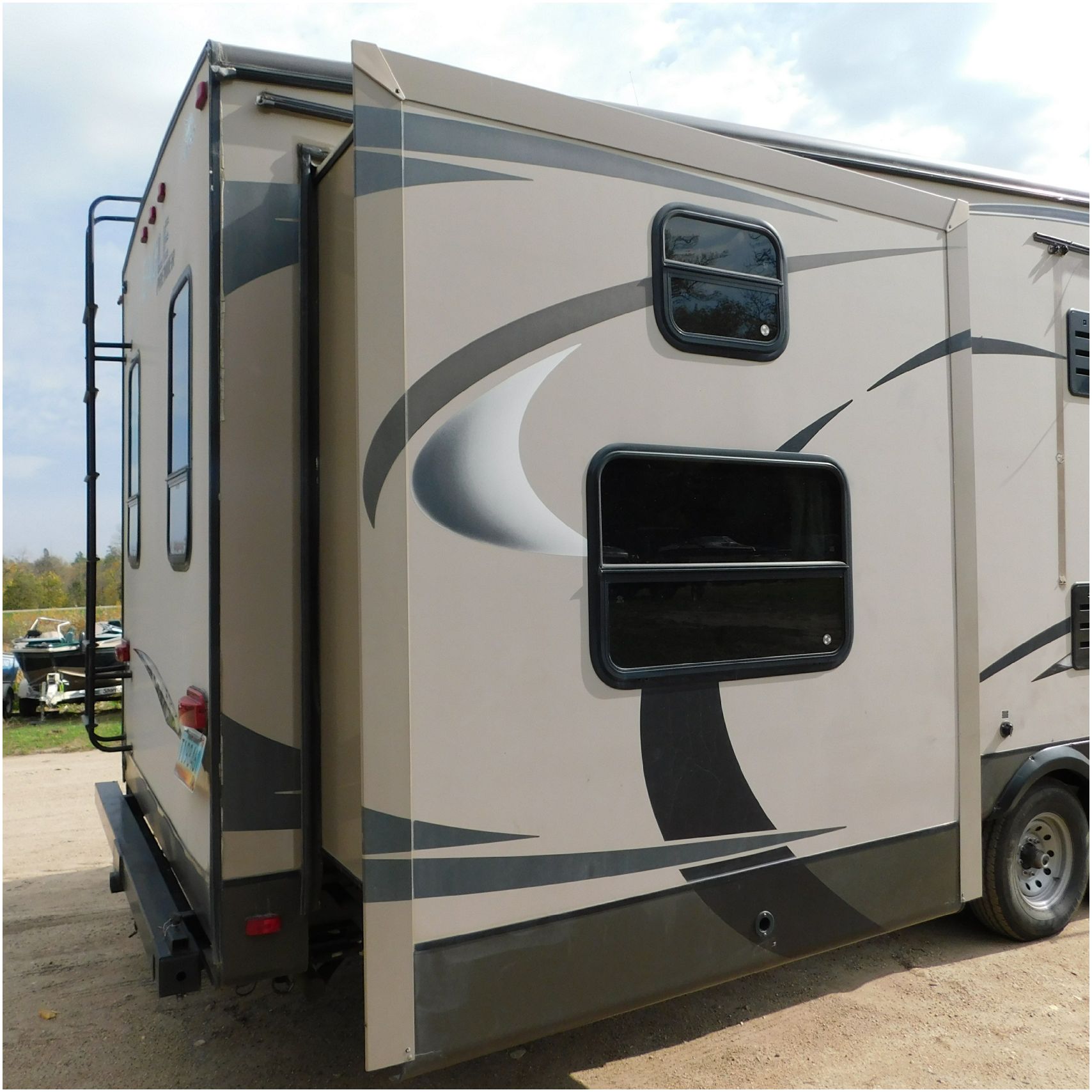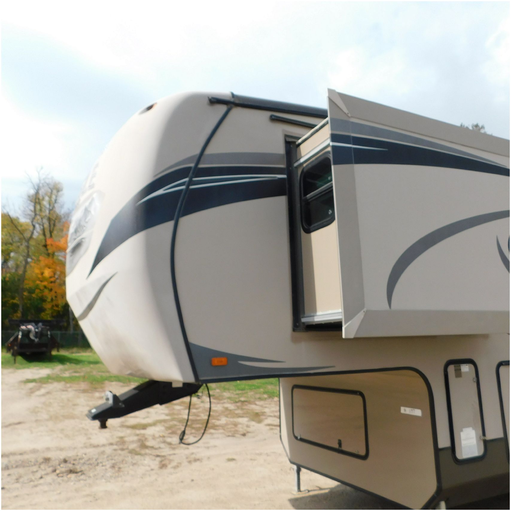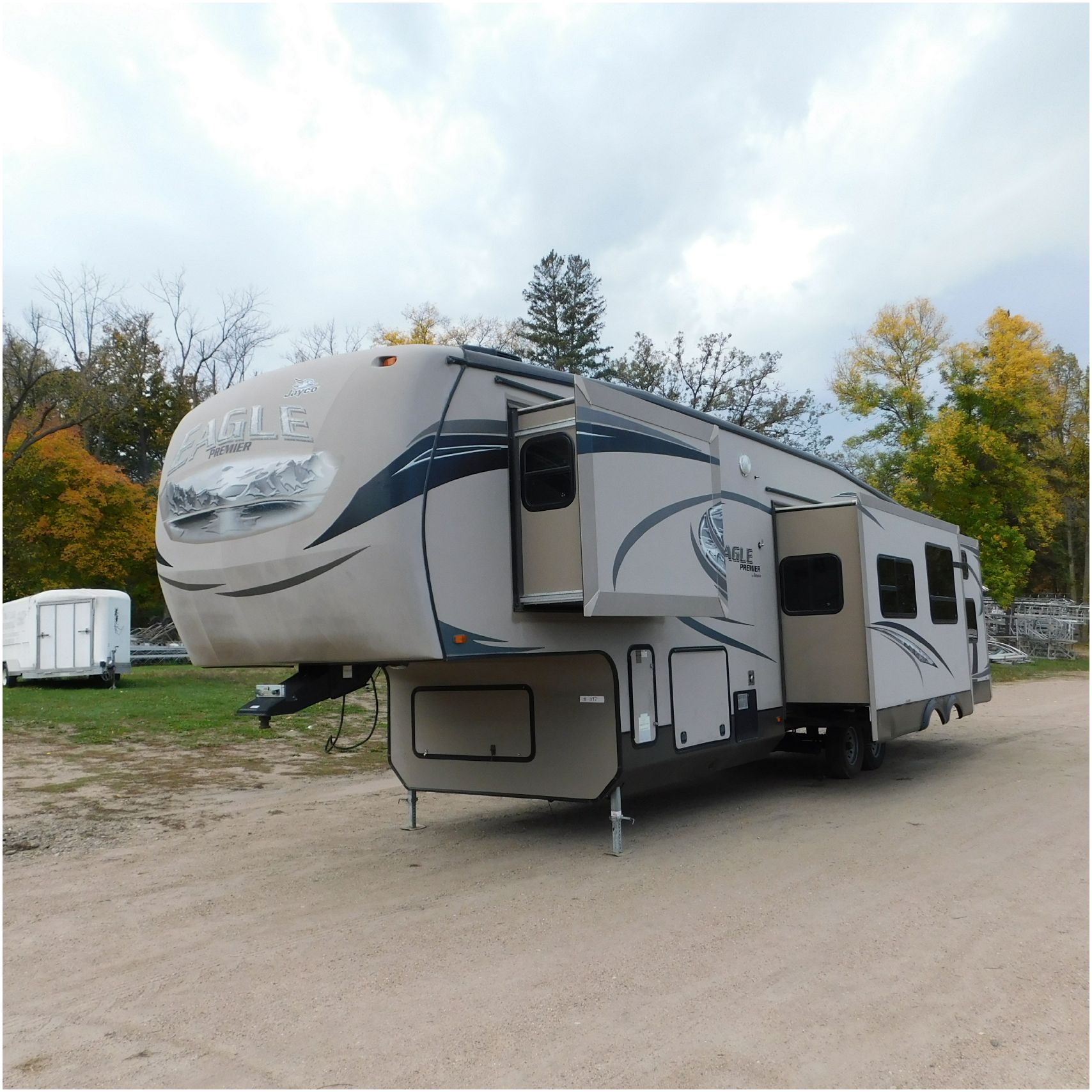 Up for auction is a 2013 Eagle Premier 365BHS. This 40’ 5th wheel camper comes to us with water damage. The front is weathered but in nice shape. The driver side bottom trim is dented. All three slides work as they should. The rear has one marker light lens broke. The passenger slide works as it should. The awing is ripped off. The roof looks to be as it should. We were told the black tank has water damage and caused damage to the underbody. The rear wall was water damage. The trim around the bathroom is broke off. The rest of the inside appears as it should. The floor does feel solid but there may be hidden water damage. Good Luck Bidding on this Camper!