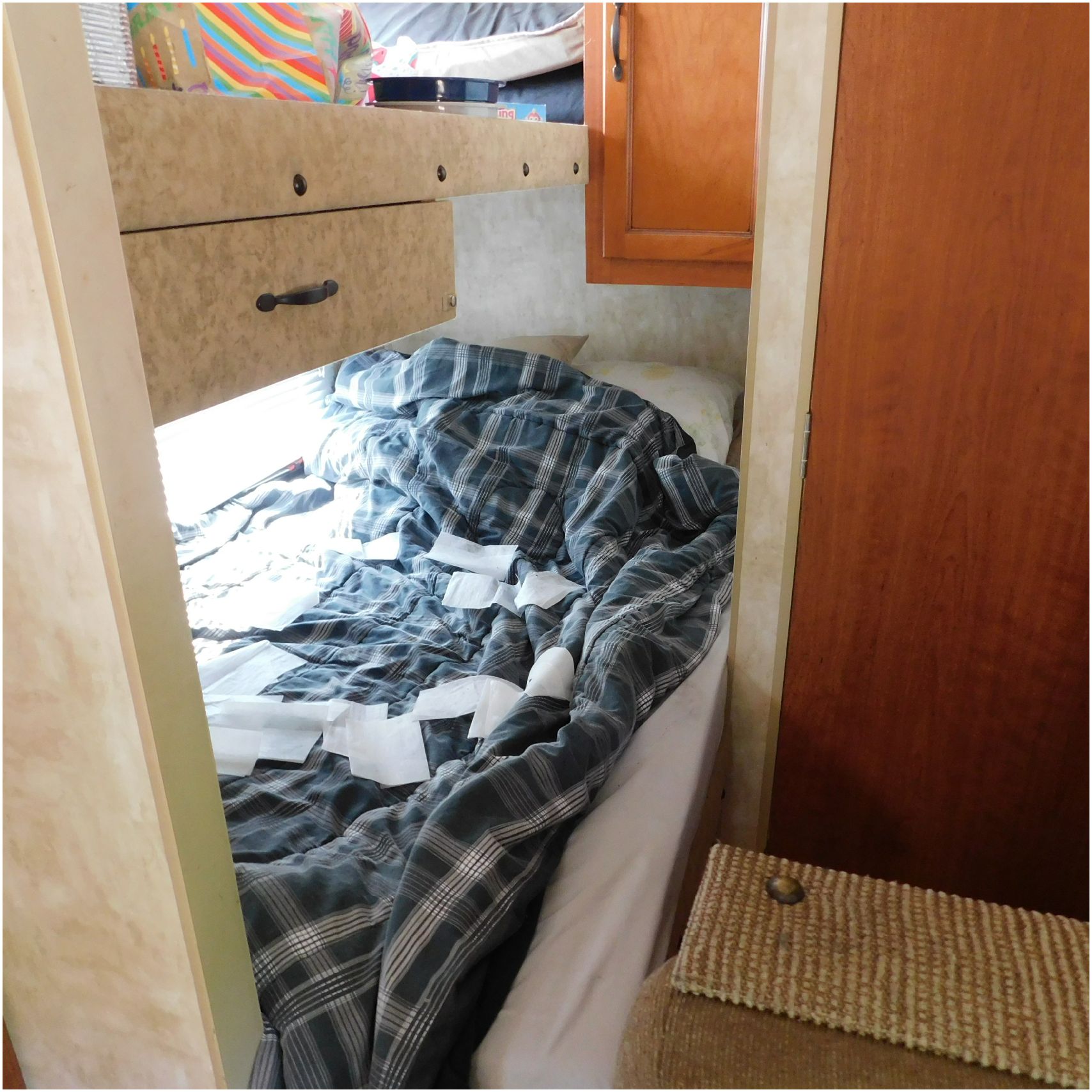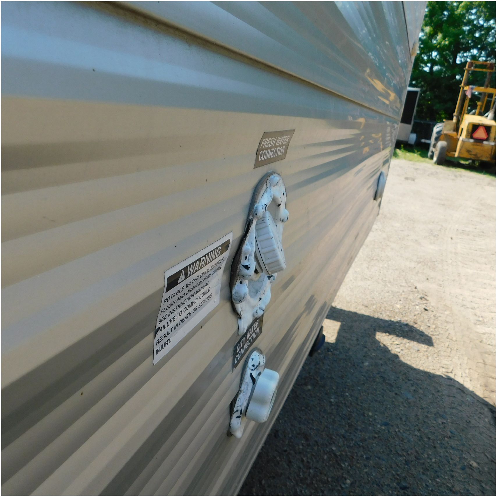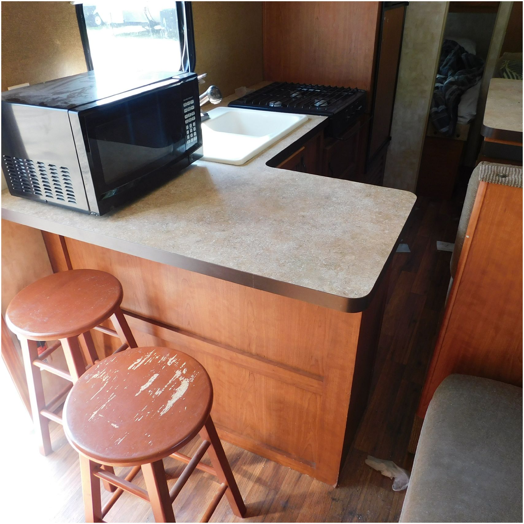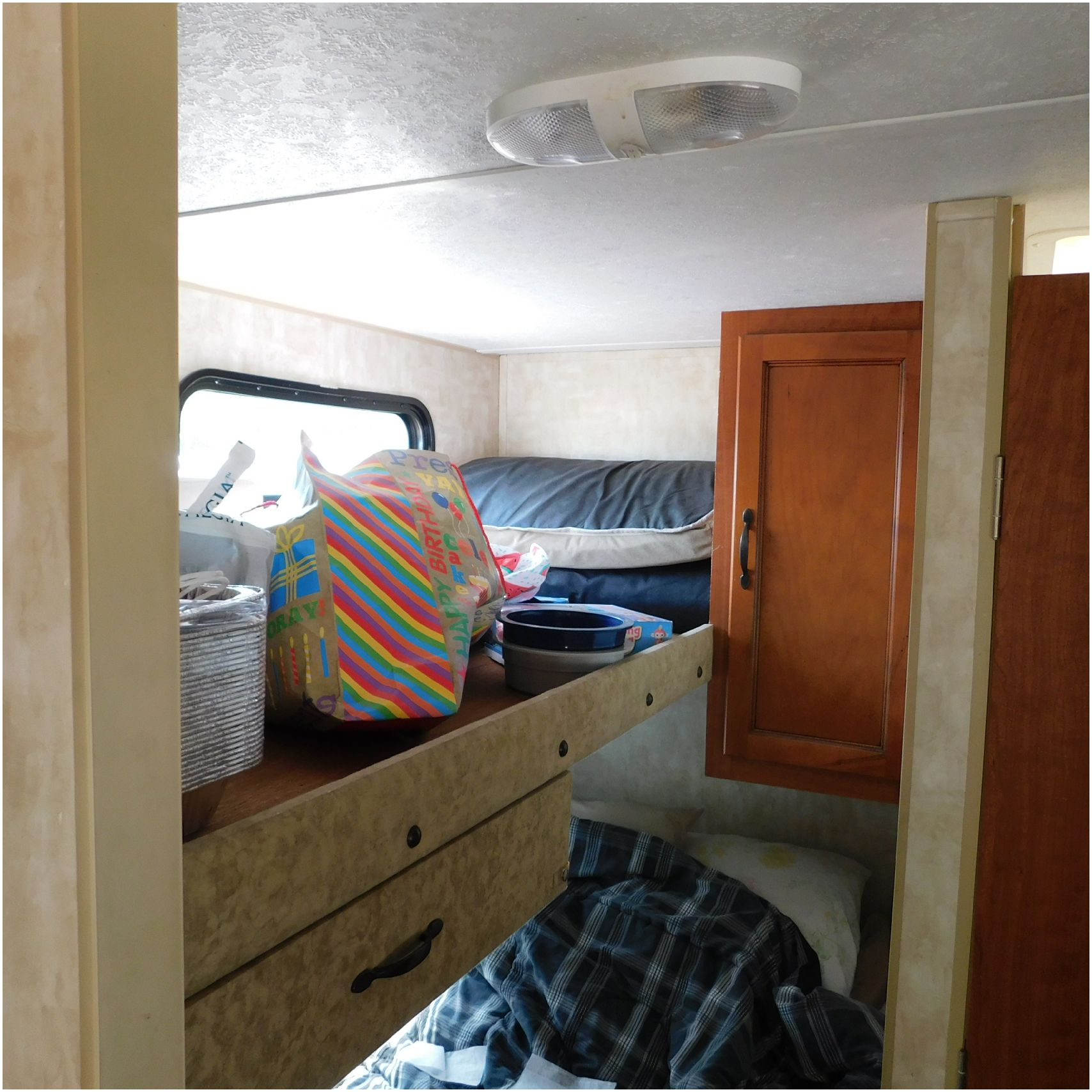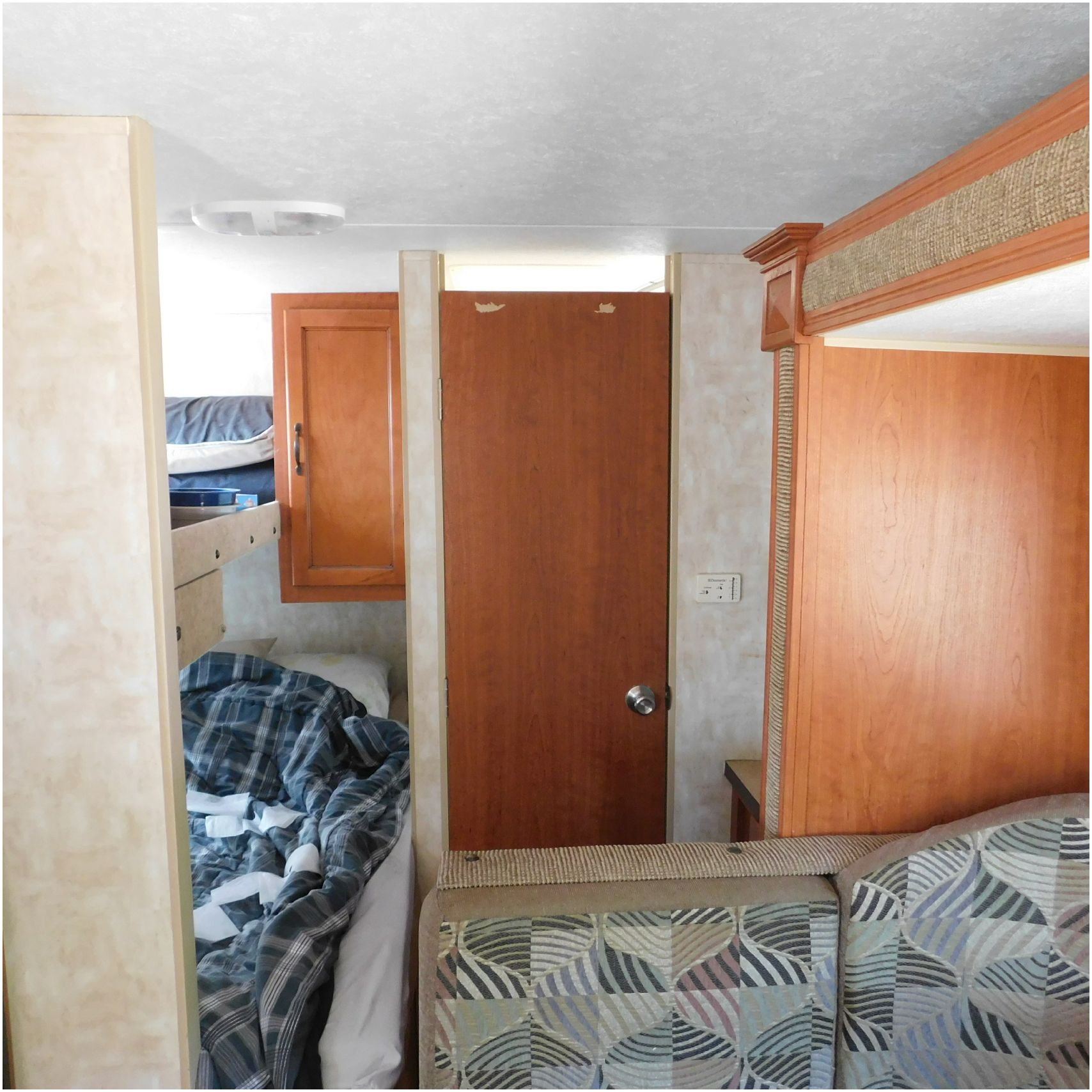 2011 Cherokee 28BHG. This camper comes to us due heat warping damage. A camper next to this one started on fire and the heat from the other camper warped and melted the camper. The front of the camper has a couple dents toward the top but is in nice shape. The driver side slide out does not work. We are thinking some electrical issues due to the heat. The siding is really rippling and it appears as the whole side is out of whack and wavy. A few of the vents and outlets are melted. The middle window is shattered. The rear is weathered some but mainly in ok shape. The passenger side awing does not work and the siding has a couple scuffs. The roof has a few patches. The inside front room appears as it should. The kitchen/living area feels like it was abused and used. The wall all around have some peeling and chipping. The bathroom and rear bunk room appears as it should.