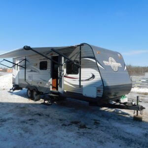 Coming to us is Stock # 1486 a 2007 Keystone Laredo 29RL 5Th wheel camper that features one, slide out that worked when we tested it, comes to us with pea-sized hail damage that is noticeable here and there especially in the lower plastic paneling on both sides and most all the decals/pin stripping is either cracking, peeling, falling off or has fallen off and the paint is a little faded all around the unit. Starting at the front other than the decals it appears to be in pretty good shape, on the drivers one of the light fixtures next to the water hook up cover is broken and missing, there is a small strip of white duct tape applied to the inside of one of the slide outs covering some possible damage and the wheel well fender is cracked near the middle, the rear look good, on the passenger side again the wheel fender is cracked in in a couple of spots, the awning appears to be in not that great of shape so we didn’t deploy it for pictures, there is a rather large dent from top to bottom near the back and again there is a small piece of tape covering up something on the trim in the very front. The roof sustained hail damage. On the inside there are some screws in the walls throughout that look to be from where things were hung, the rest of the inside looks to be in good shape. There could be some hidden damage on or in this camper we could not see or may have missed, and it is being sold AS-IS but is ready for its next owner to fix up and enjoy. Good luck bidding on this unit.