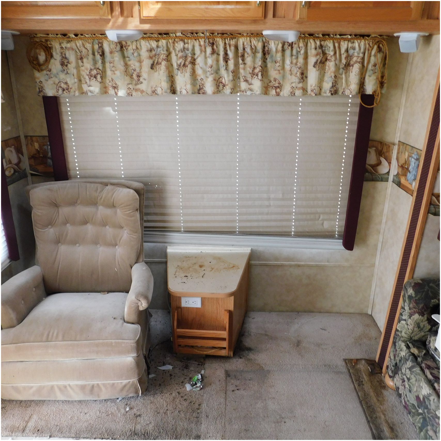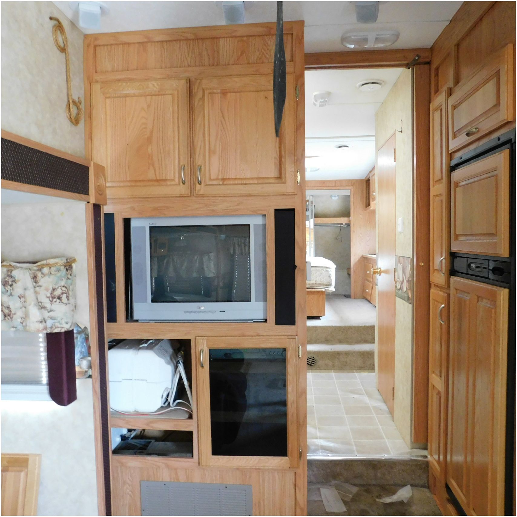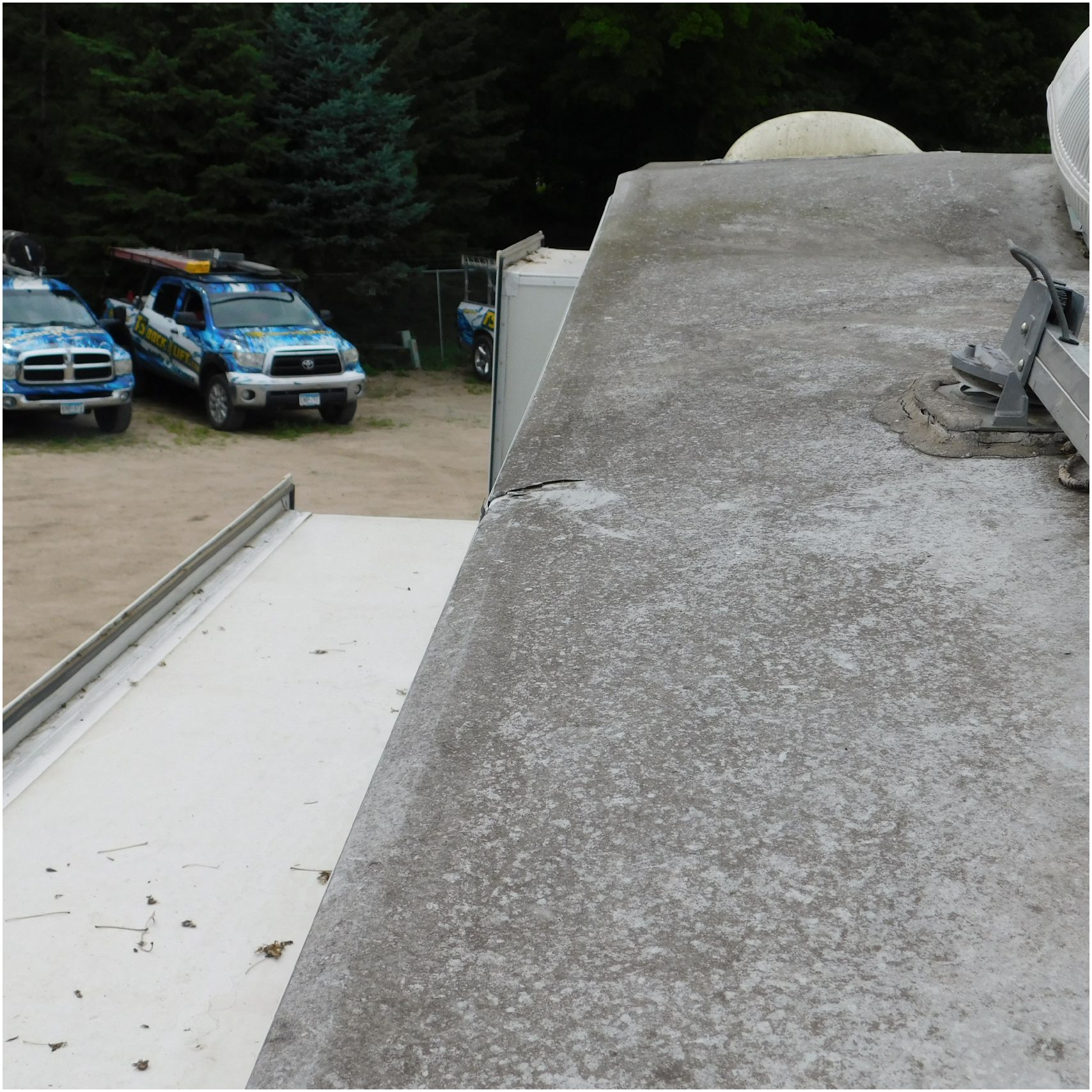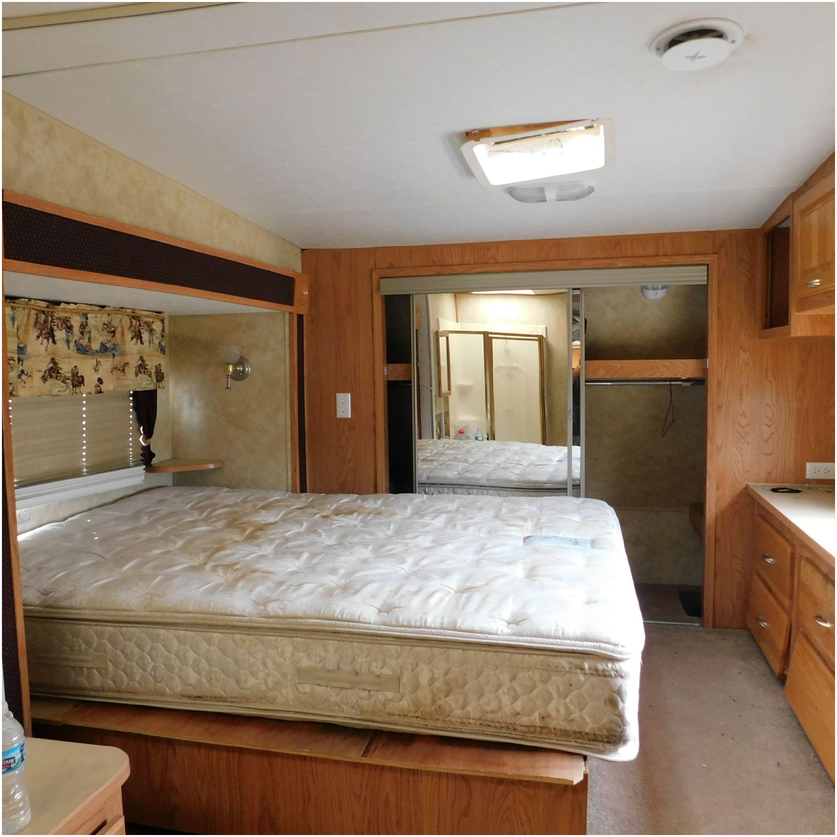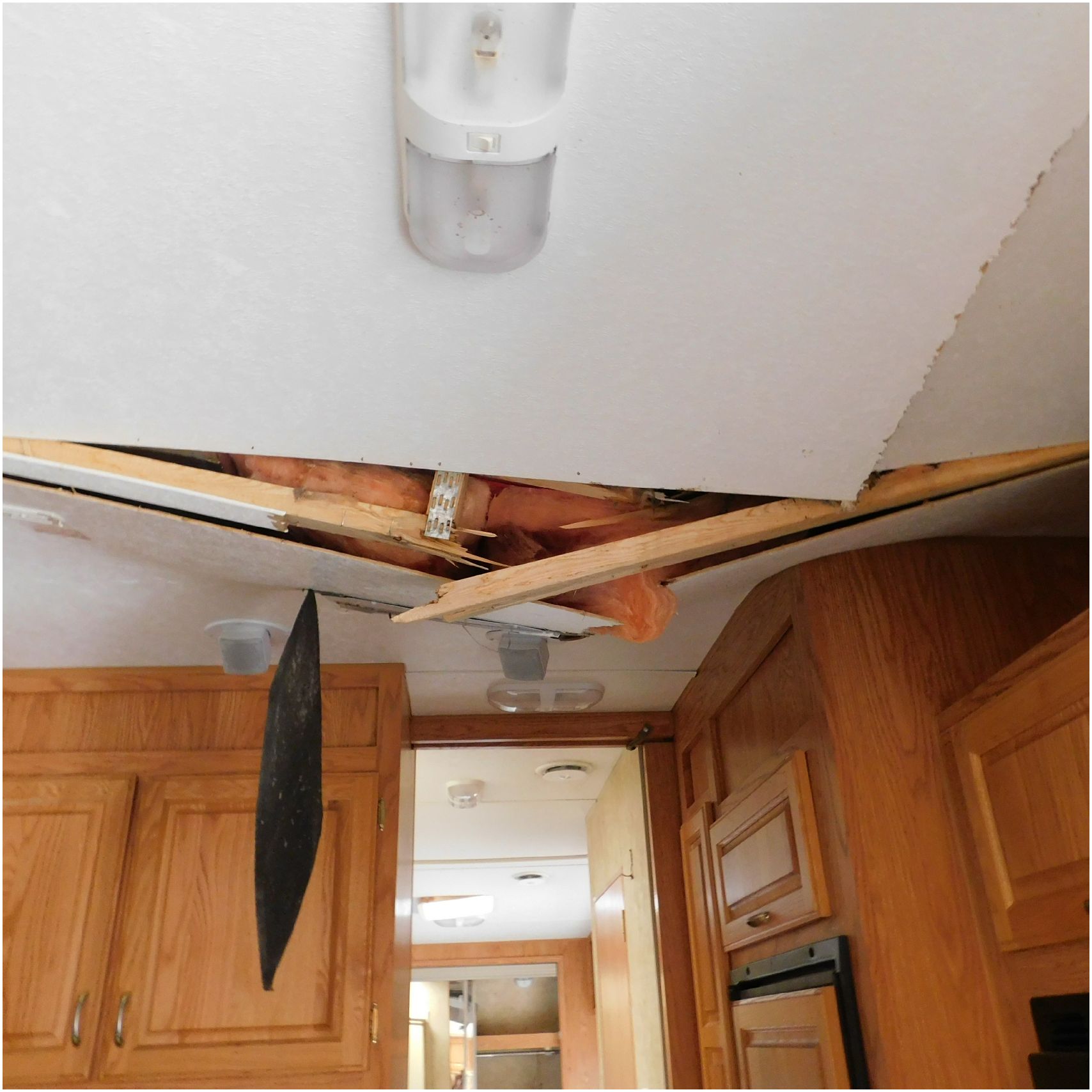 Up for auction is a 2005 Jayco Eagle 301RLS. This 33’ 5th wheel comes to us with roof damage. The front of the camper is weathered. The driver side is pretty beat up and weathered. The rear is also weathered. The passenger side is weathered and the awing is in pretty tough shape. The bottom trim is dented and the fender is cracked. The roof is caving in and the rafters are damaged. The roof does have a couple holes in the rubber. The inside all around is in tough shape with the roof being damaged causing a hole. The camper has water damage all throughout the inside. The complete camper all around is pretty beat up and in toughs shape. Good Luck Bidding on this Camper!
