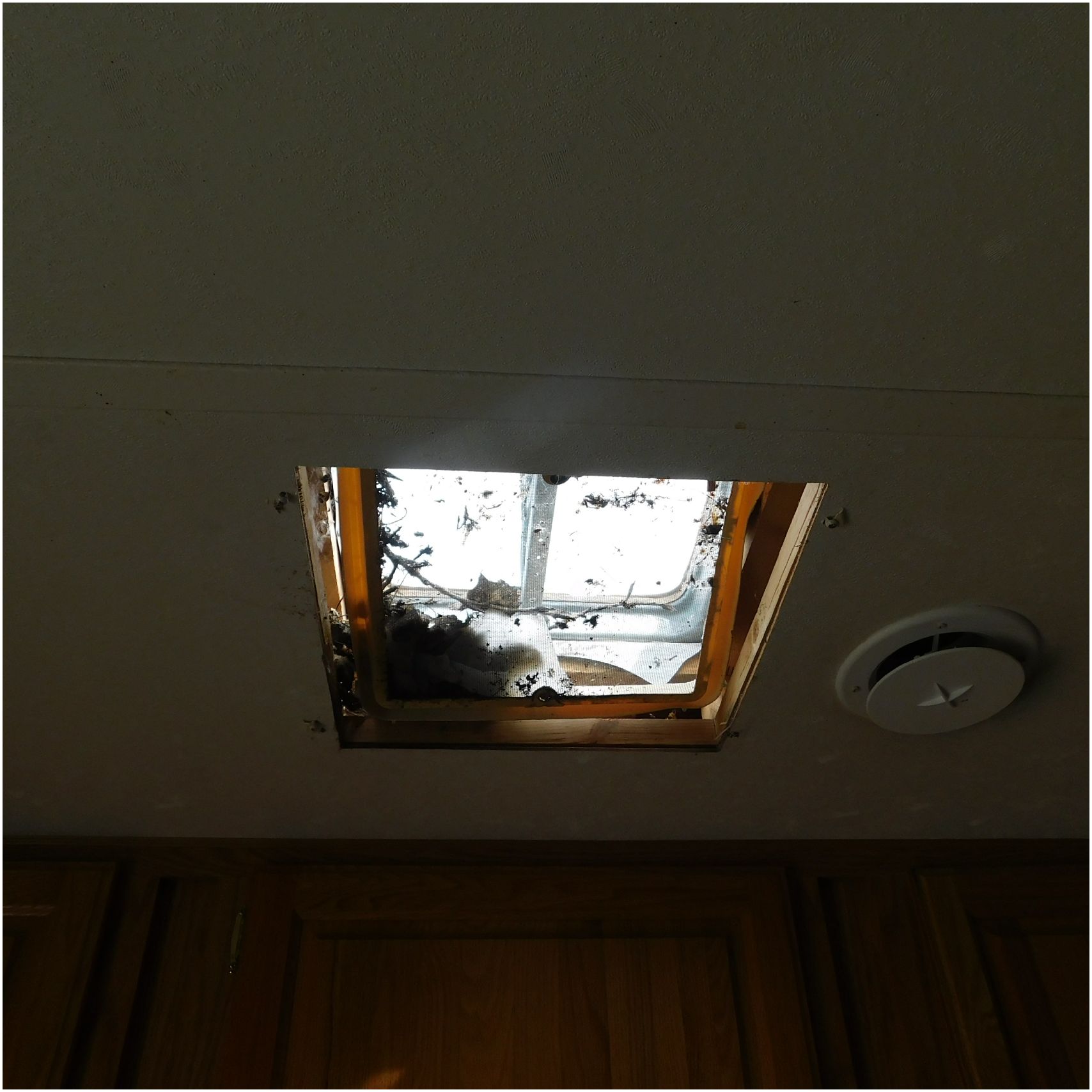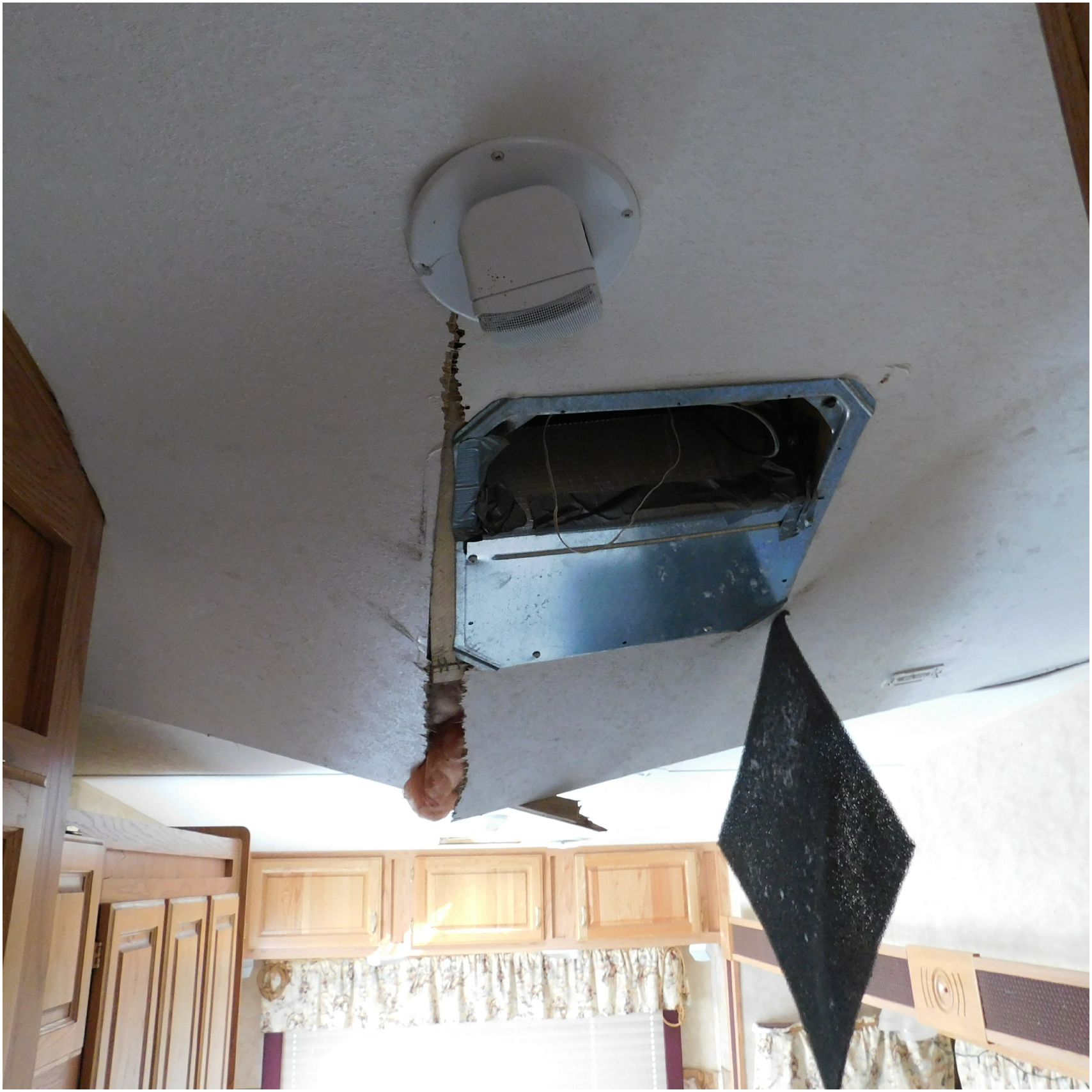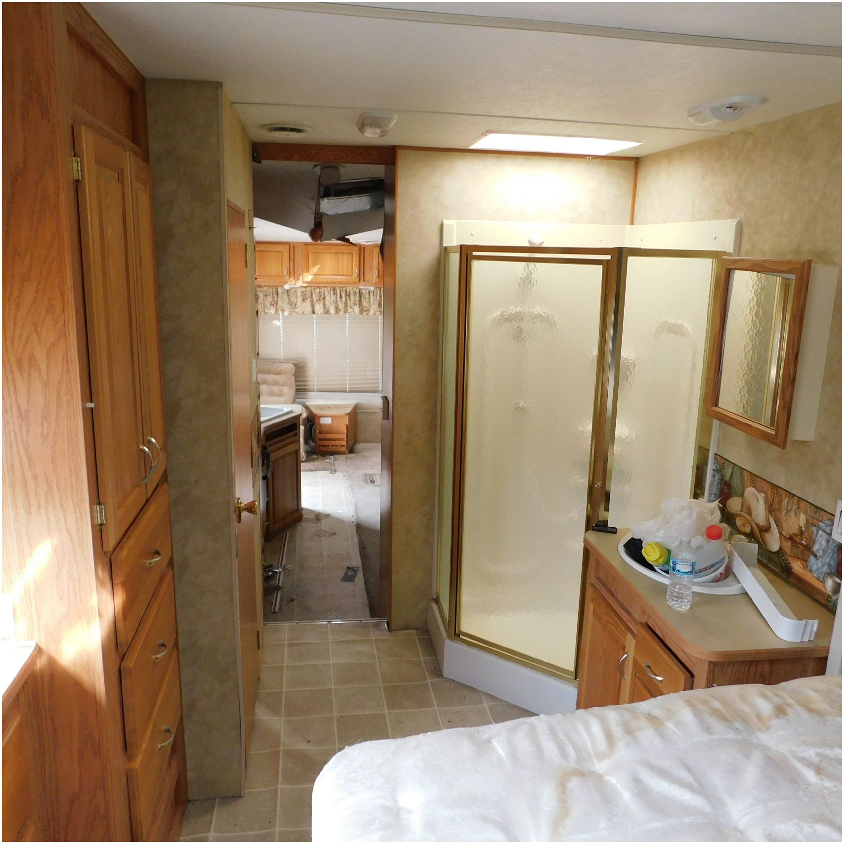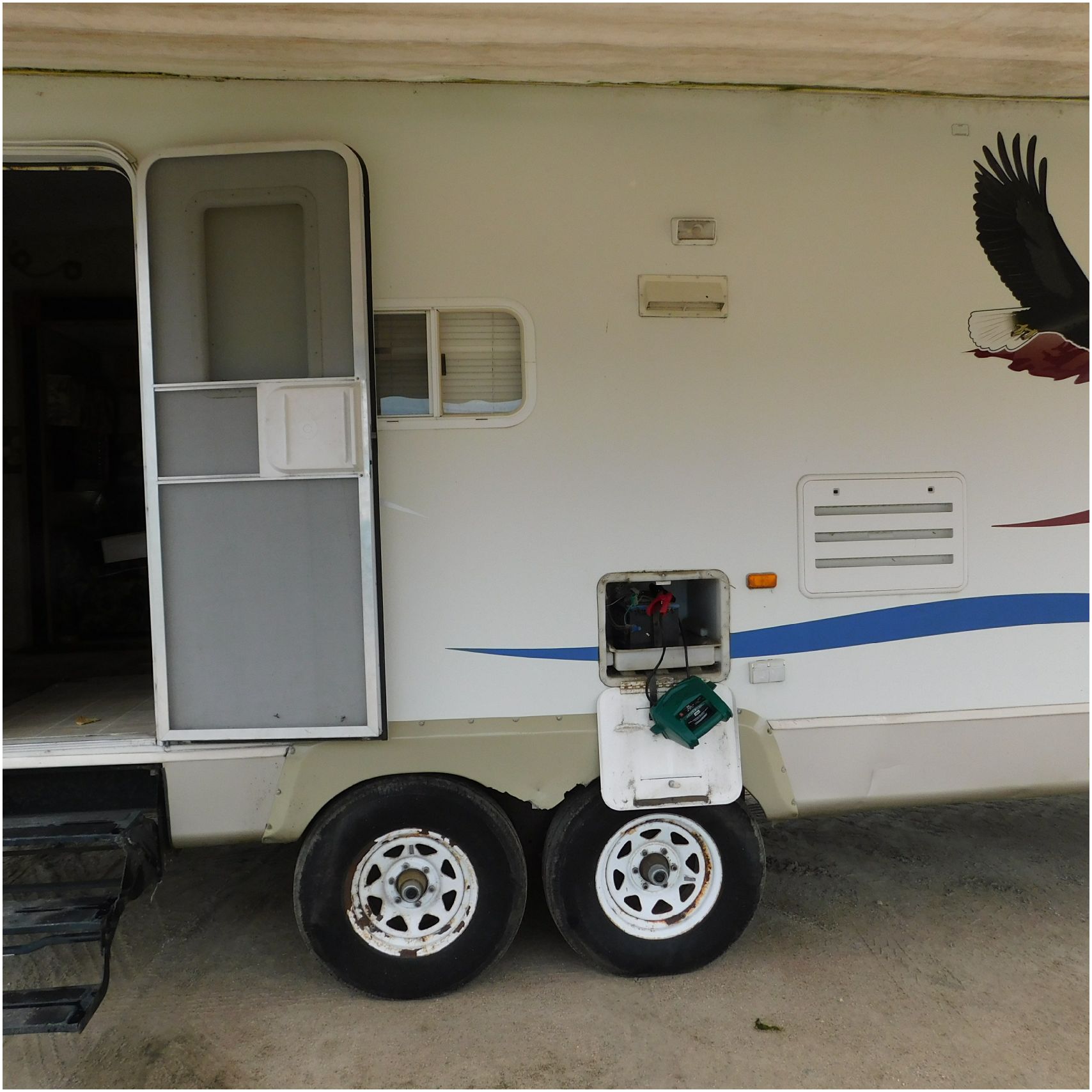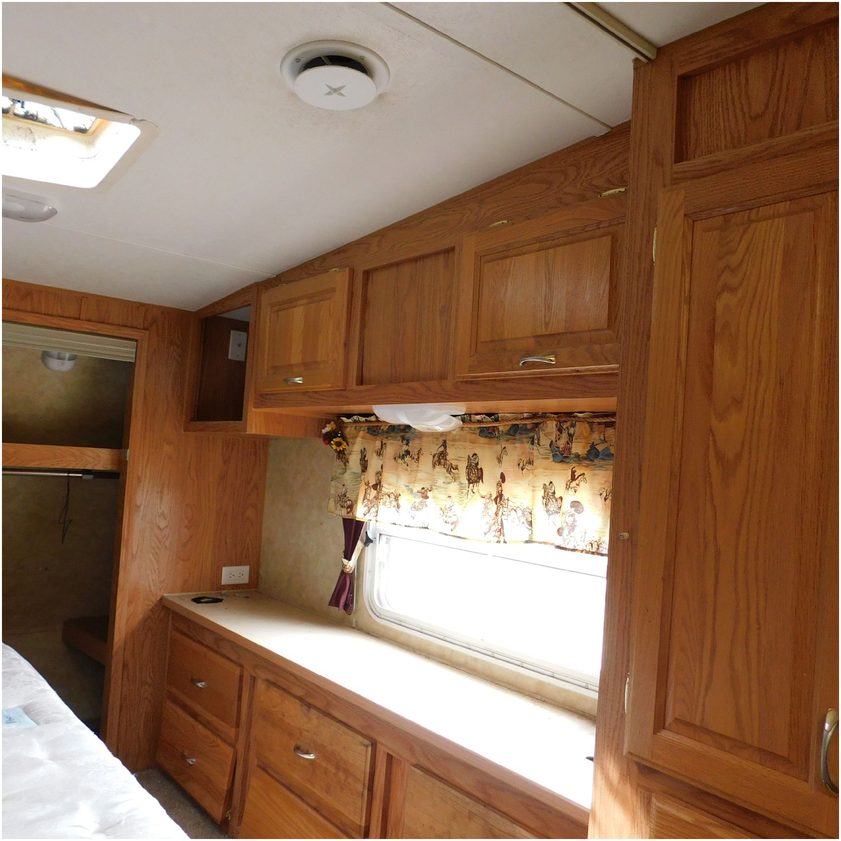 Up for auction is a 2005 Jayco Eagle 301RLS. This 33’ 5th wheel comes to us with roof damage. The front of the camper is weathered. The driver side is pretty beat up and weathered. The rear is also weathered. The passenger side is weathered and the awing is in pretty tough shape. The bottom trim is dented and the fender is cracked. The roof is caving in and the rafters are damaged. The roof does have a couple holes in the rubber. The inside all around is in tough shape with the roof being damaged causing a hole. The camper has water damage all throughout the inside. The complete camper all around is pretty beat up and in toughs shape. Good Luck Bidding on this Camper!