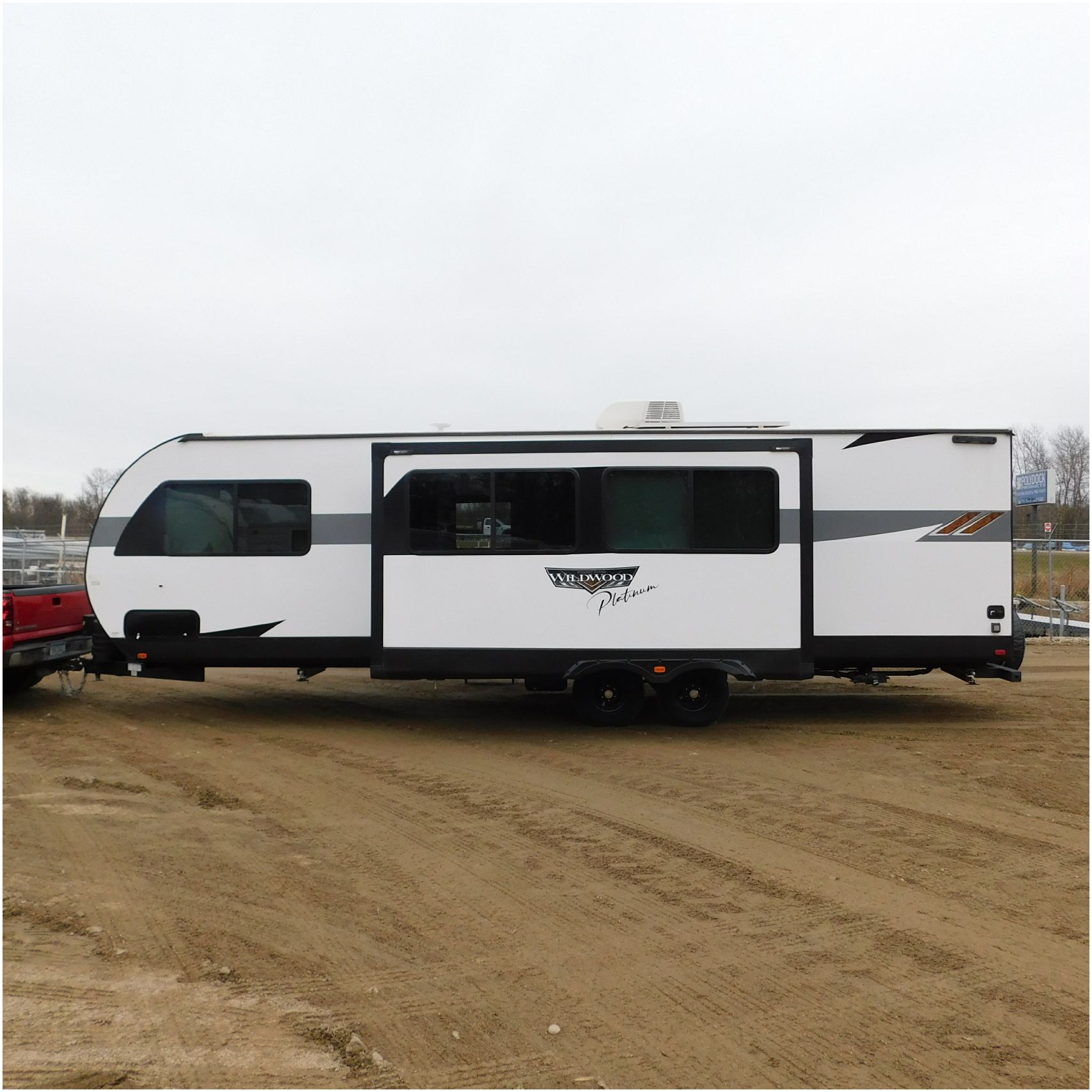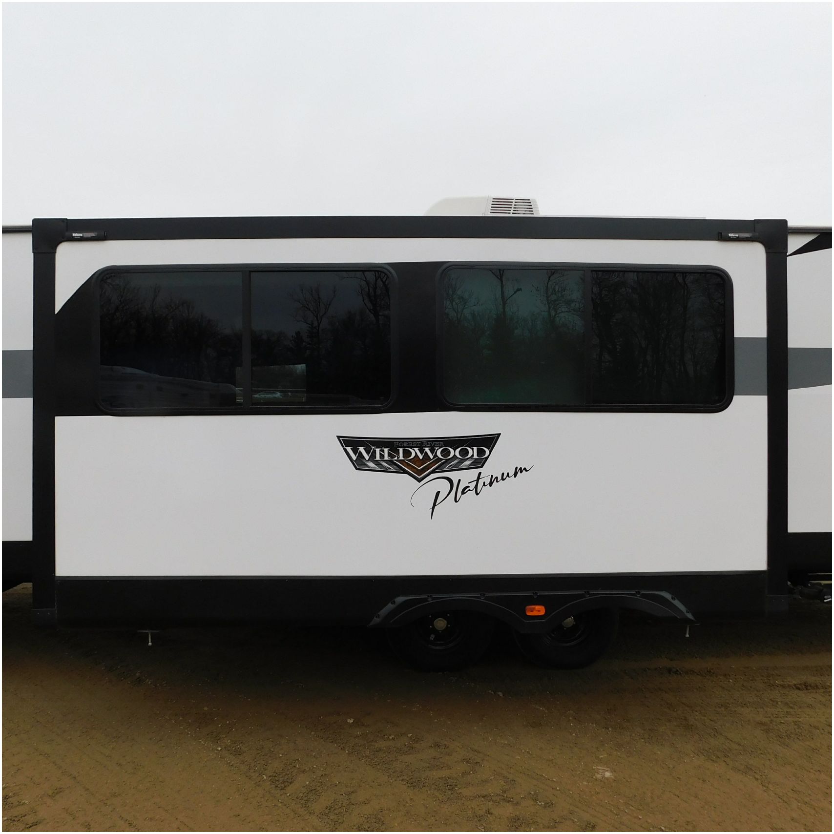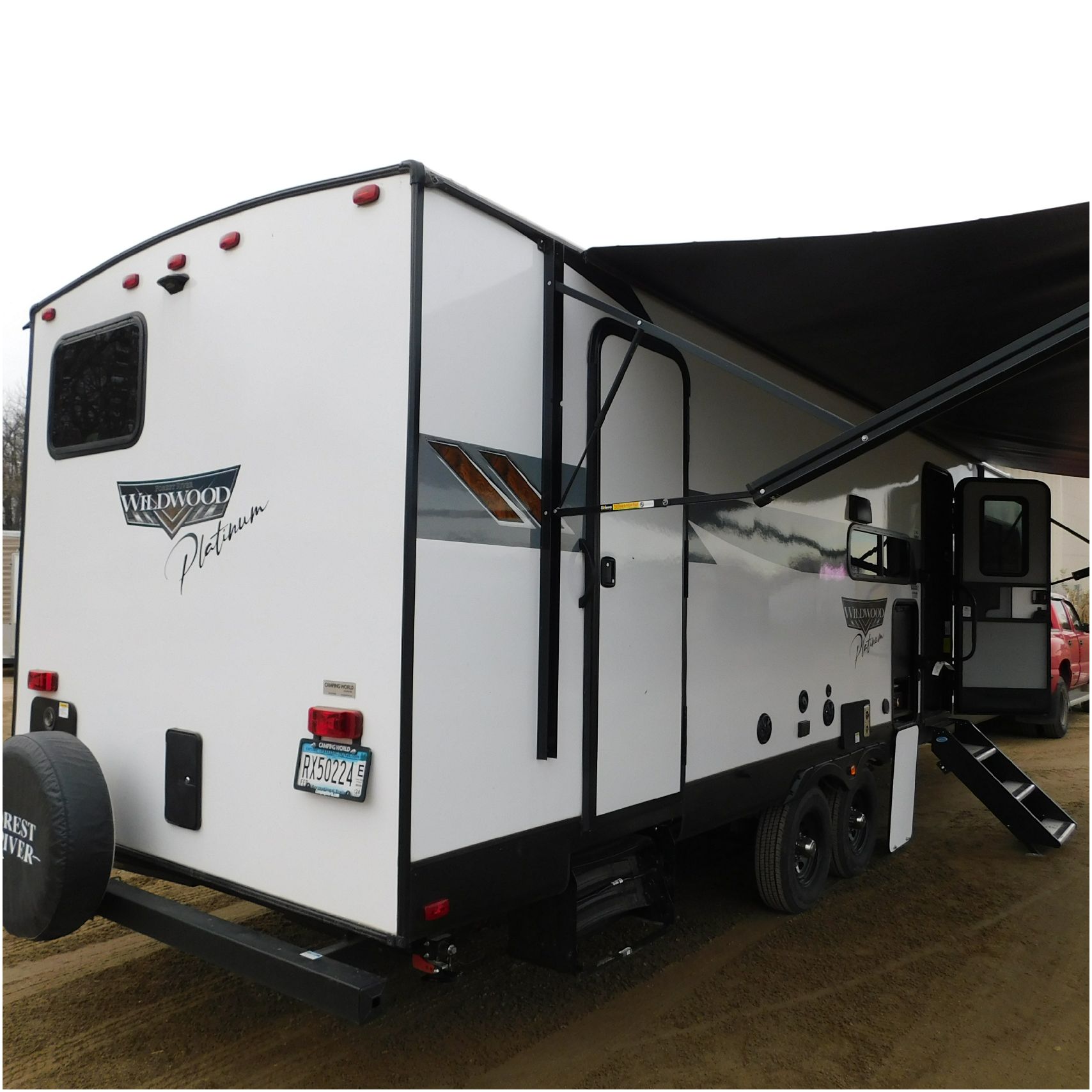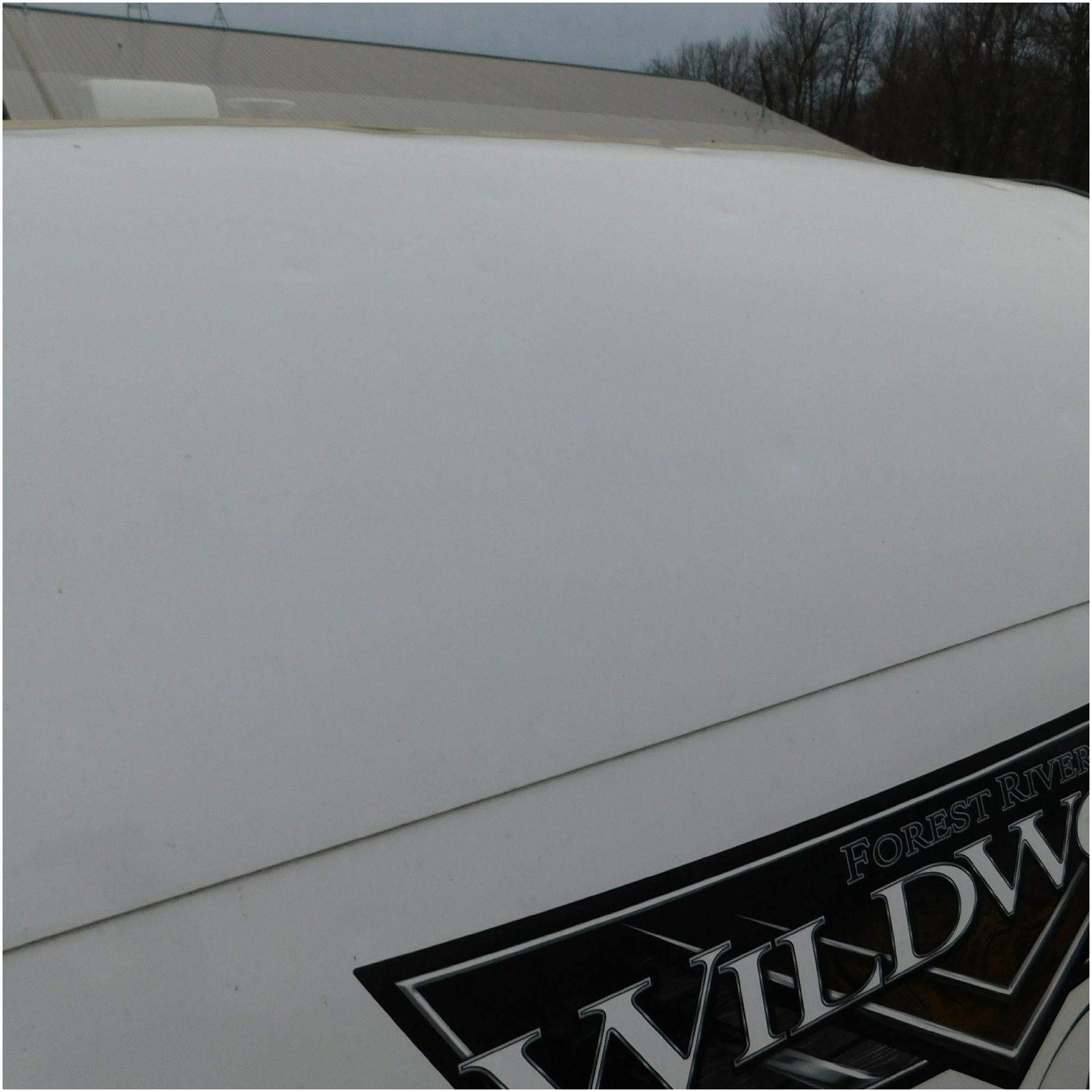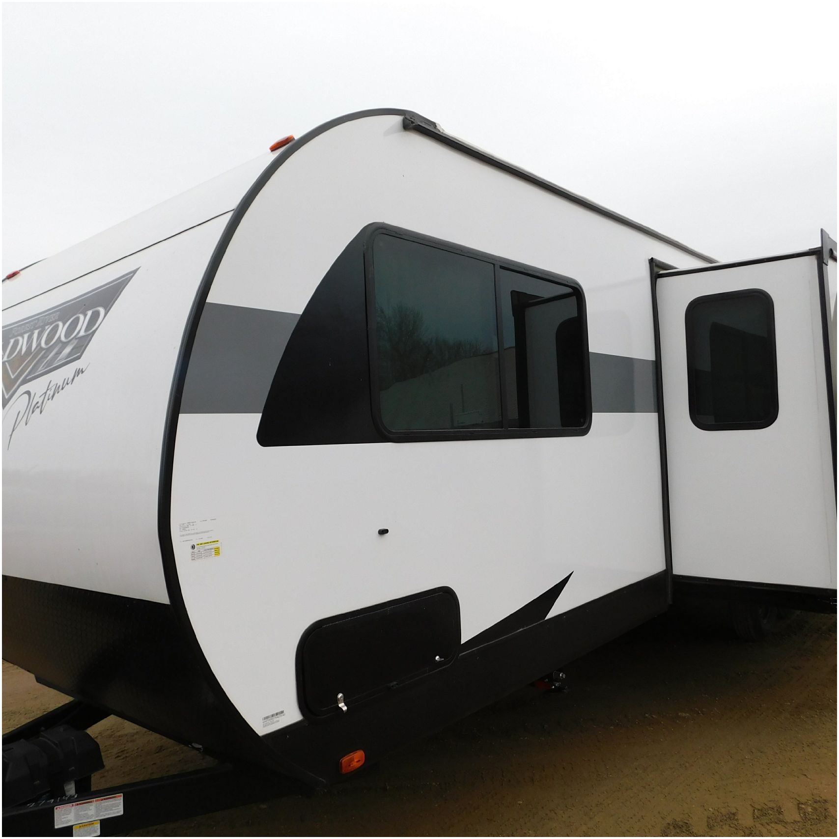 2014 Wildwood Platinum 26DBUD. This travel trailer comes to us with hail damage. The front has hail dents along the rounded part up top. The driver side is in nice shape and the slide out works as it should. The rear looks as it should. The passenger side has a couple small light hail dents. The awing extends and retracts as it should. The roof appears as it should besides the skylights having some stress marks from the hail and the solar panel is damaged from the hail. The inside completely all around is in very nice shape and clean!