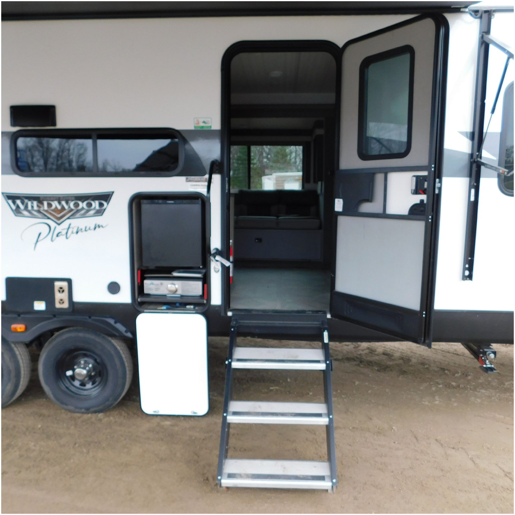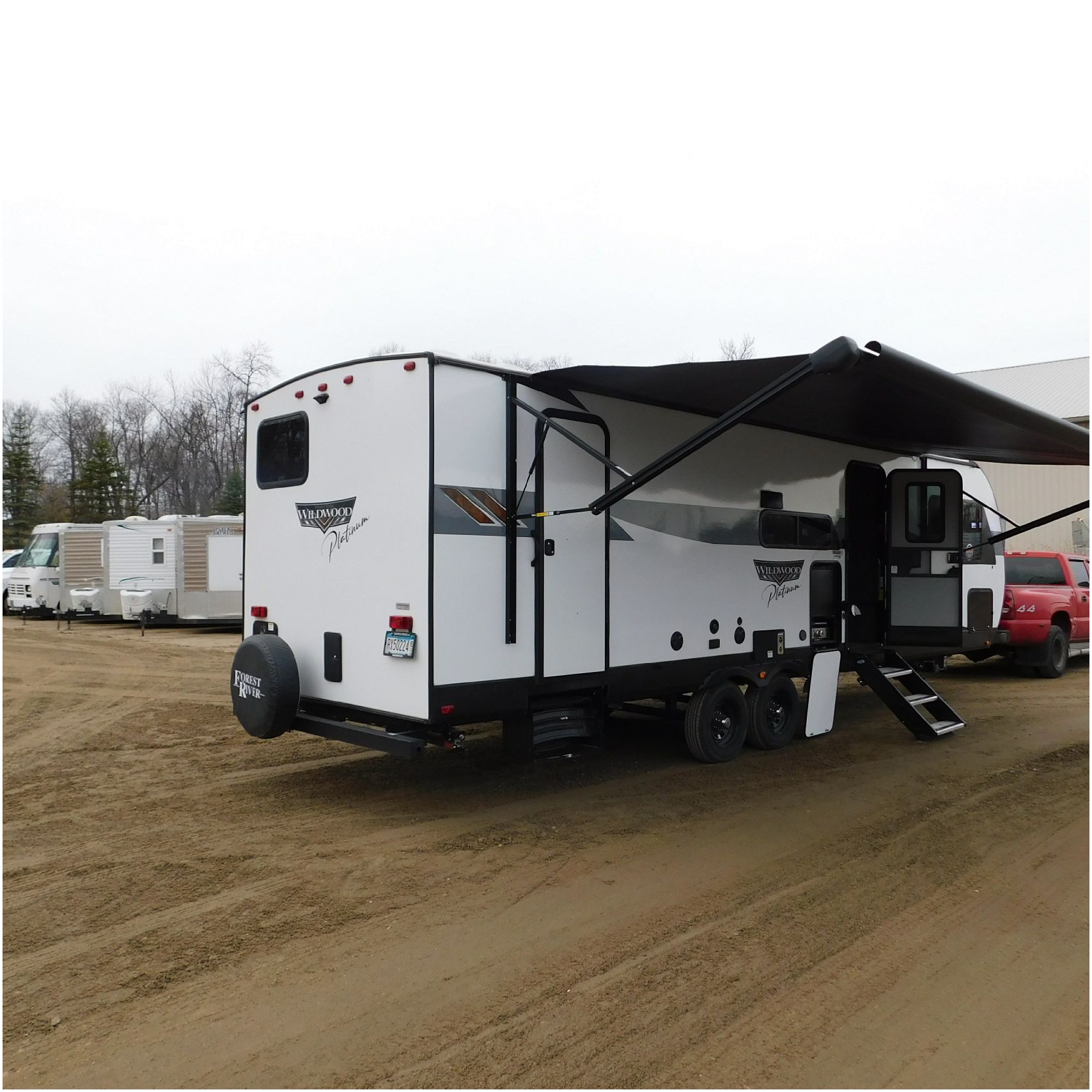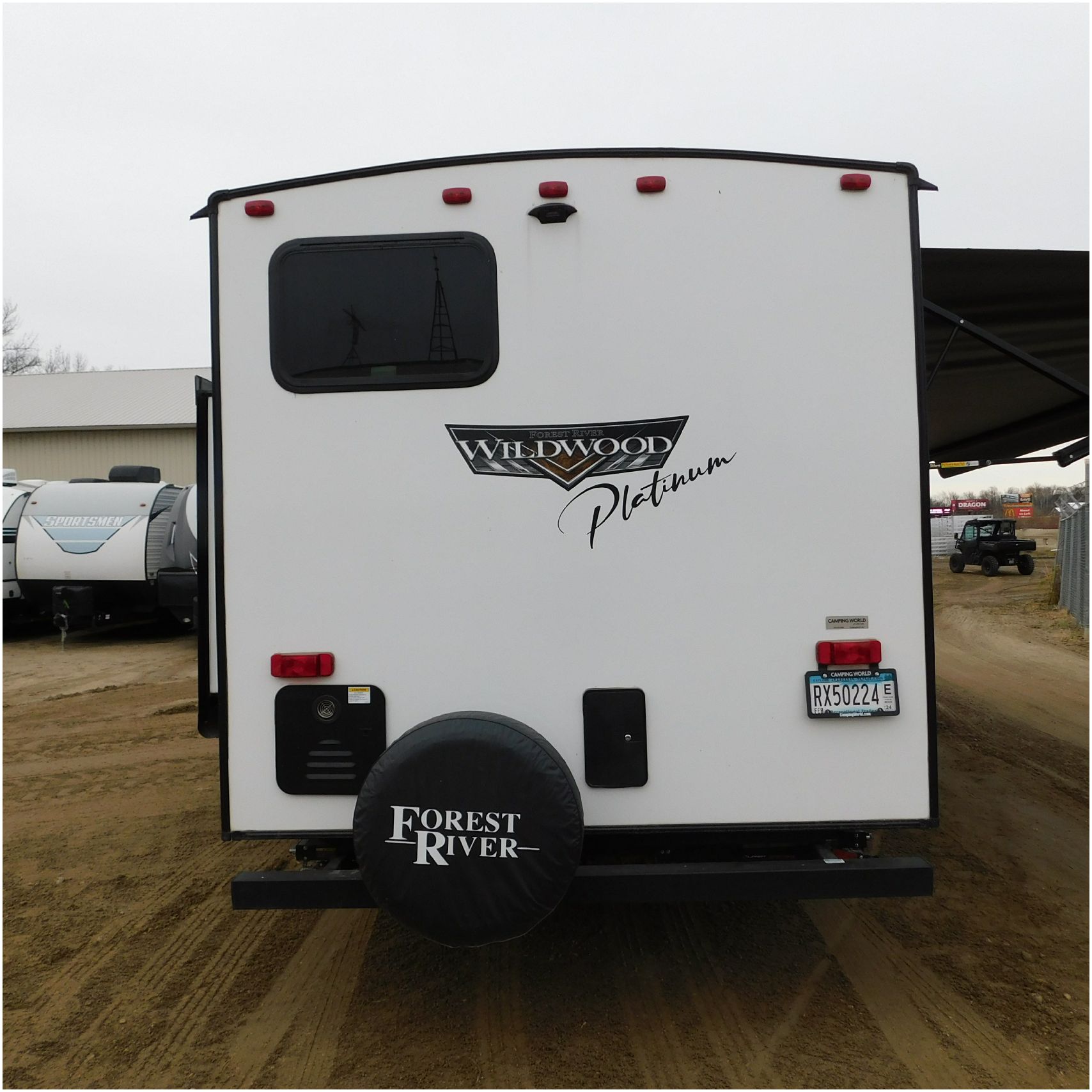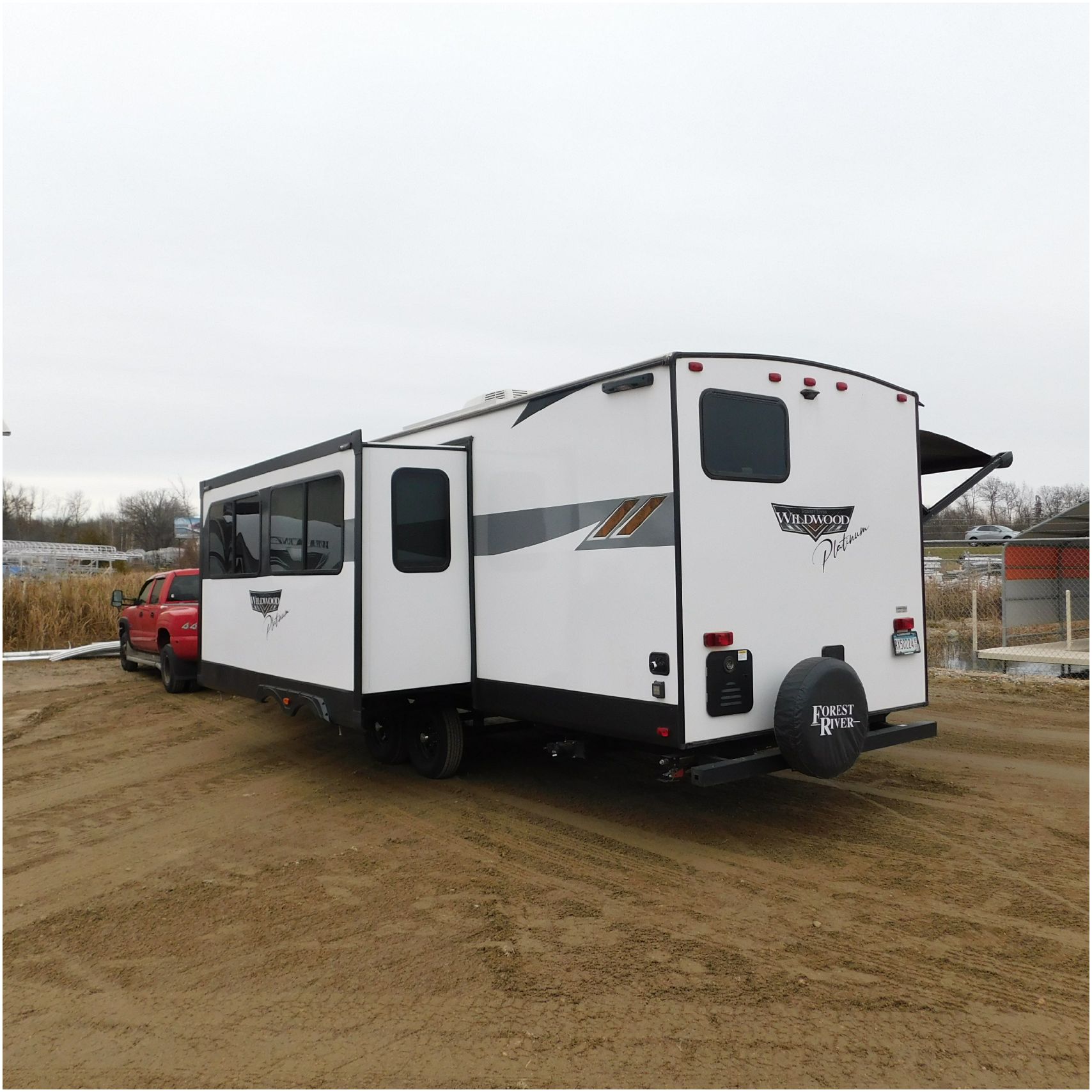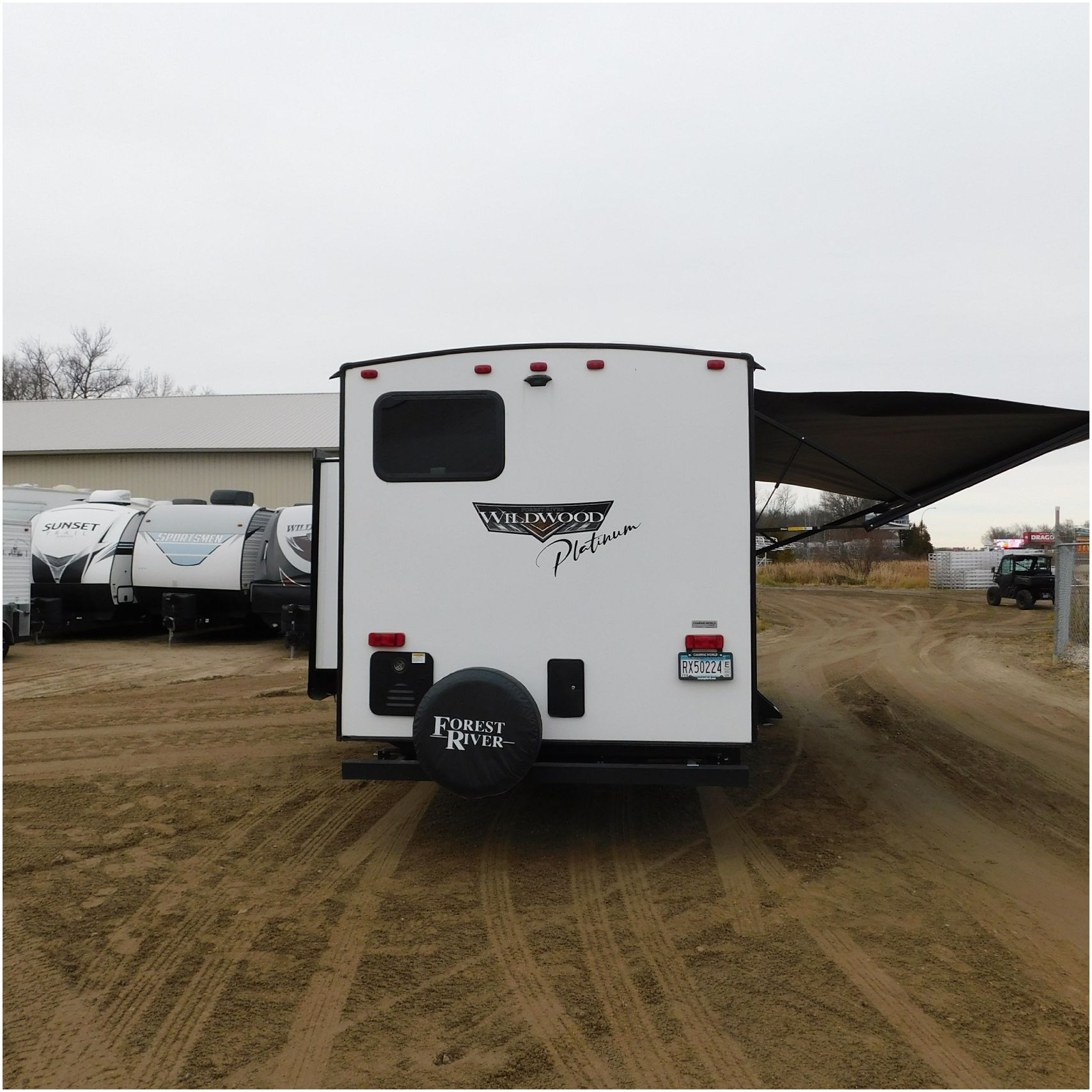 2014 Wildwood Platinum 26DBUD. This travel trailer comes to us with hail damage. The front has hail dents along the rounded part up top. The driver side is in nice shape and the slide out works as it should. The rear looks as it should. The passenger side has a couple small light hail dents. The awing extends and retracts as it should. The roof appears as it should besides the skylights having some stress marks from the hail and the solar panel is damaged from the hail. The inside completely all around is in very nice shape and clean!