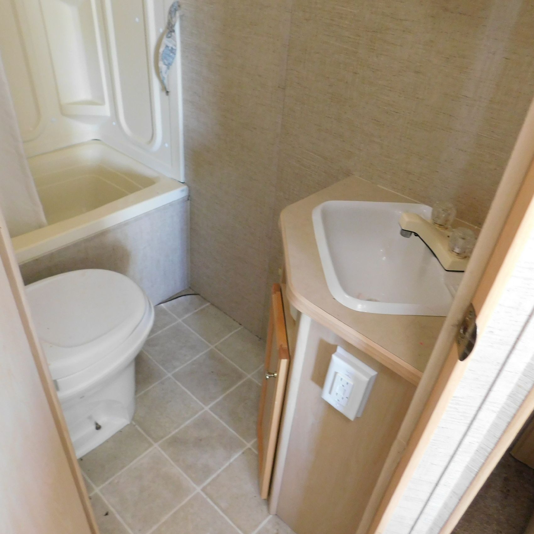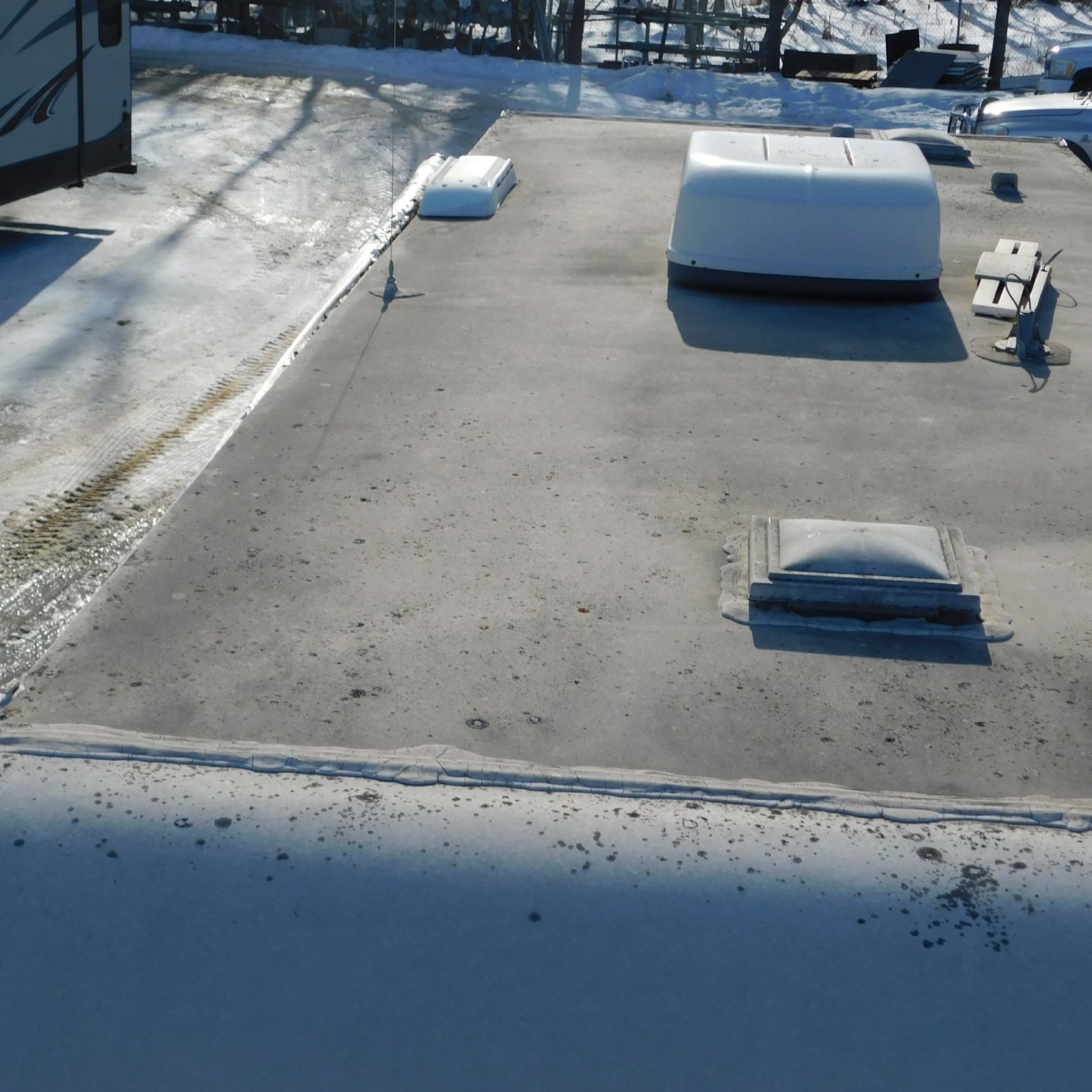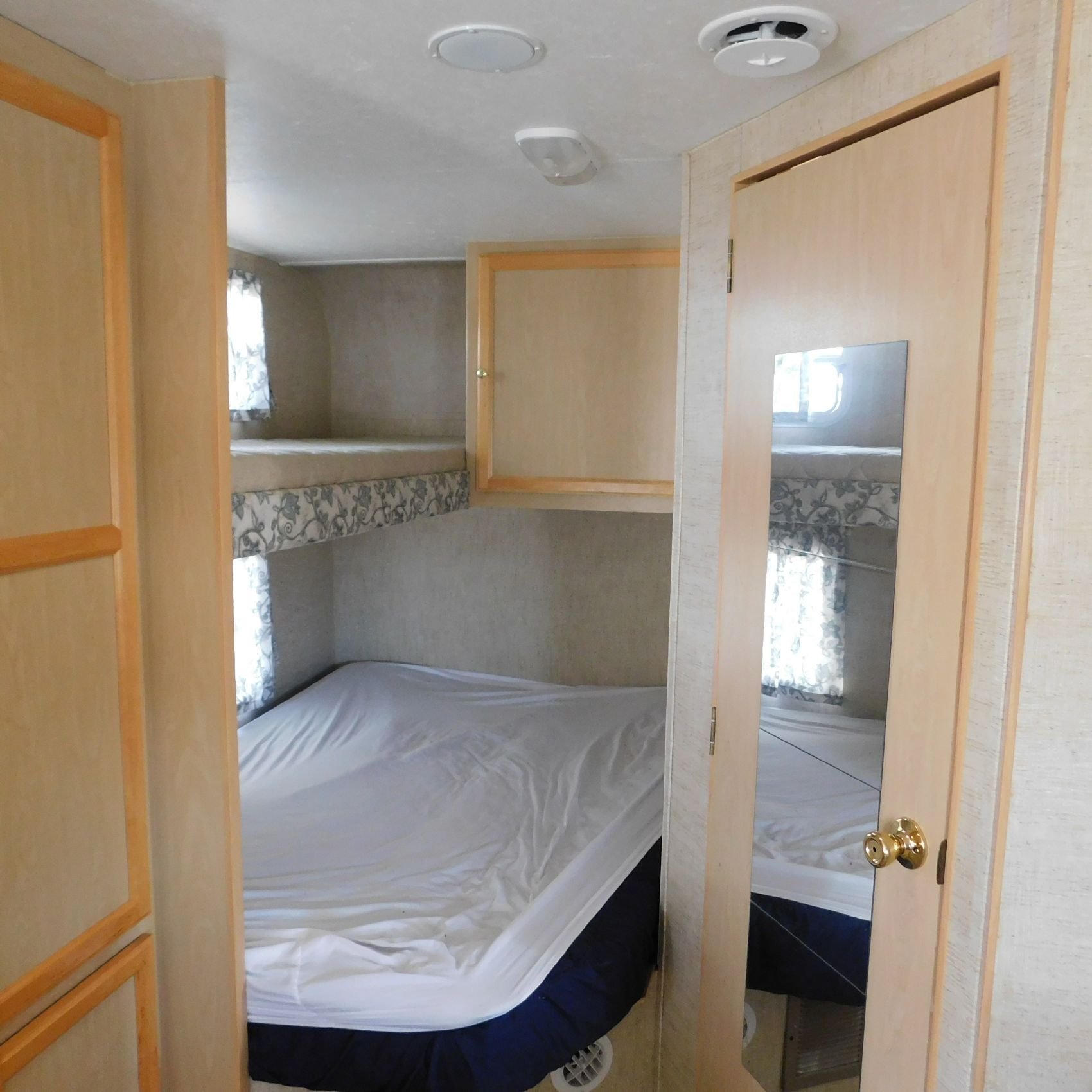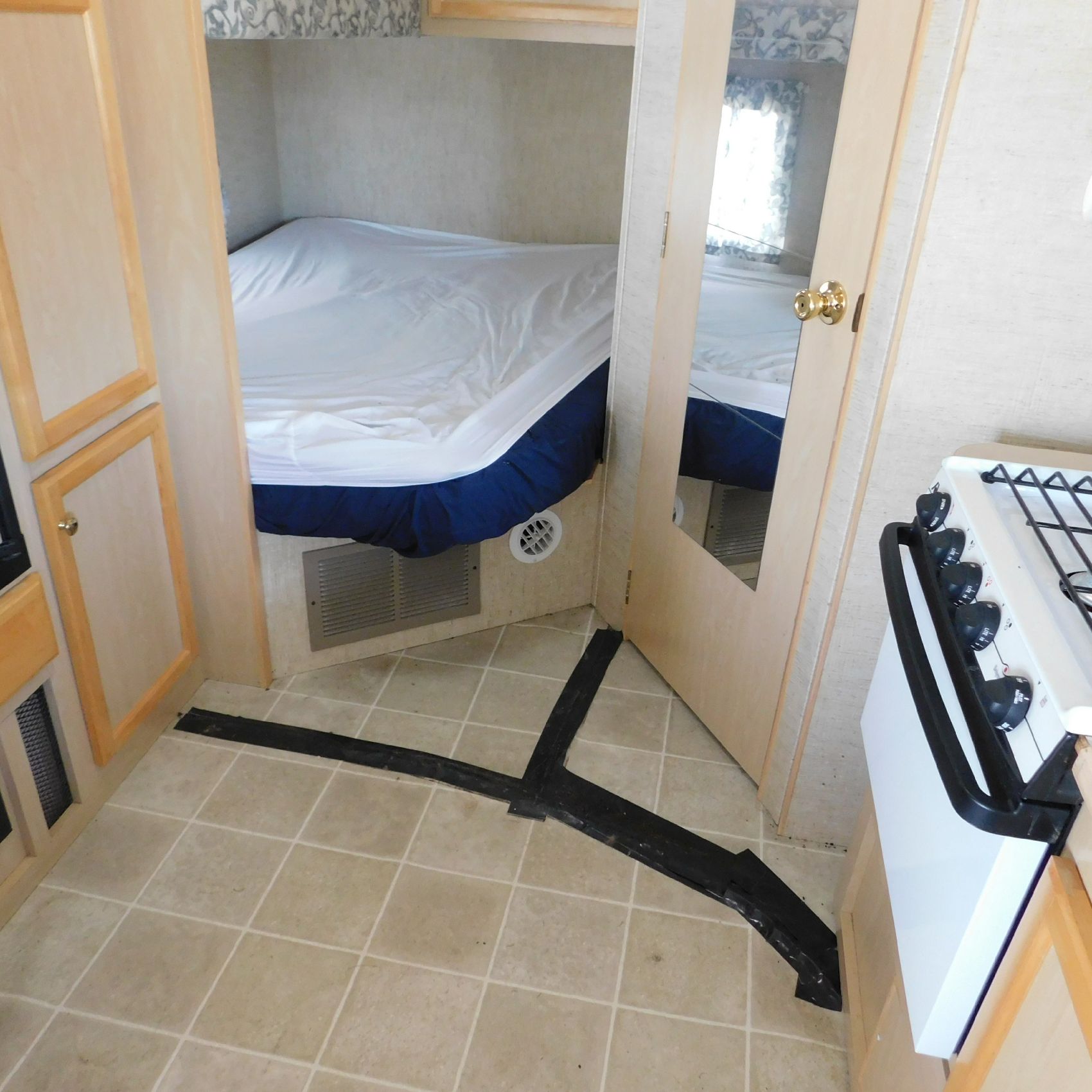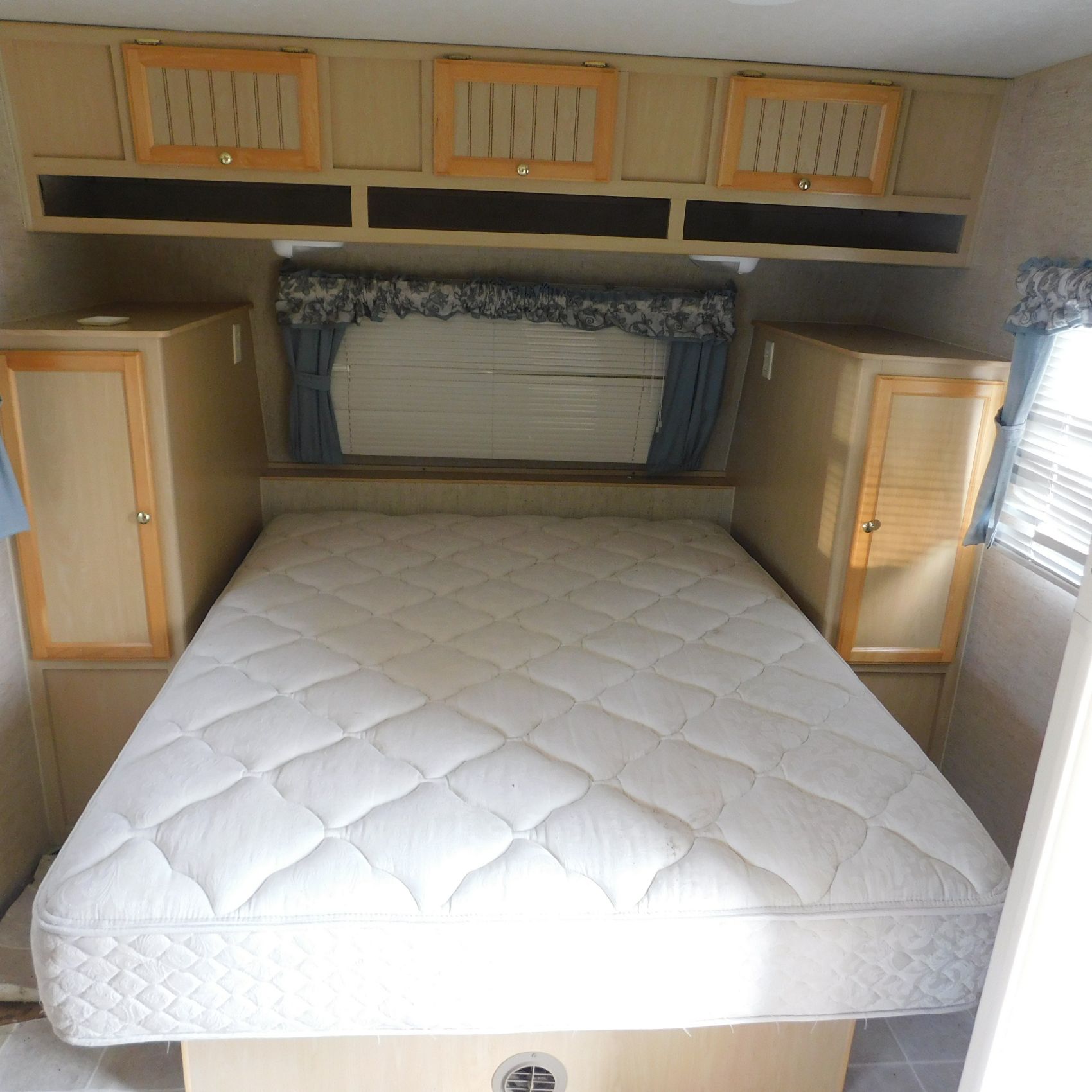 Coming to us is Stock # 1814 2005 Jayco Jay Feather LGT 29Y travel trailer camper that is 29FT in length a bumper style hitch and has one slide out in the living room area that comes to us with. This camper came to us with water damage, and the outside appears weathered with faded paint all around and some of the decals are either cracking/ peeling or in spots coming off. Starting at the front there is some mildew built up around the roof marker lamps and the rest looks ok, on the drivers side you will notice the wheels have some surface rust, the rear of the camper the finish on the plastic bumper is peeling off, the left side of the bumper is hanging a little loose and unfastened on one part. On the passenger side the awning appears to be not too good of shape, and we did not deploy it for pictures for that reason. The roof appears to be in ok shape from what we could see. On the inside of the camper the linoleum flooring is taped up in areas and looks water damaged, as it is cracked and bowing in some areas and there are noticeable water stains, the main floor seems sturdy but could have water damage also that we cannot see because it is covered. This camper is being sold AS-IS and is ready for the next buyer to fix it up and enjoy. Good luck bidding on this item.