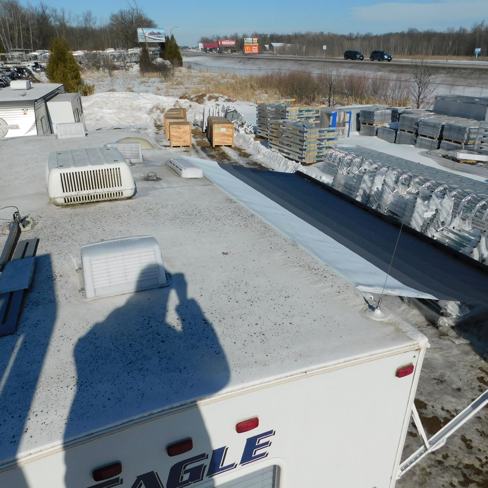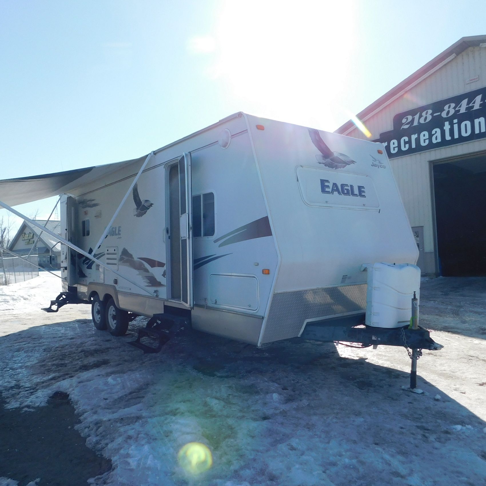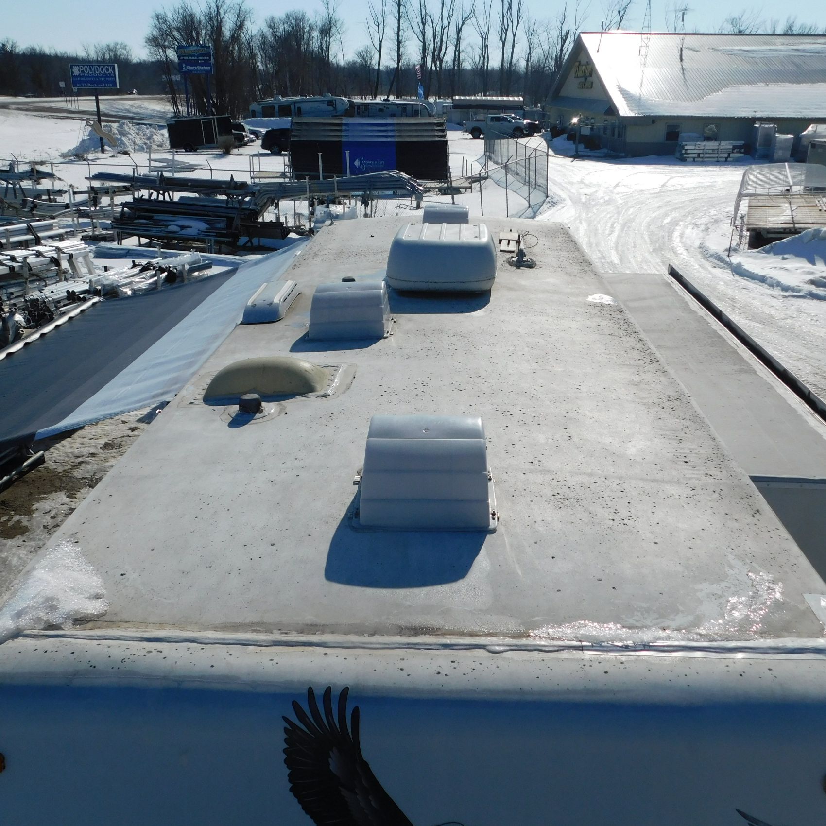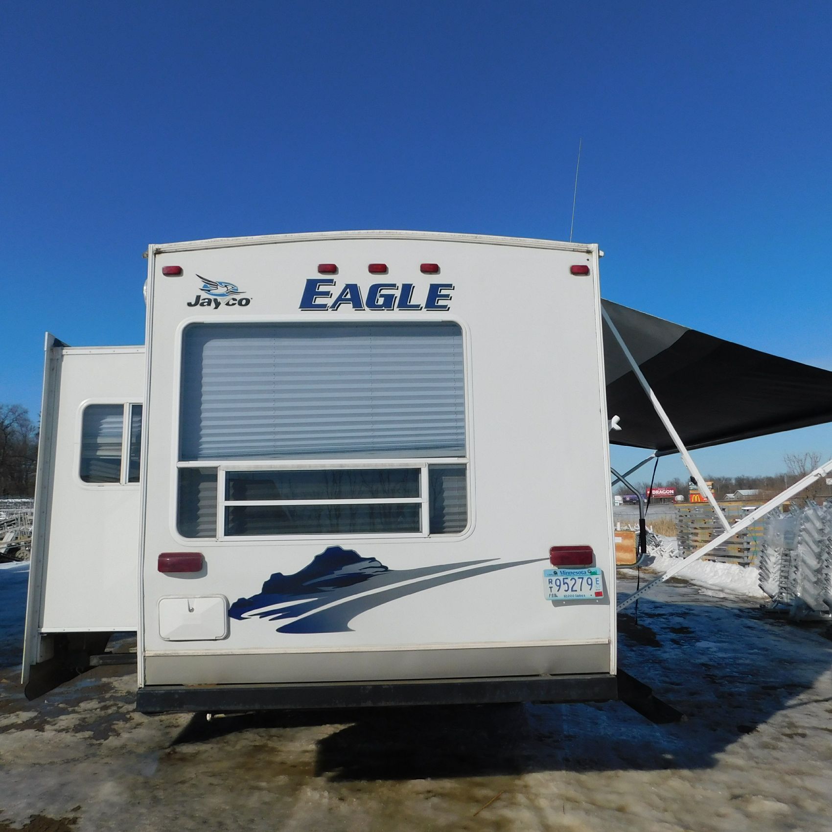 Coming to us is Stock #1831, a 2006 Jayco 278FBS Eagle travel trailer with a bumper‑style hitch. Based on the model number, it measures 28 feet in length, and the slide‑outs worked properly when tested. This camper was brought in due to roof damage—there is a hole in the roof, and water appears to have entered and spread through the roofing structure, causing soft spots and visible ripples in certain areas. However, the interior does not show noticeable signs of water damage.