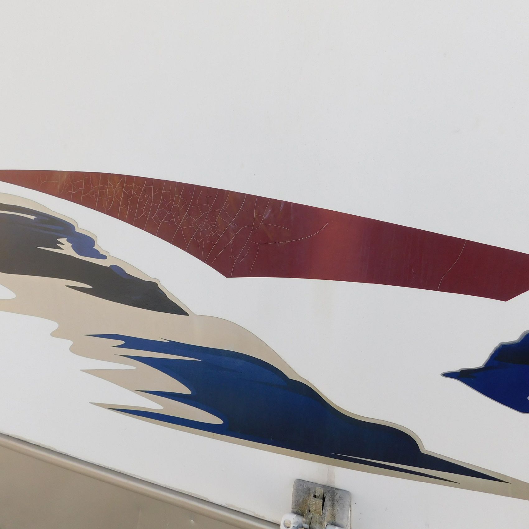 On the passenger side, there are scratches on the lower paneling near the middle, along with more scratching in a decal slightly forward near the door.
