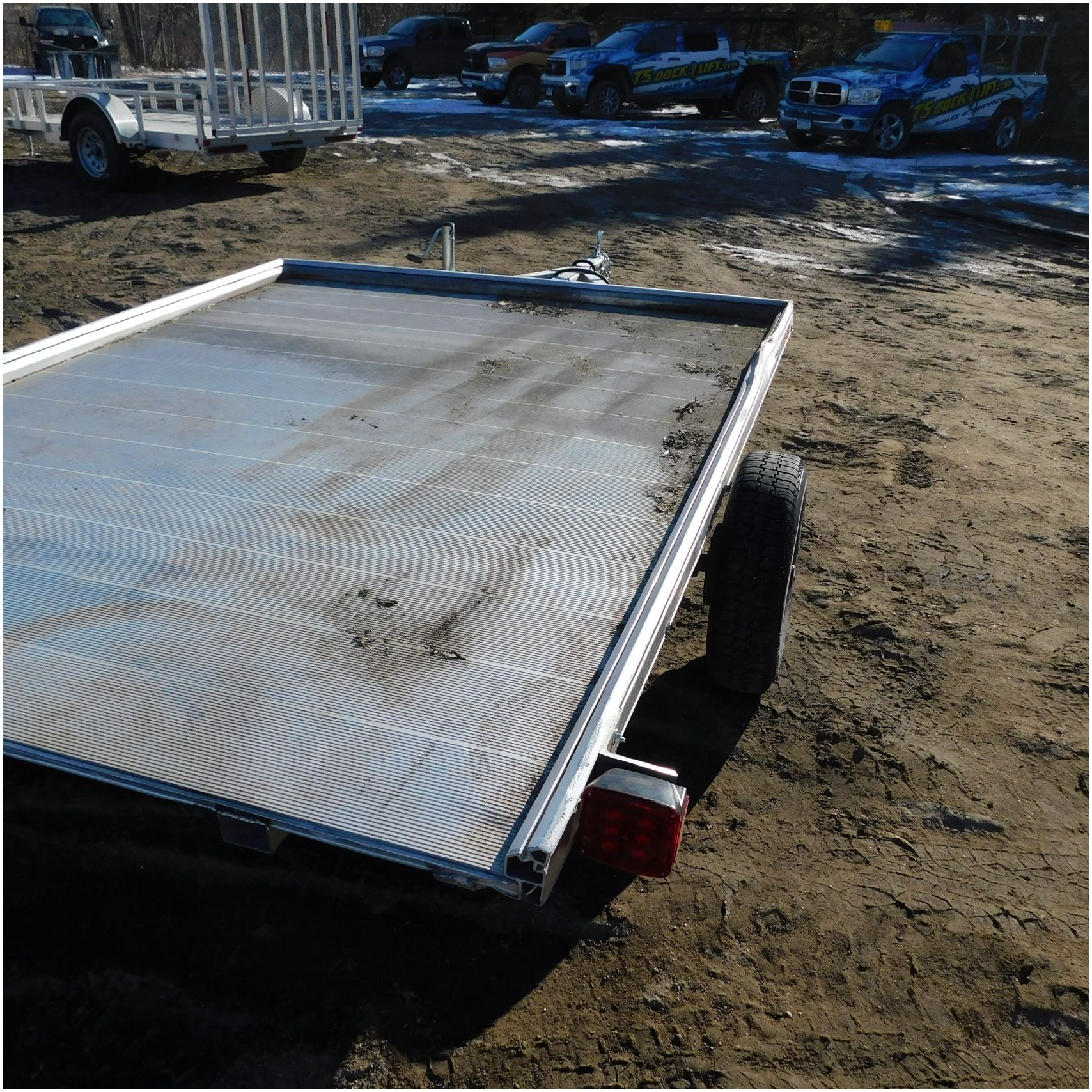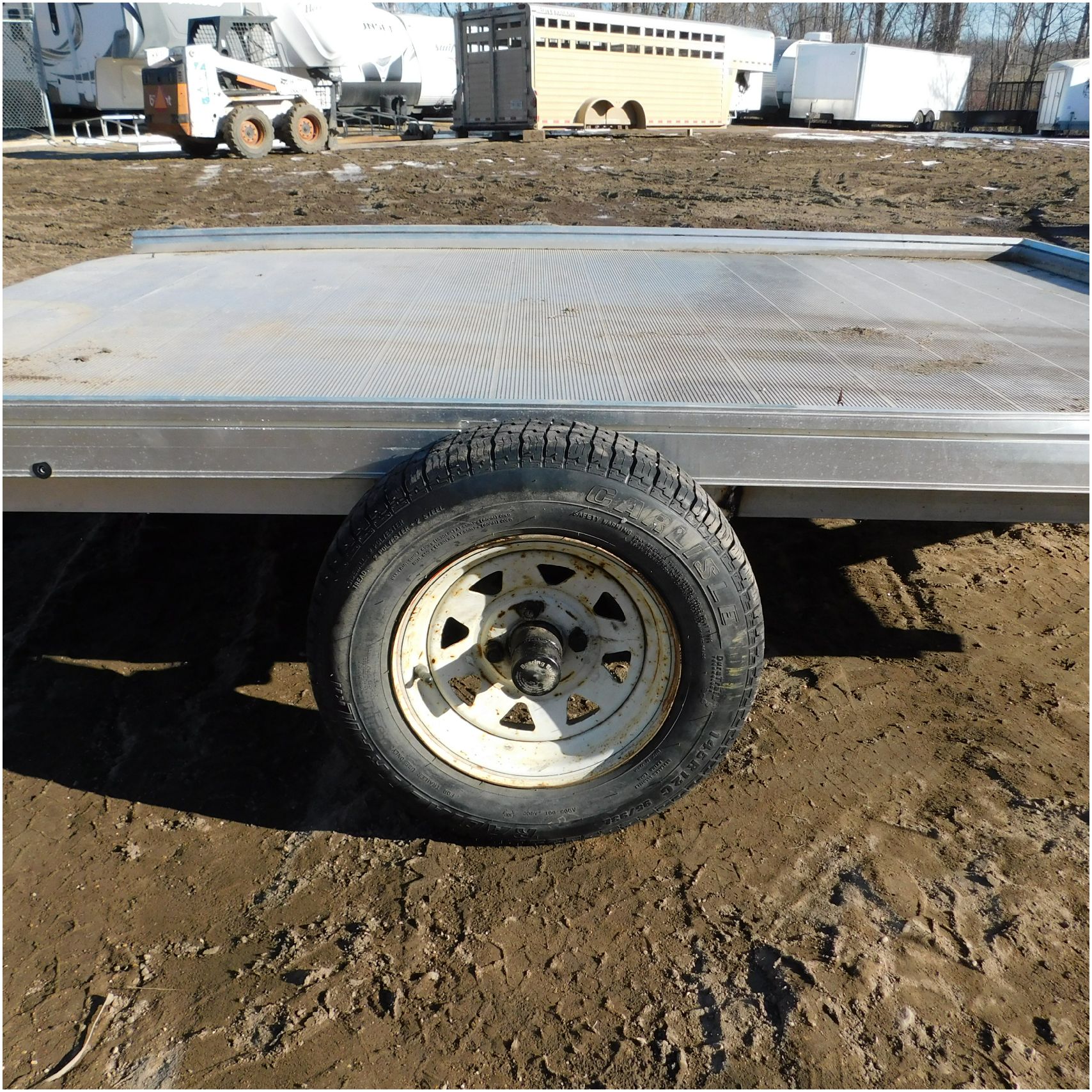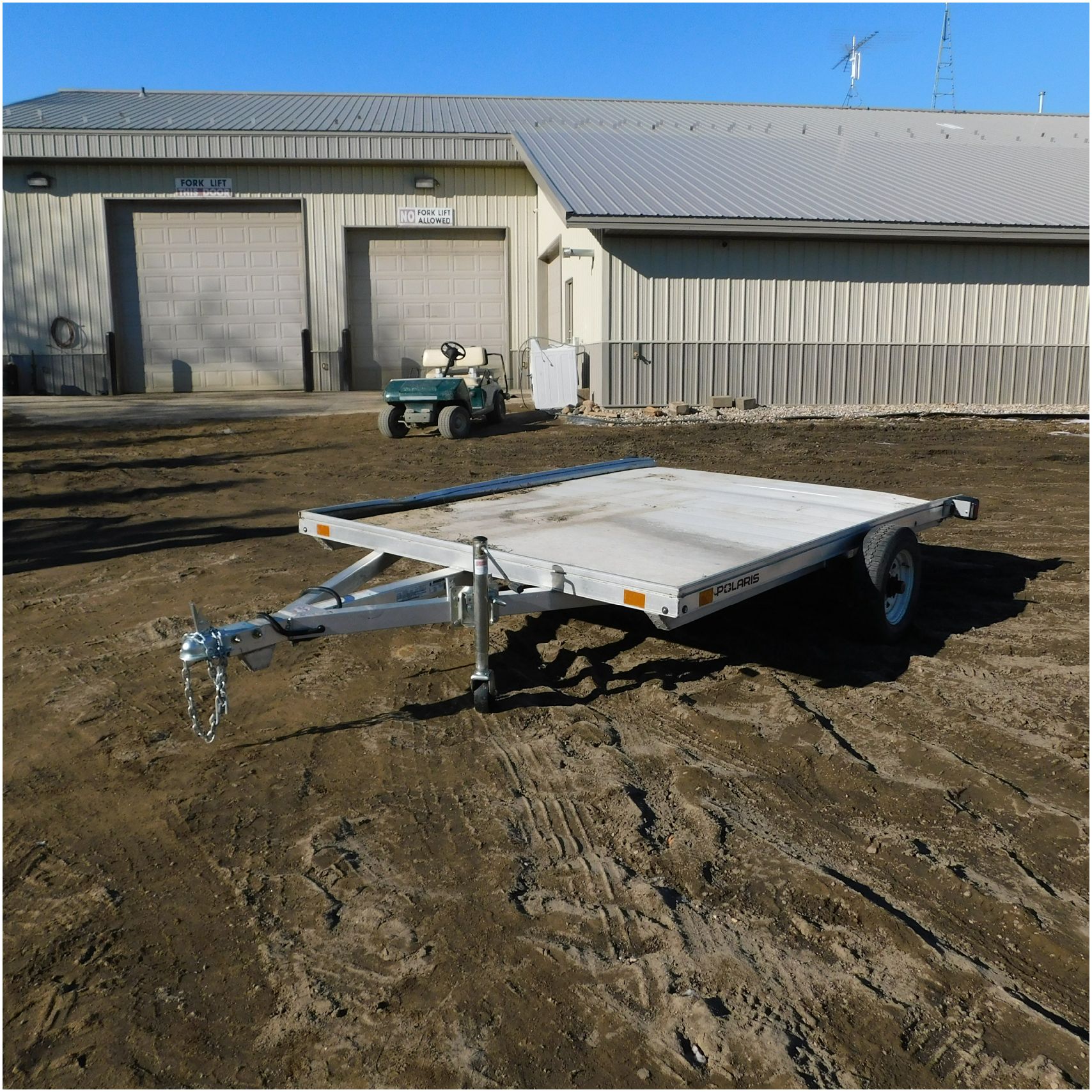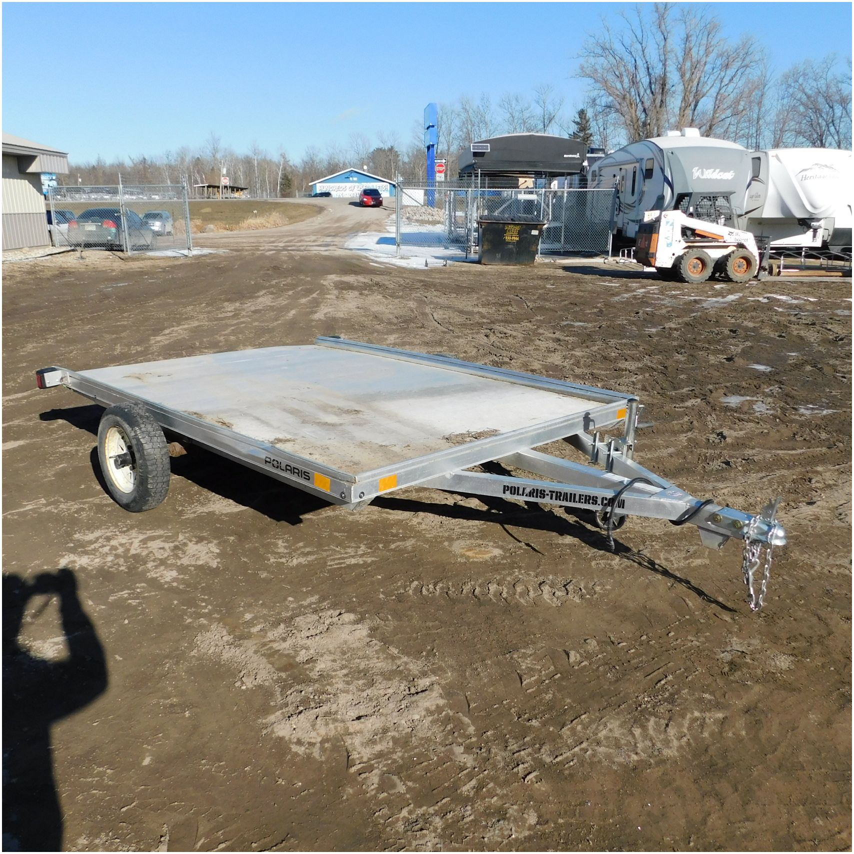 Up for auction is a 2022 Polaris Trailer. This utility trailer comes to us with some body damage. The trailer looks to have some fab work done or repairs. The title of the trailer states the size is 80×12’ but when we measure the trailer came out to 80×9’. The passenger side lip is bent up front and has a couple solid groove marks in the side. The rear driver side corner is bent down. The fenders are missing. The axle appears to be modified and welded. We are not sure how the trailer tows as we did not tow it and hauled it here. Good Luck Bidding on this Trailer!