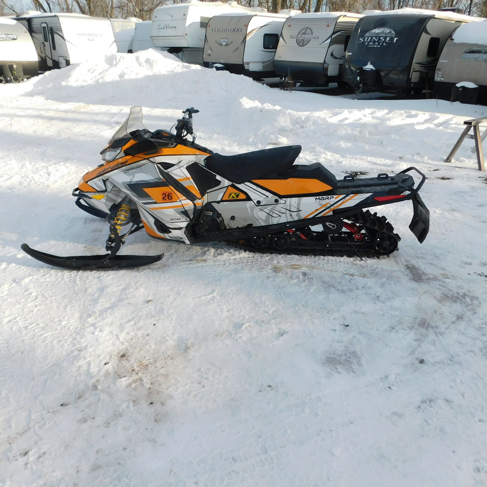 The front cubby door is missing; there could be hidden damage that we cannot see, but overall, this is a good looking sled that seems to be overall in fair condition and ready for the next buyer to fix up and ride. Good luck bidding on this item.