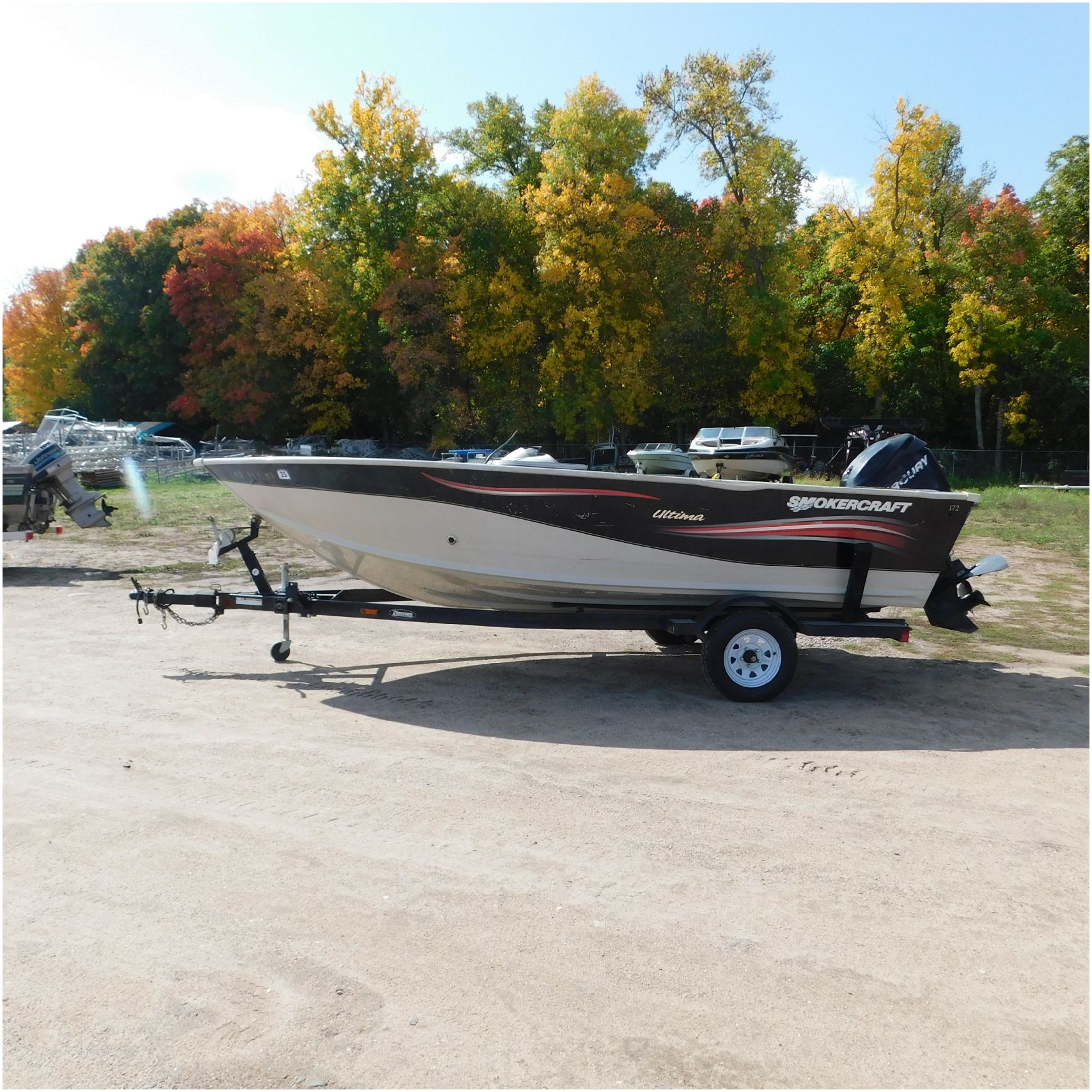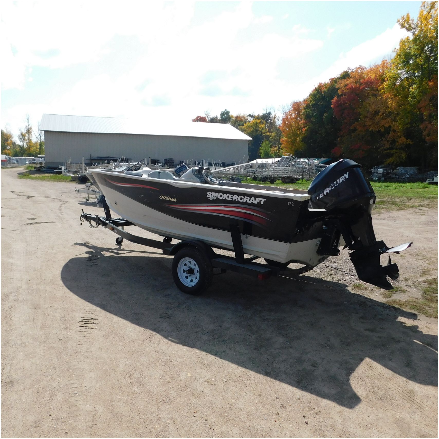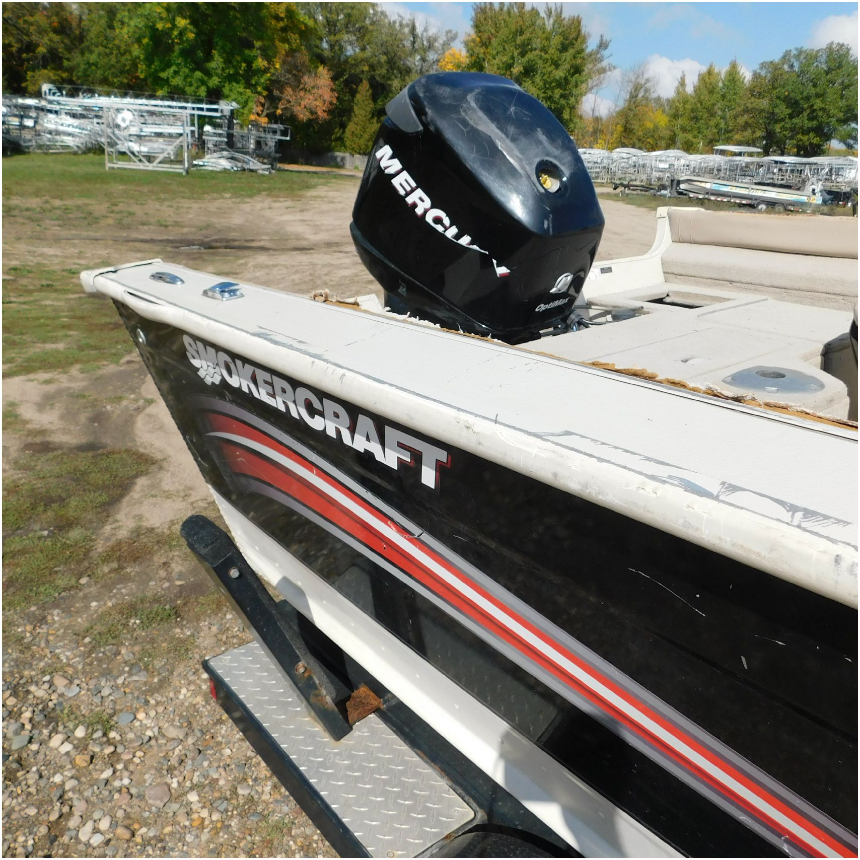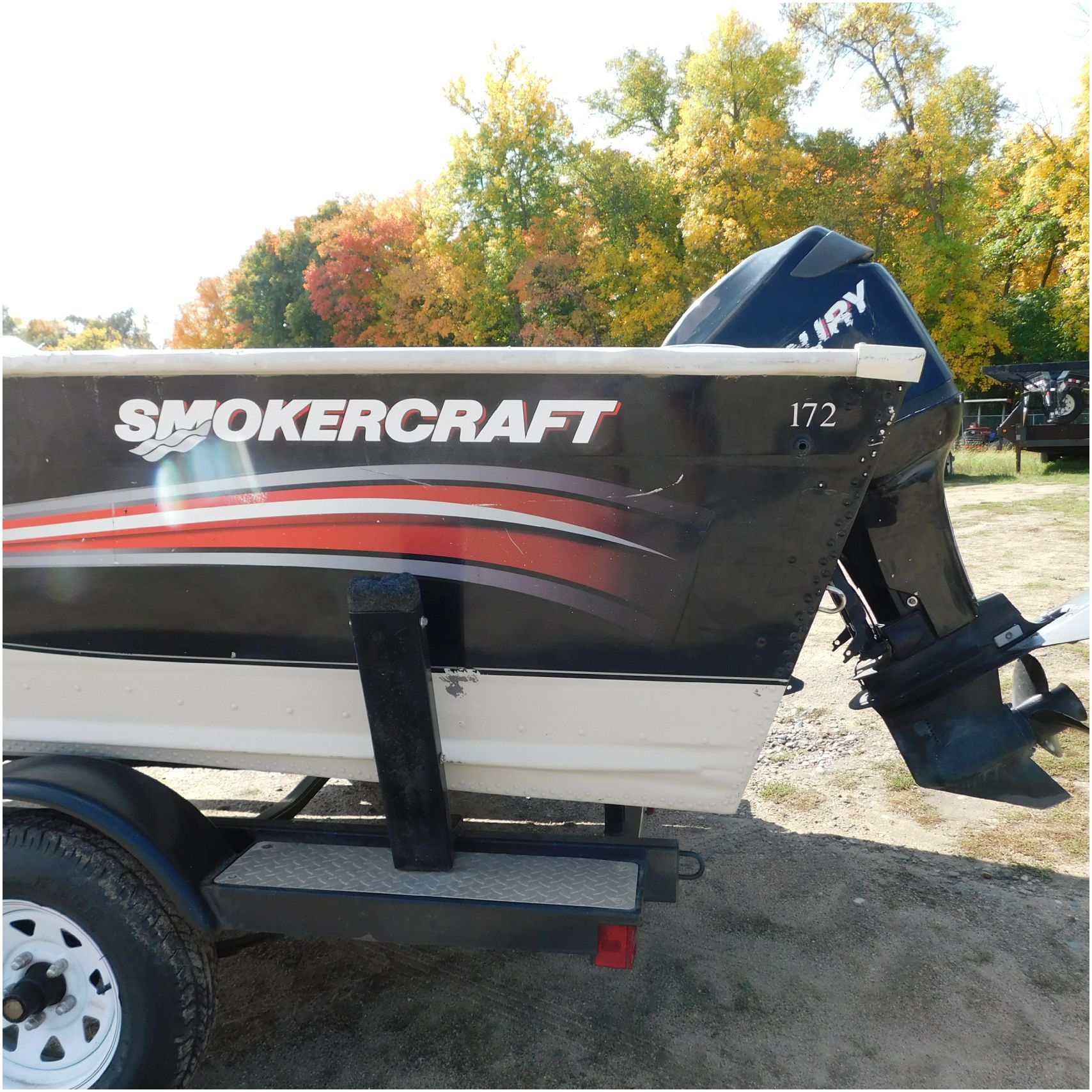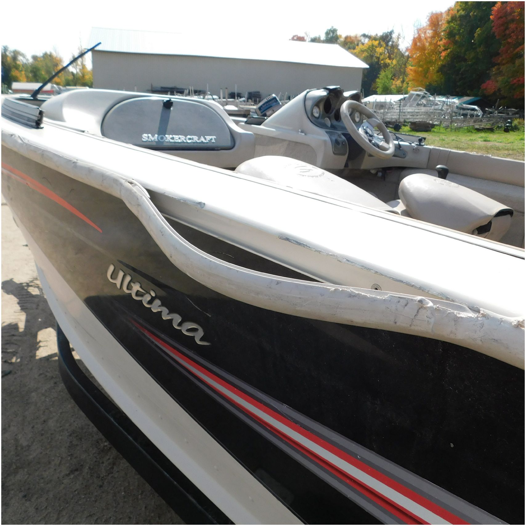 Up for auction is a 2006 Smokercraft Ultima 172. This 17’ fishing boat comes to us from being flipped over. The boat is equipped with a 2005 Mercury 115ELPTO. Our mechanic was able to start and run the motor/engine in our shop, using our remote “test” tank and our shop ignition wire harness. Keep in mind this is a salvage unit and will need further mechanical maintenance performed on the motor/engine prior to use. The hood and lower unit are really scuffed up. The boat is sitting on a zieman trailer but we are unsure the size and info as the tags are all worn off. The single axle trailer is pretty rusty but in decent shape. The bow of the boat is scuffed up and dented on the port side. The port is scratched up and dented. The run rail is also peeling off. The stern is scuffed up. The starboard side is also scratched up. the hull appears to be in ok shape besides the normal beaching scuffs. The inside counsel is damaged and both the glass windows & frames are damaged. The inside throughout appears to be weathered. Good Luck Bidding on this Boat!