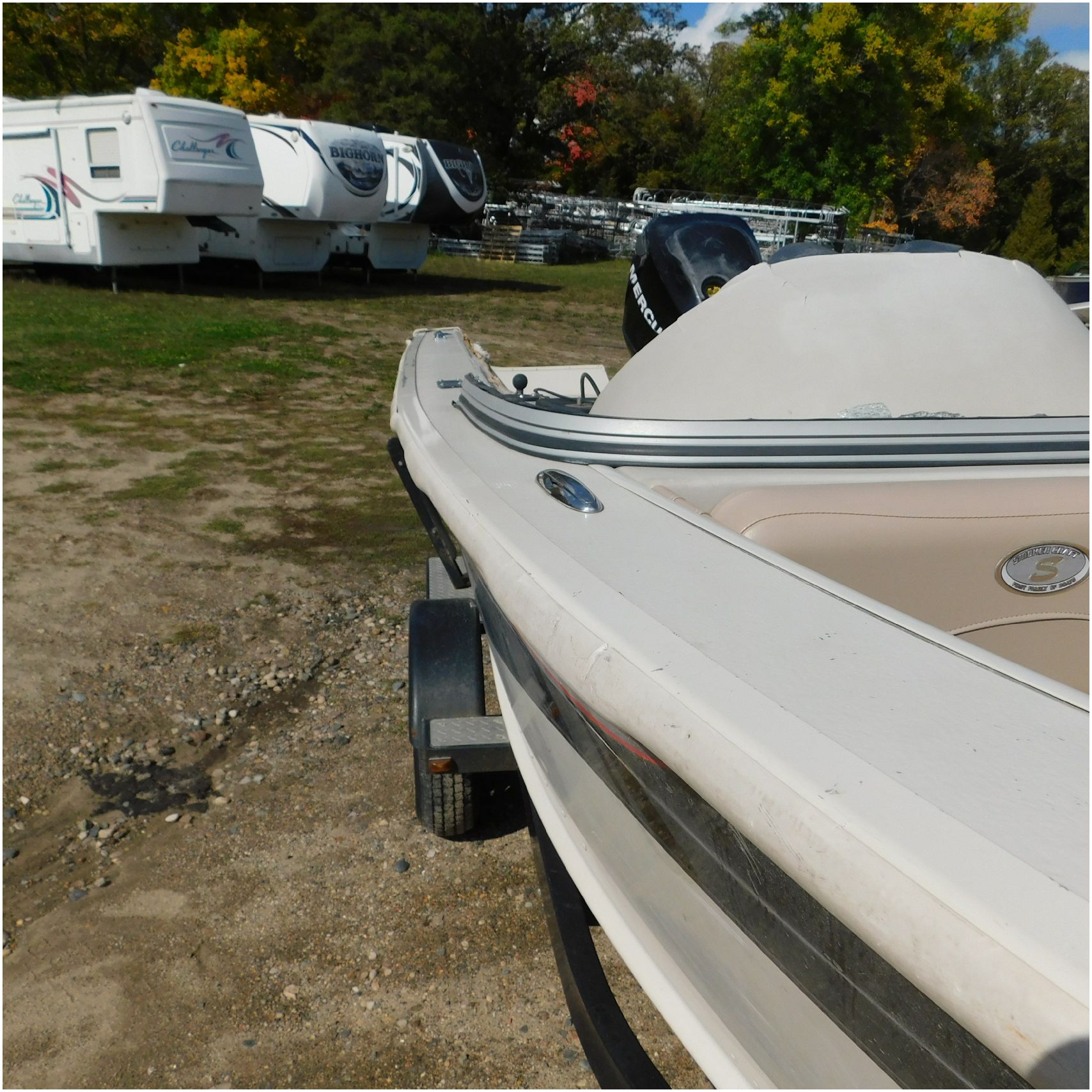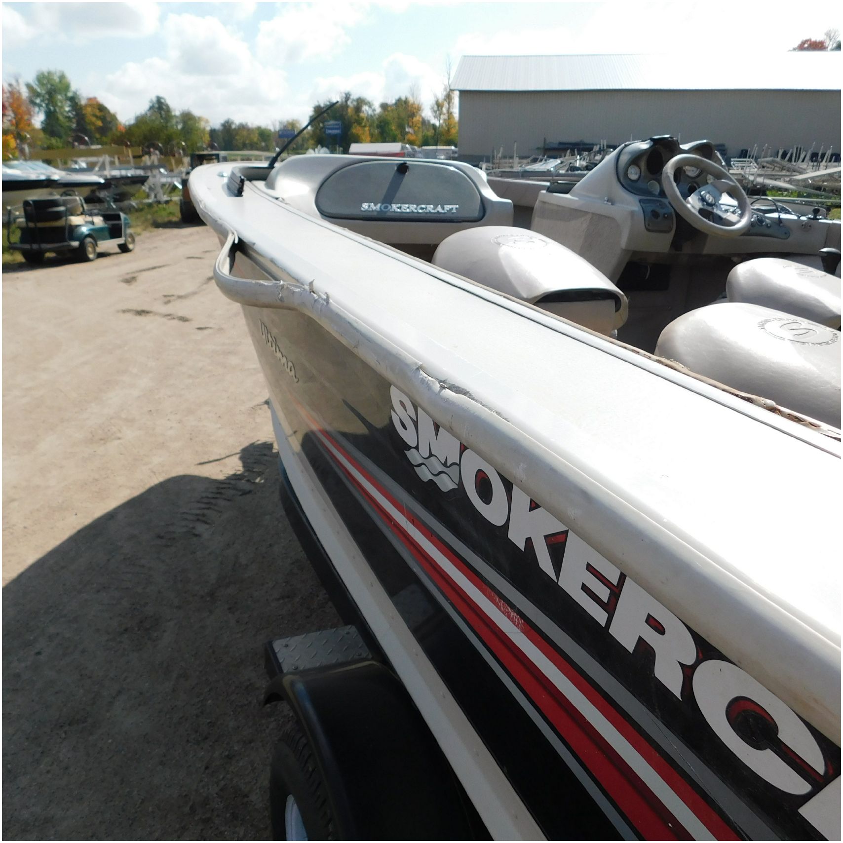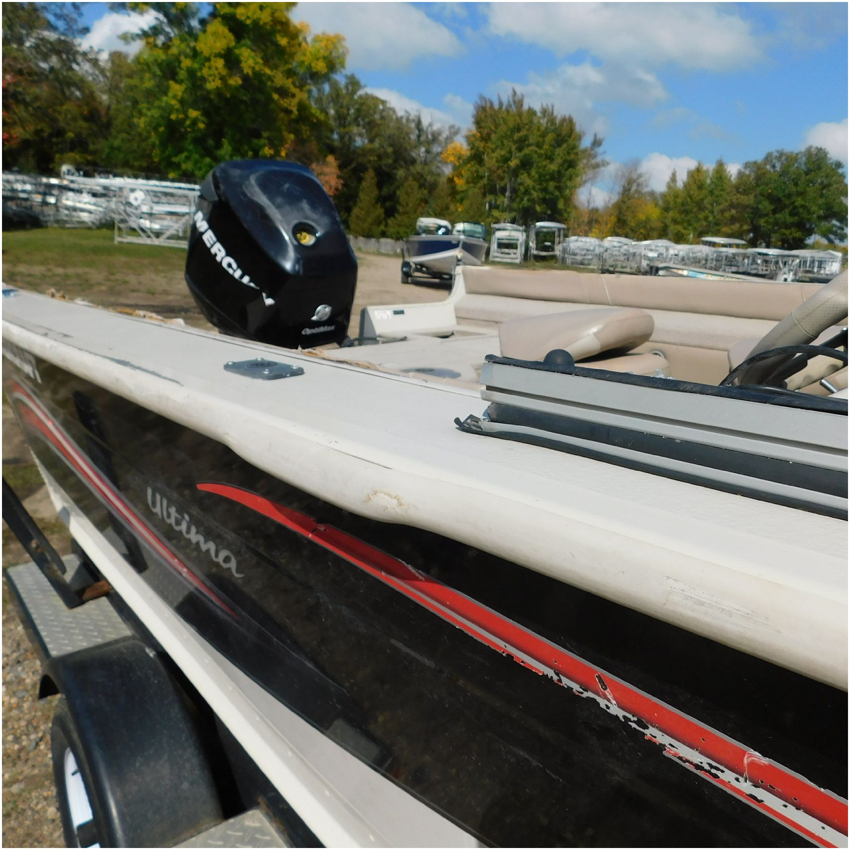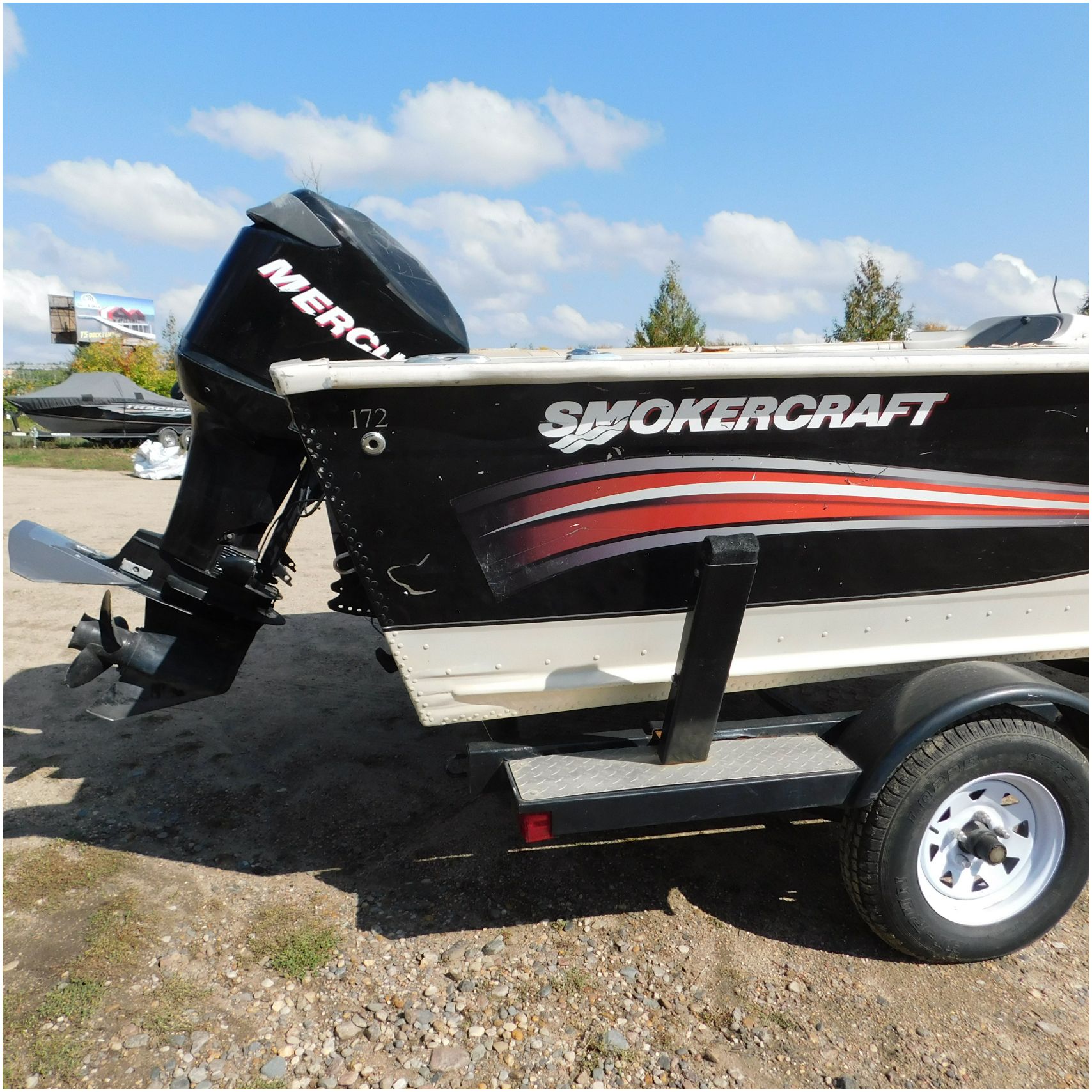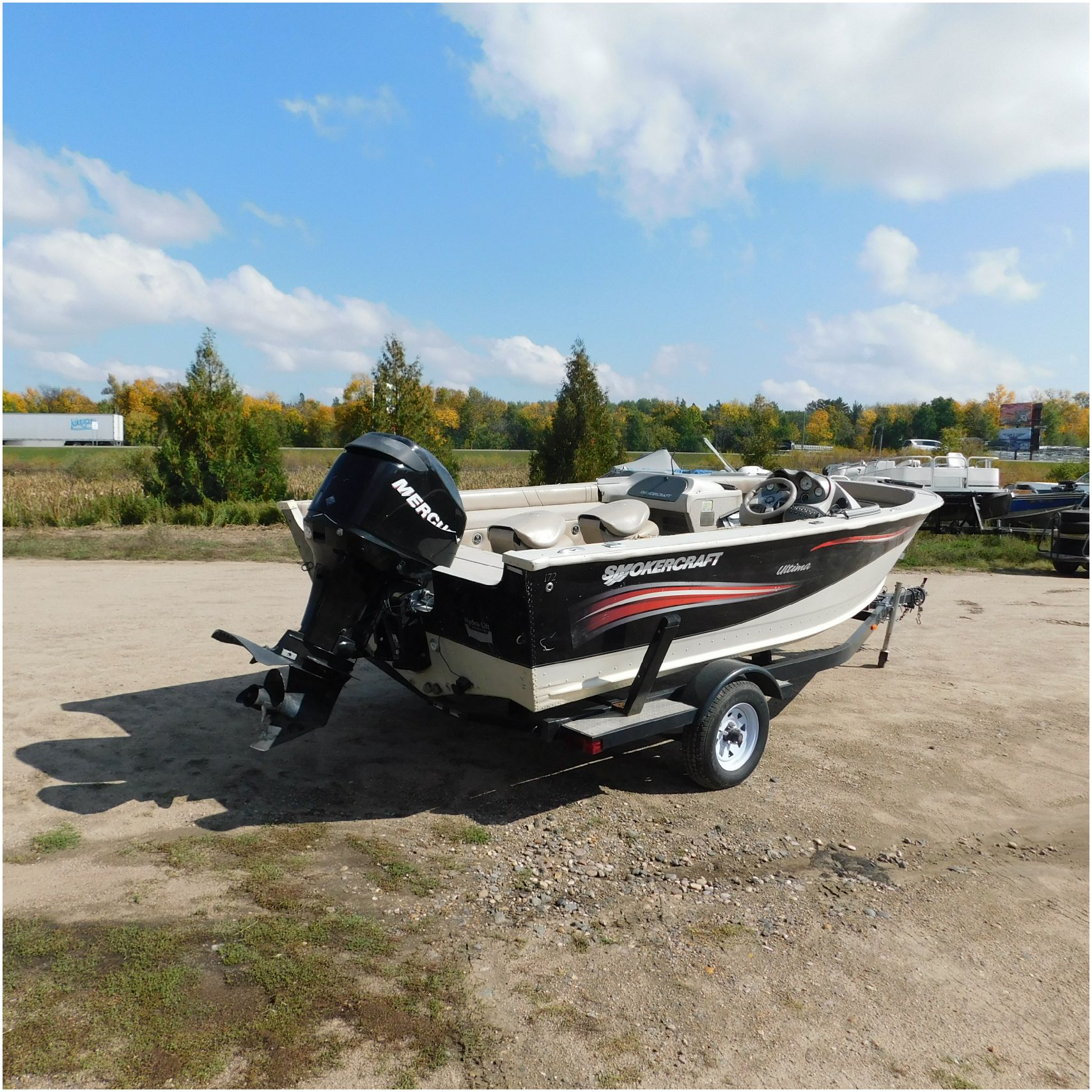 Up for auction is a 2006 Smokercraft Ultima 172. This 17’ fishing boat comes to us from being flipped over. The boat is equipped with a 2005 Mercury 115ELPTO. Our mechanic was able to start and run the motor/engine in our shop, using our remote “test” tank and our shop ignition wire harness. Keep in mind this is a salvage unit and will need further mechanical maintenance performed on the motor/engine prior to use. The hood and lower unit are really scuffed up. The boat is sitting on a zieman trailer but we are unsure the size and info as the tags are all worn off. The single axle trailer is pretty rusty but in decent shape. The bow of the boat is scuffed up and dented on the port side. The port is scratched up and dented. The run rail is also peeling off. The stern is scuffed up. The starboard side is also scratched up. the hull appears to be in ok shape besides the normal beaching scuffs. The inside counsel is damaged and both the glass windows & frames are damaged. The inside throughout appears to be weathered. Good Luck Bidding on this Boat!