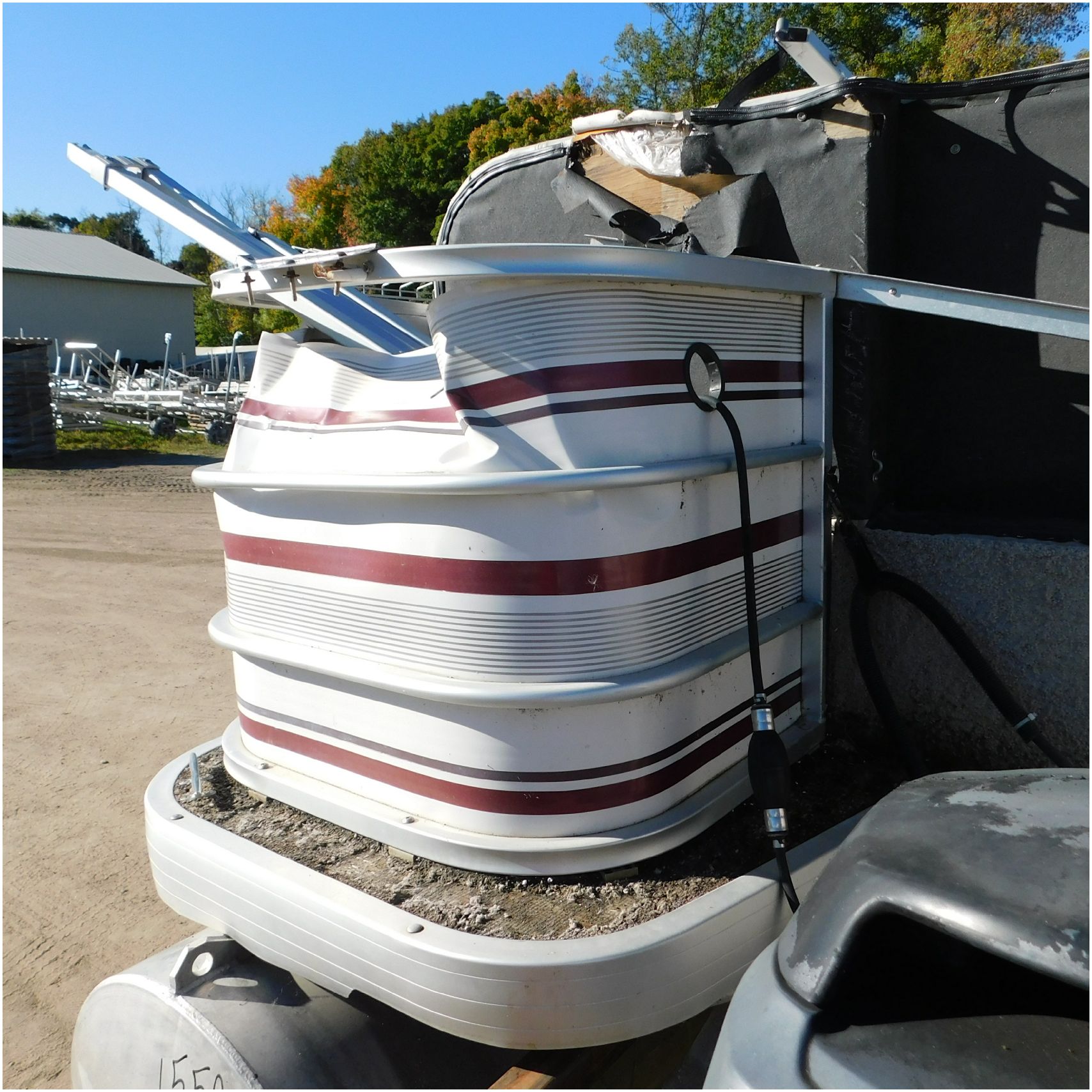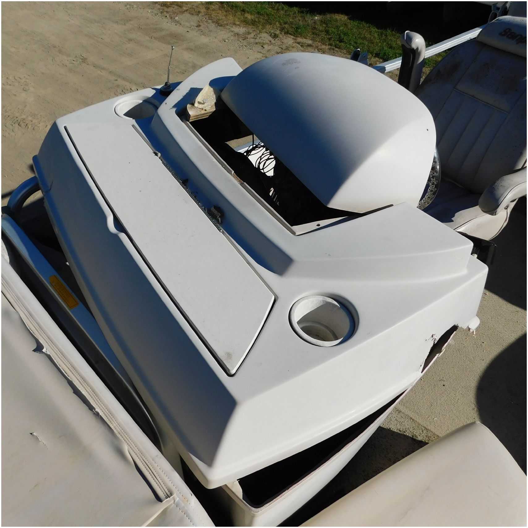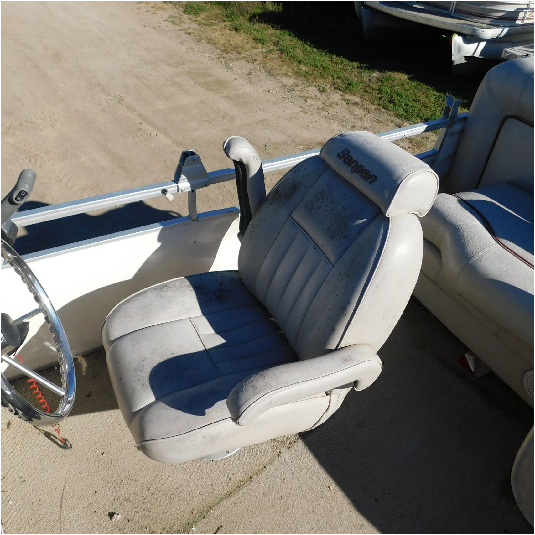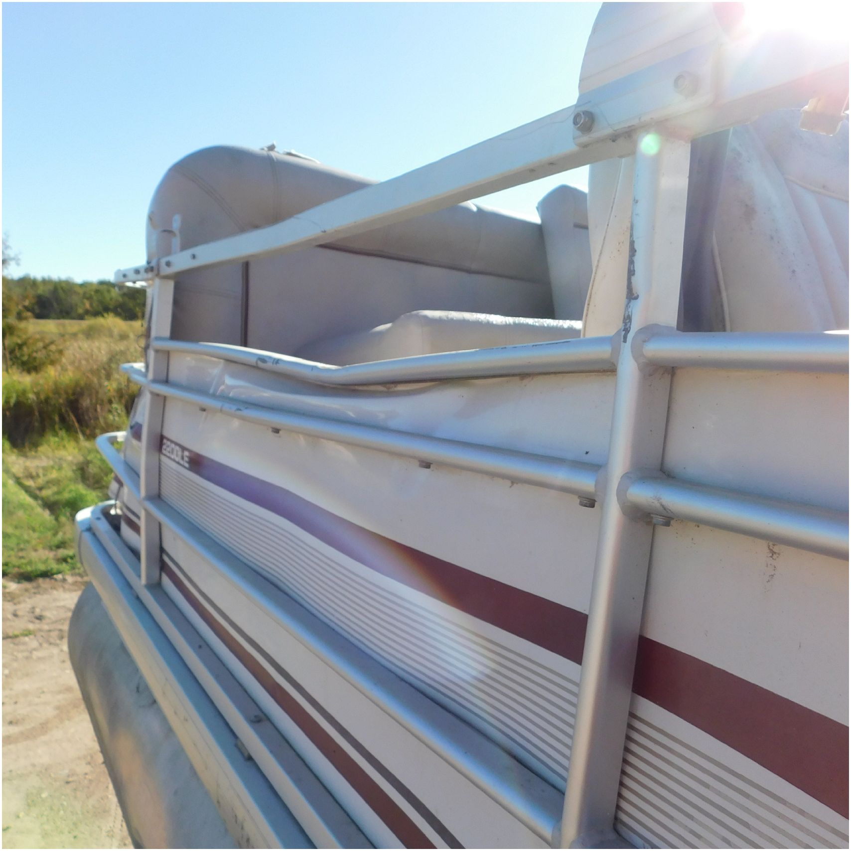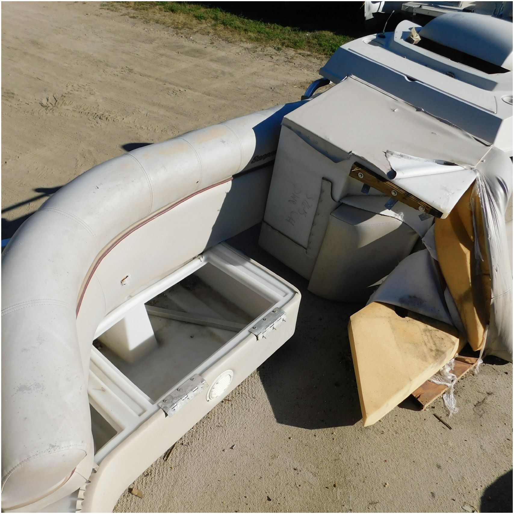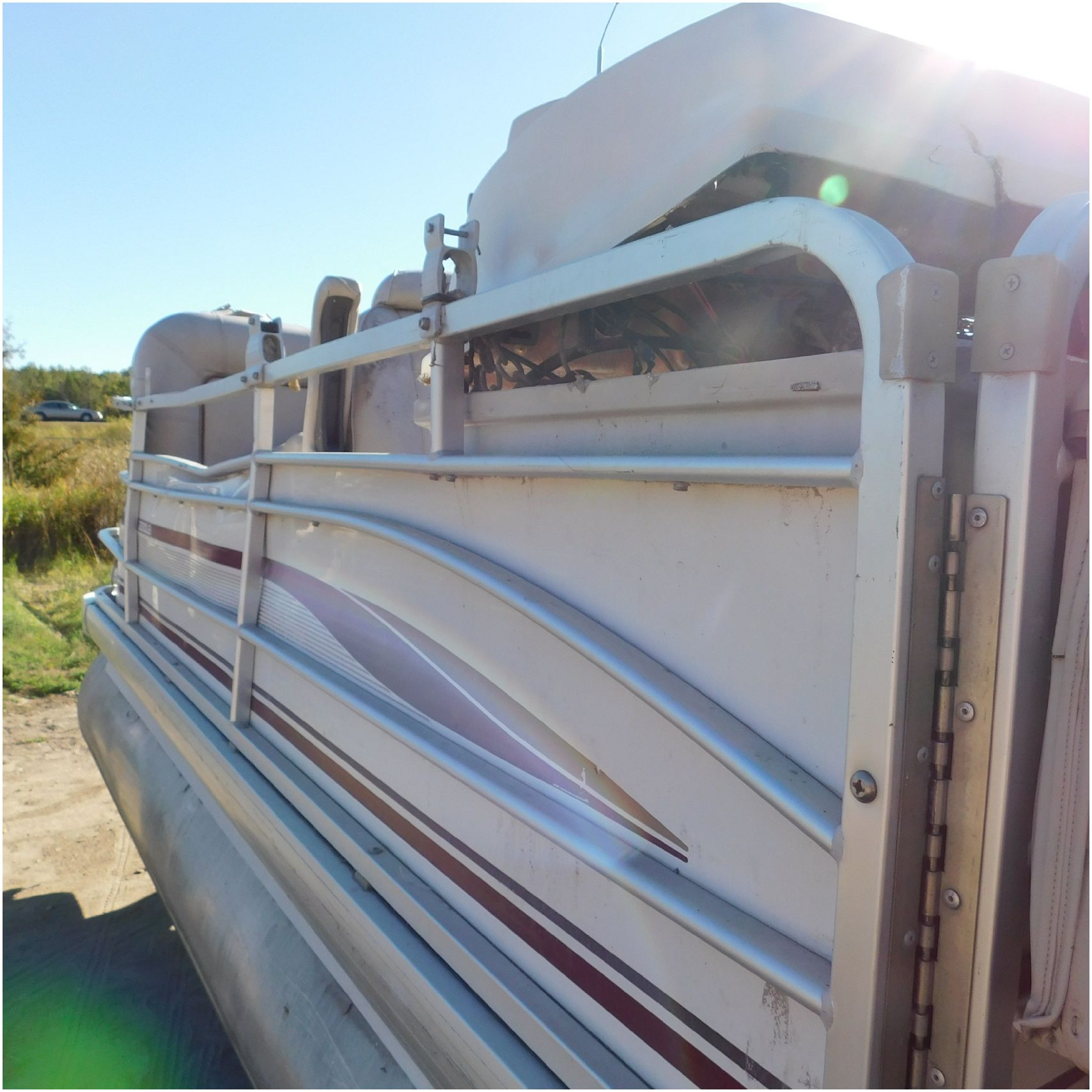 Up for auction is a 2000 San Pan 2200LE. This 22’ pontoon comes to us from being flipped and submerged. We are unsure of the exact year of the motor but we think the pontoon is equipped with a 2000 Yamaha F40TLR matching the year of the boat. The motor was started and that was it. The motor will need further inspection before any sort of use. The motor itself is weathered and paint is peeling. The front door is broke off and the railing is bent up good. The port side railing is tweaked and the siding is dented towards the rear. The stern railing is bent and the siding is dented up pretty good. The starboard side is really dented and the rails are pretty bent up. The starboard side door is also broke out. The toons are scuffed up, weathered and lake stained. The inside is completely all messed up from the roll over. The seats all around are ripped, not secure and just placed. The steering counsel is out of whack and cracked. The carpet is weathered. TRAILER NOT INCLUDED! Good Luck Bidding on this pontoon!