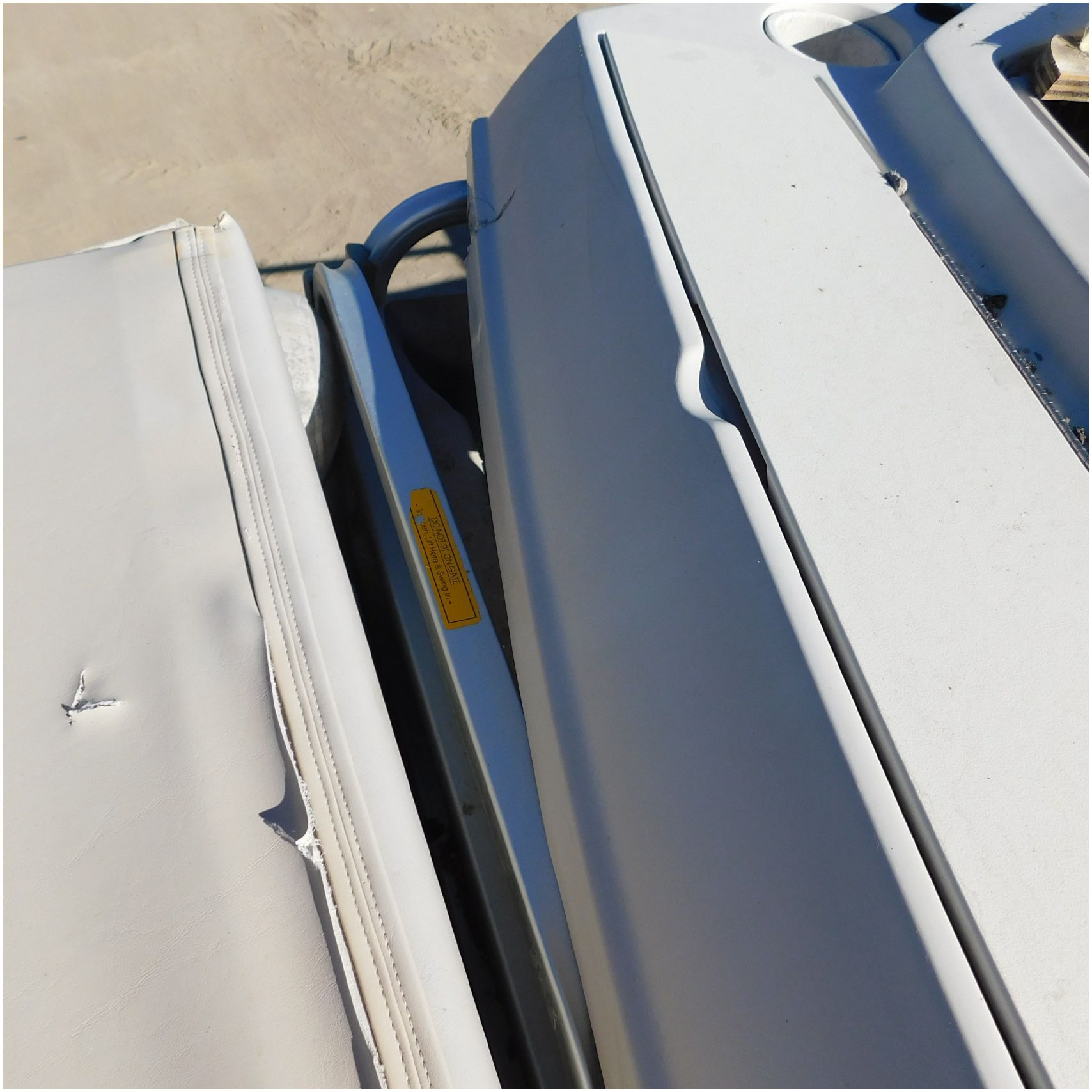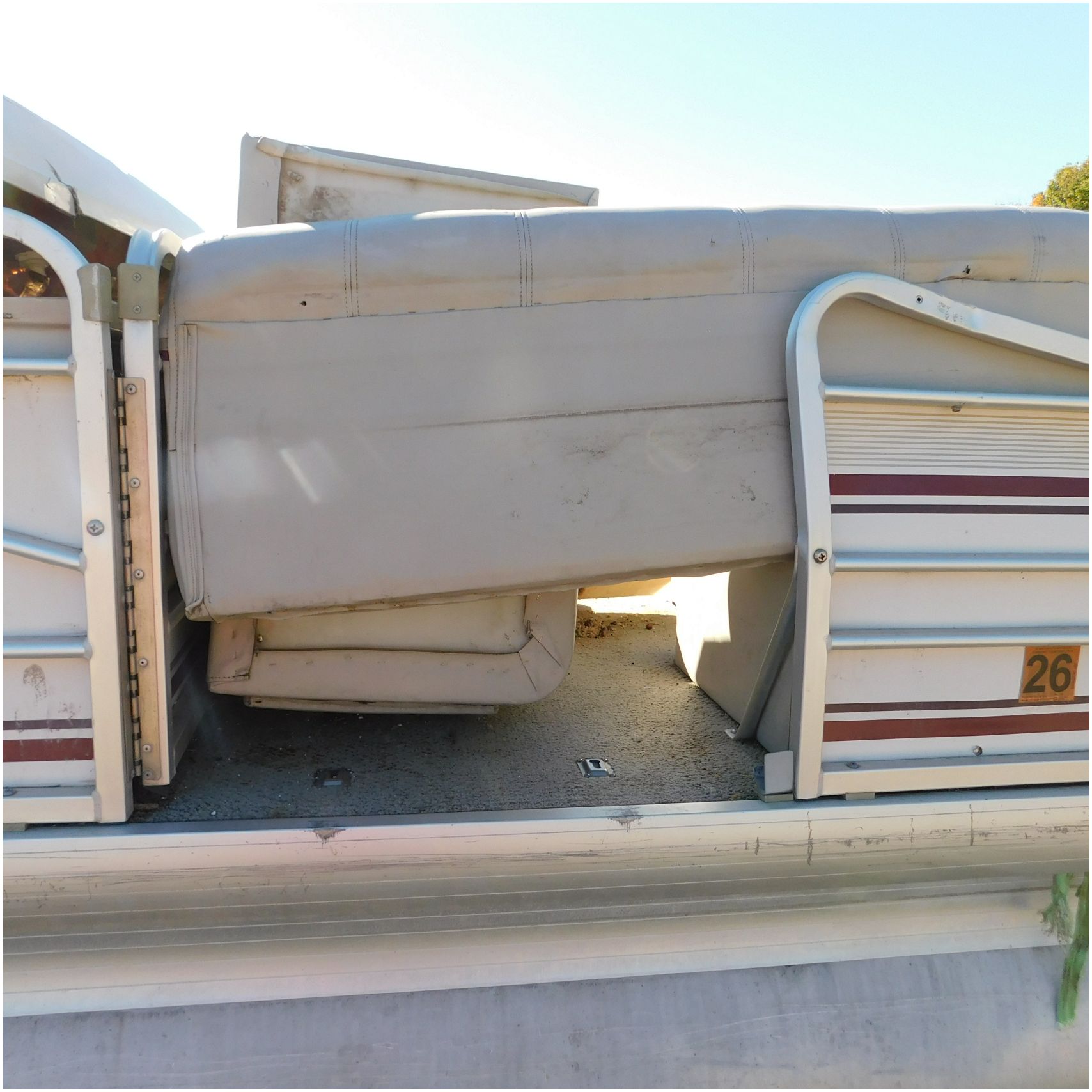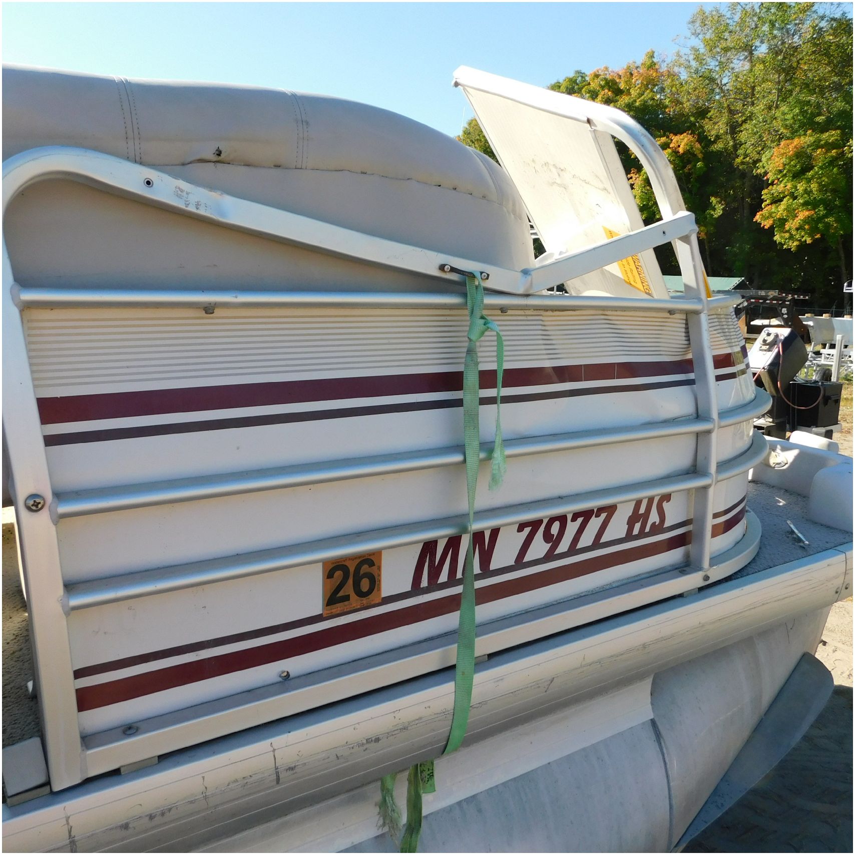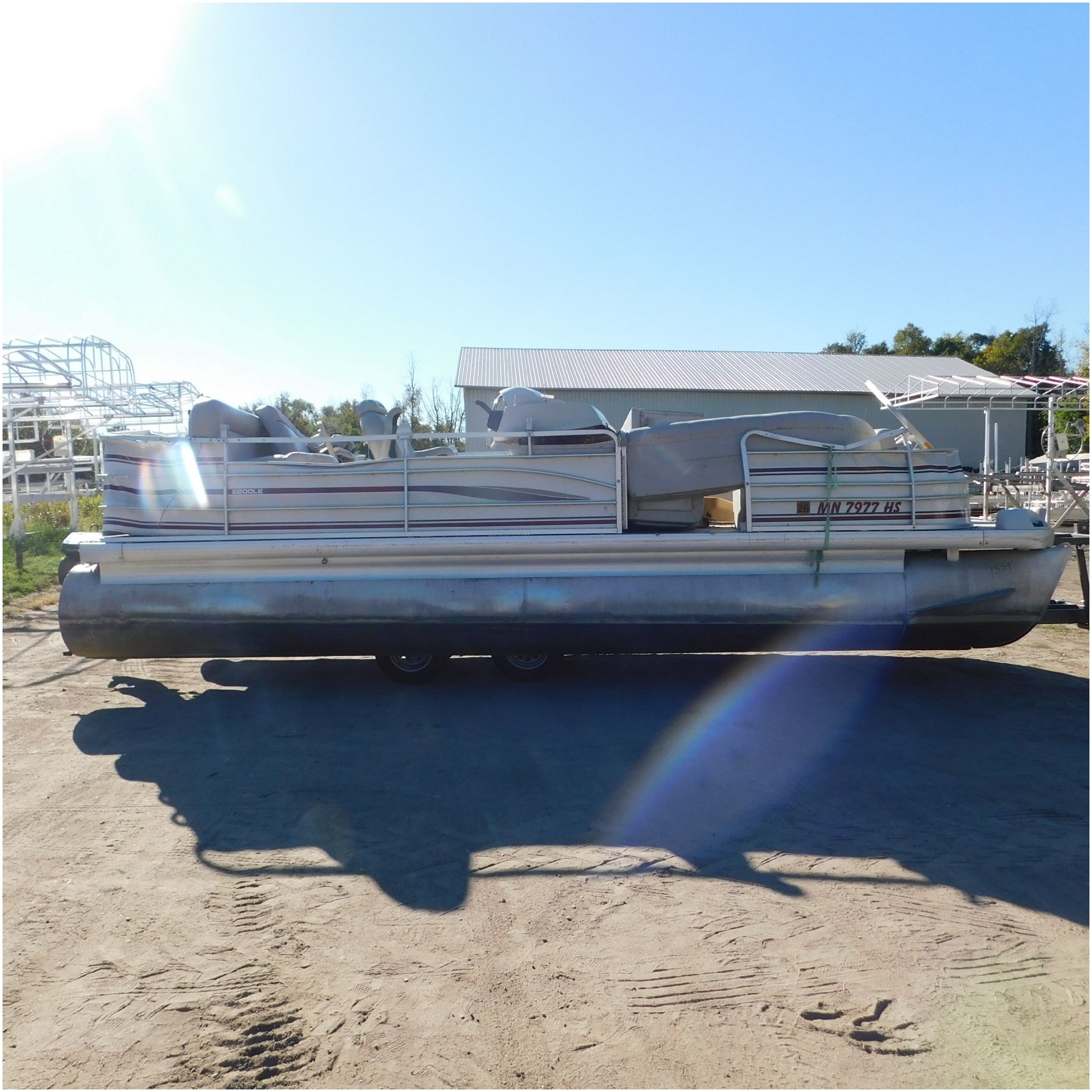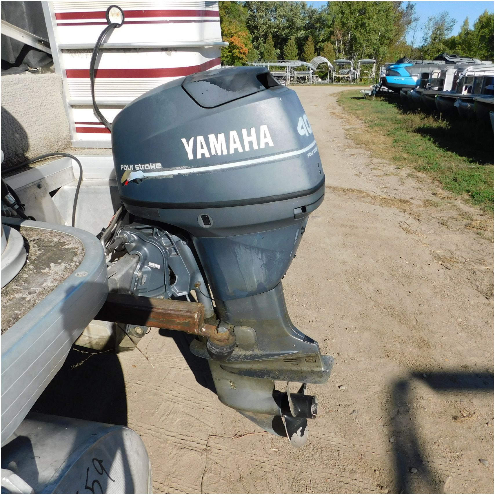 Up for auction is a 2000 San Pan 2200LE. This 22’ pontoon comes to us from being flipped and submerged. We are unsure of the exact year of the motor but we think the pontoon is equipped with a 2000 Yamaha F40TLR matching the year of the boat. The motor was started and that was it. The motor will need further inspection before any sort of use. The motor itself is weathered and paint is peeling. The front door is broke off and the railing is bent up good. The port side railing is tweaked and the siding is dented towards the rear. The stern railing is bent and the siding is dented up pretty good. The starboard side is really dented and the rails are pretty bent up. The starboard side door is also broke out. The toons are scuffed up, weathered and lake stained. The inside is completely all messed up from the roll over. The seats all around are ripped, not secure and just placed. The steering counsel is out of whack and cracked. The carpet is weathered. TRAILER NOT INCLUDED! Good Luck Bidding on this pontoon!