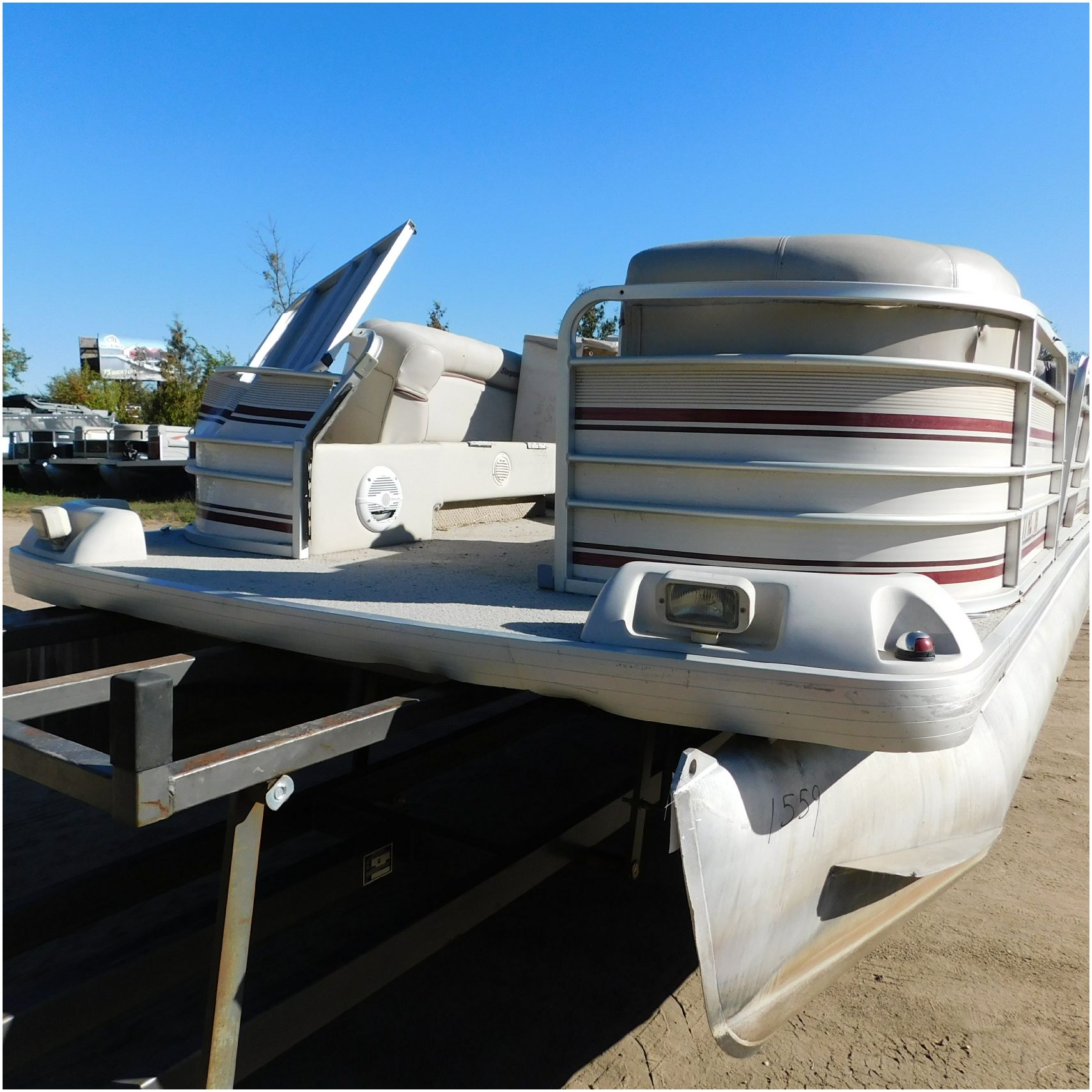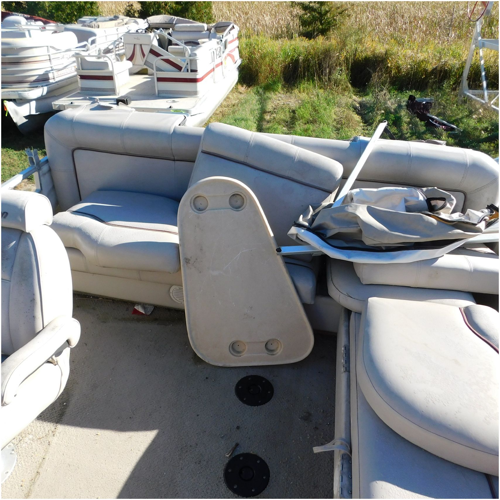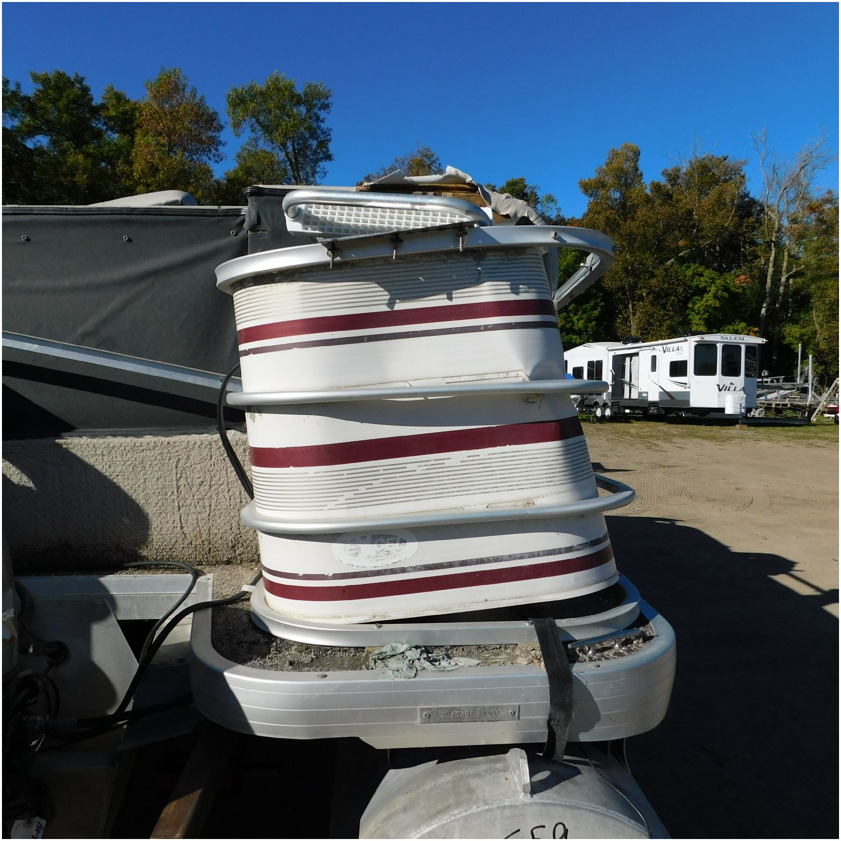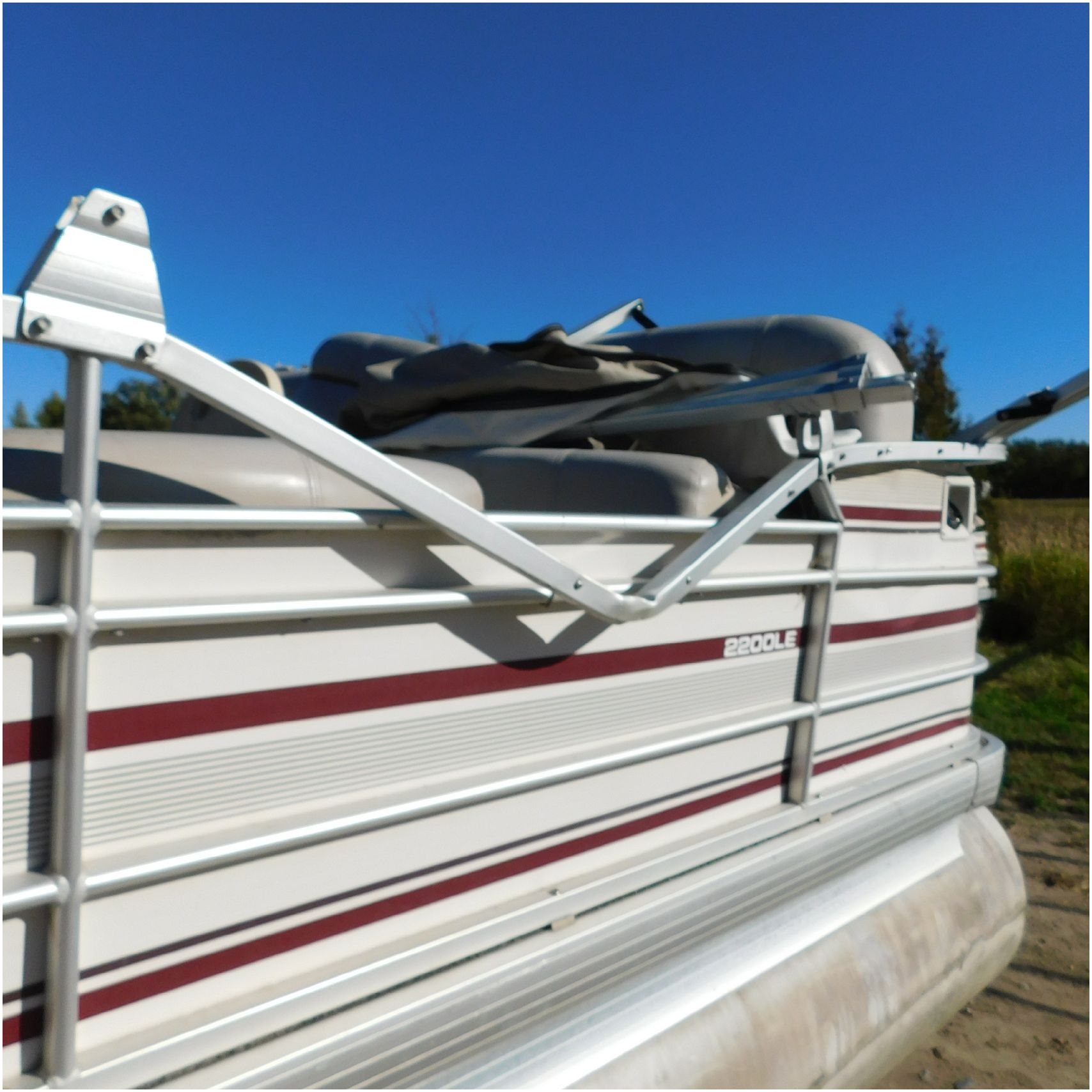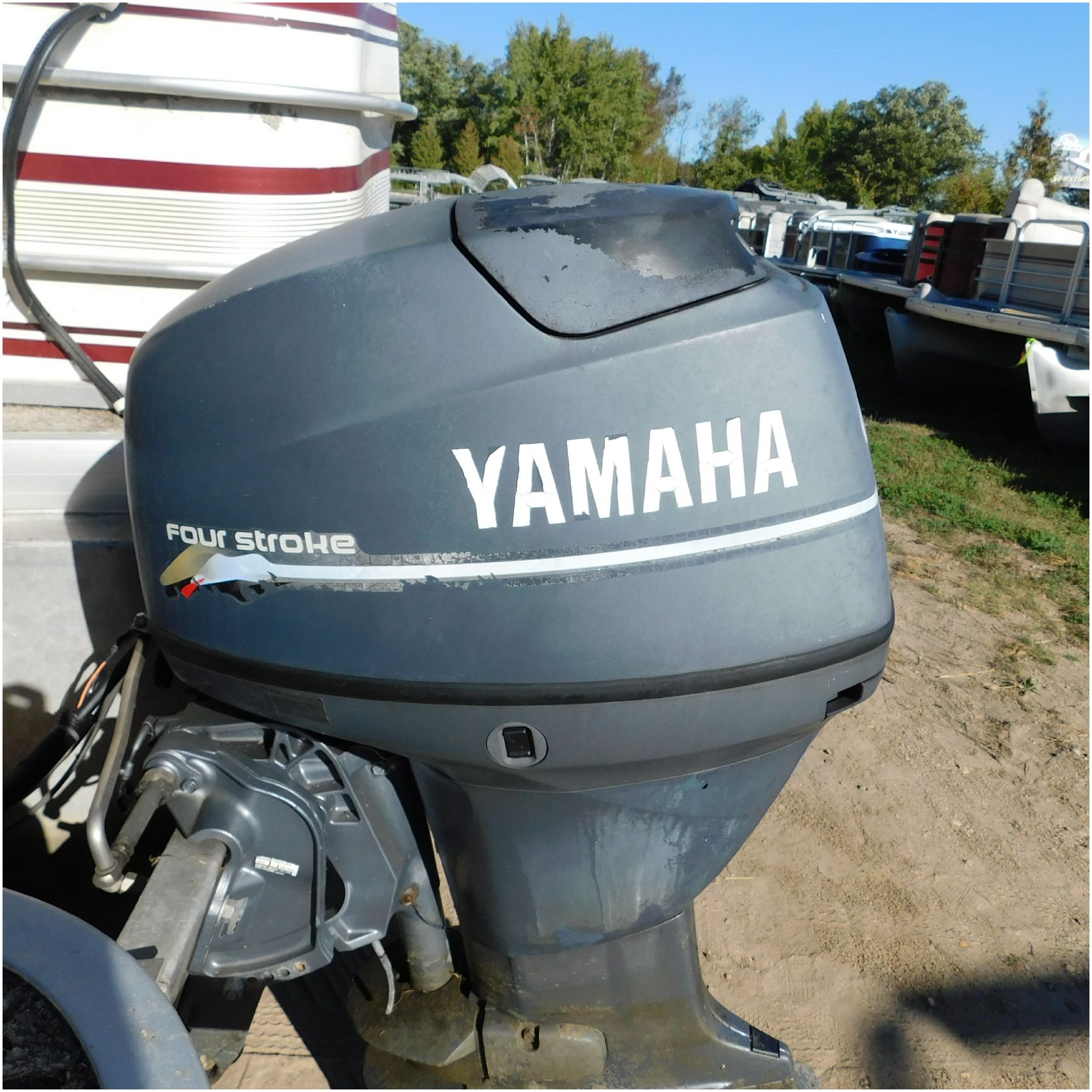 Up for auction is a 2000 San Pan 2200LE. This 22’ pontoon comes to us from being flipped and submerged. We are unsure of the exact year of the motor but we think the pontoon is equipped with a 2000 Yamaha F40TLR matching the year of the boat. The motor was started and that was it. The motor will need further inspection before any sort of use. The motor itself is weathered and paint is peeling. The front door is broke off and the railing is bent up good. The port side railing is tweaked and the siding is dented towards the rear. The stern railing is bent and the siding is dented up pretty good. The starboard side is really dented and the rails are pretty bent up. The starboard side door is also broke out. The toons are scuffed up, weathered and lake stained. The inside is completely all messed up from the roll over. The seats all around are ripped, not secure and just placed. The steering counsel is out of whack and cracked. The carpet is weathered. TRAILER NOT INCLUDED! Good Luck Bidding on this pontoon!