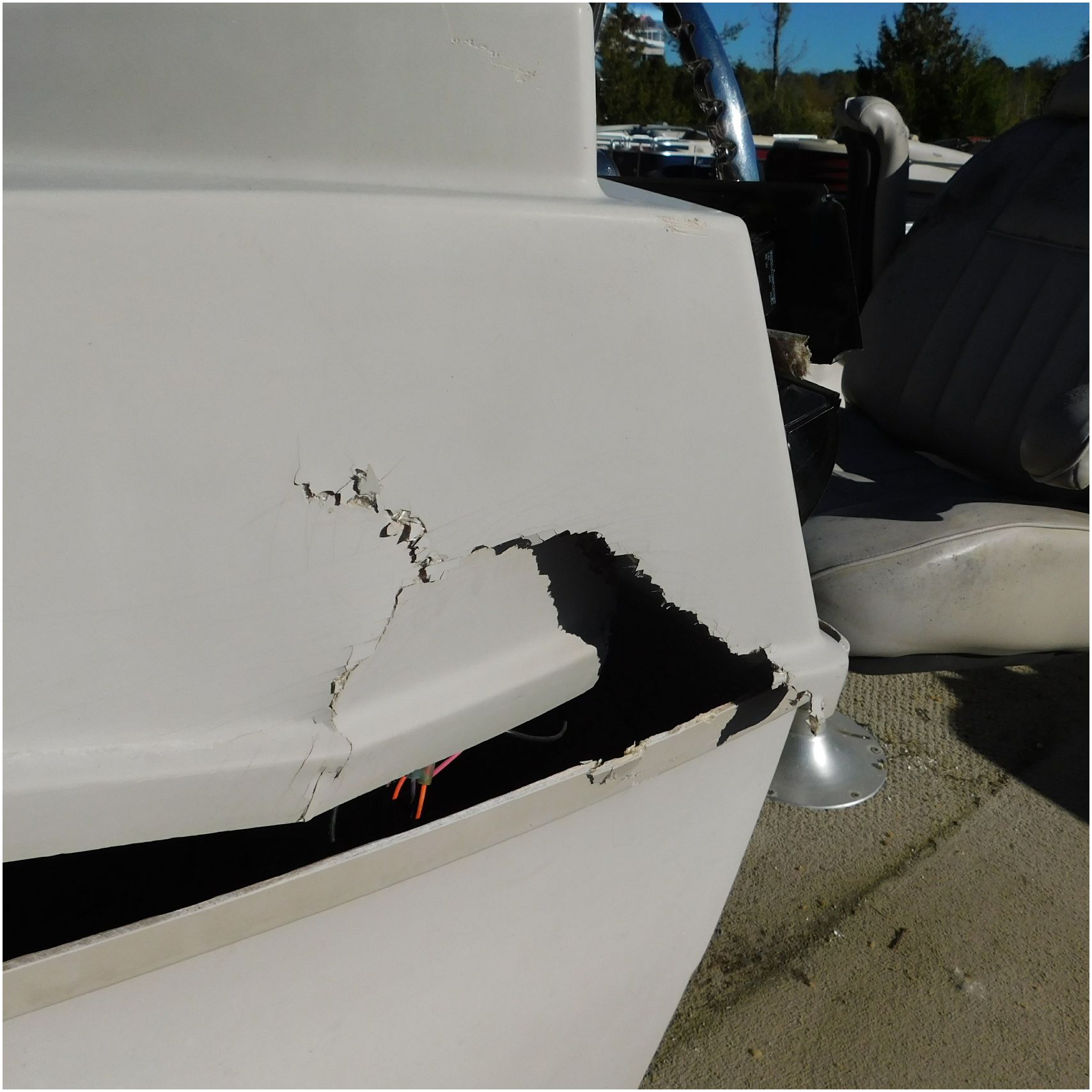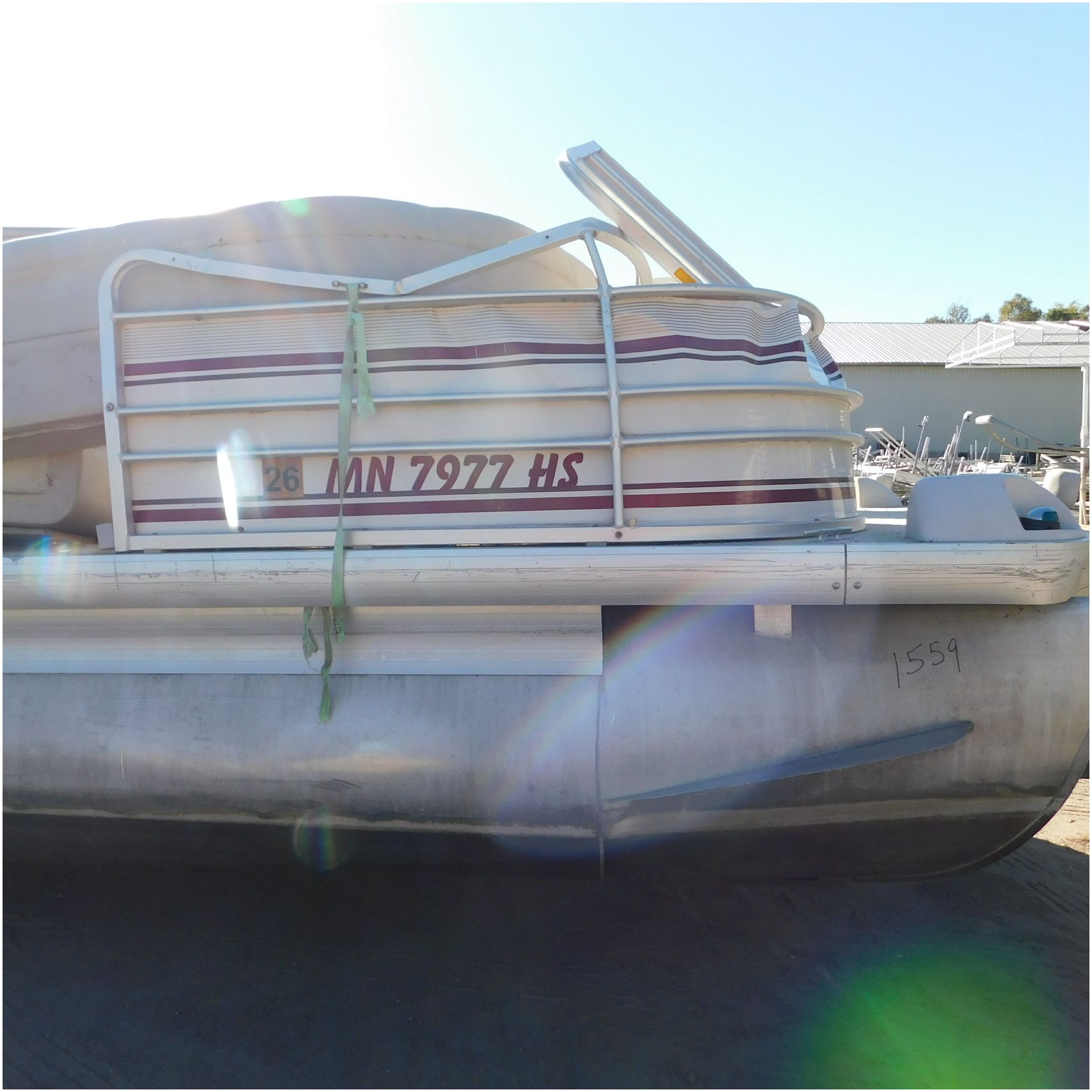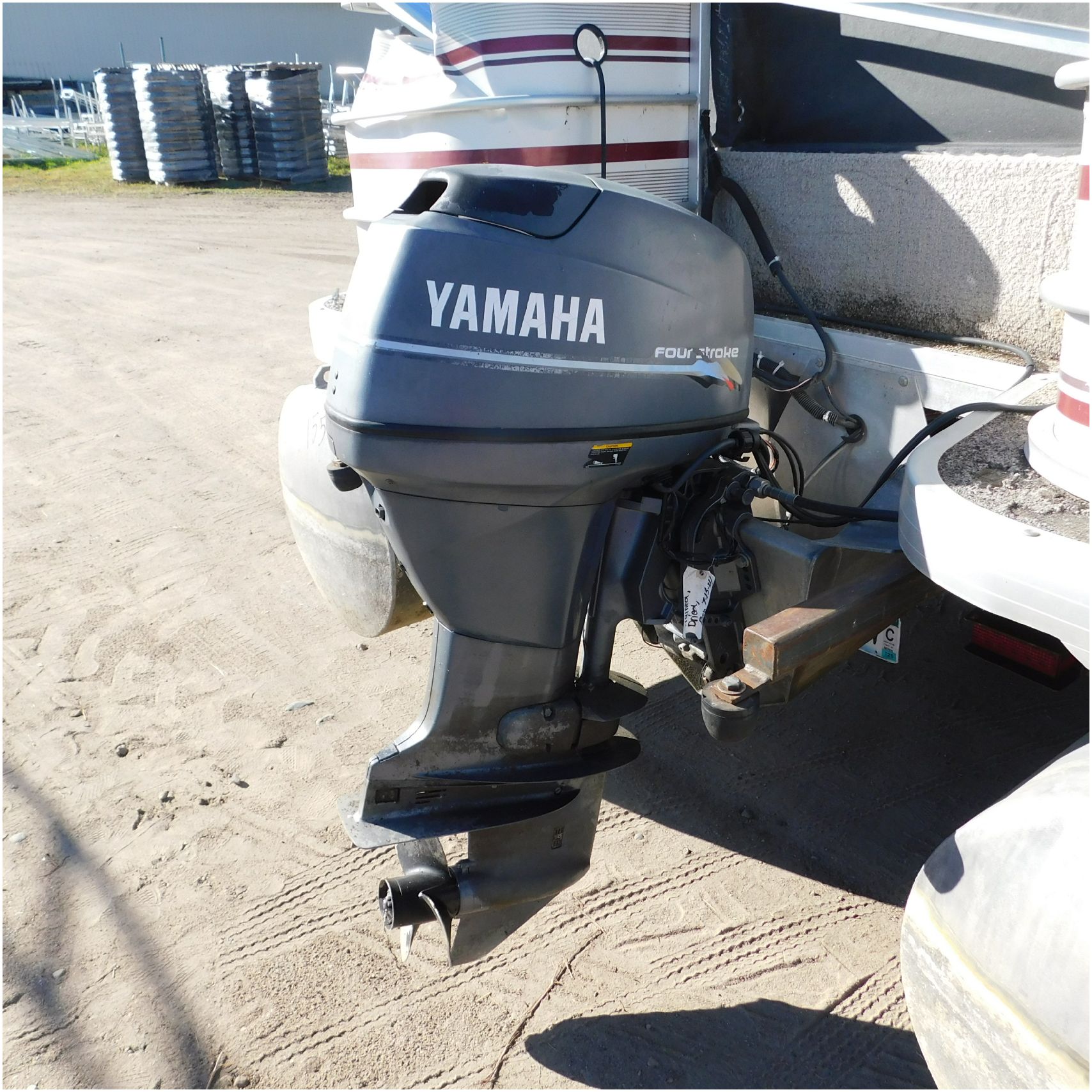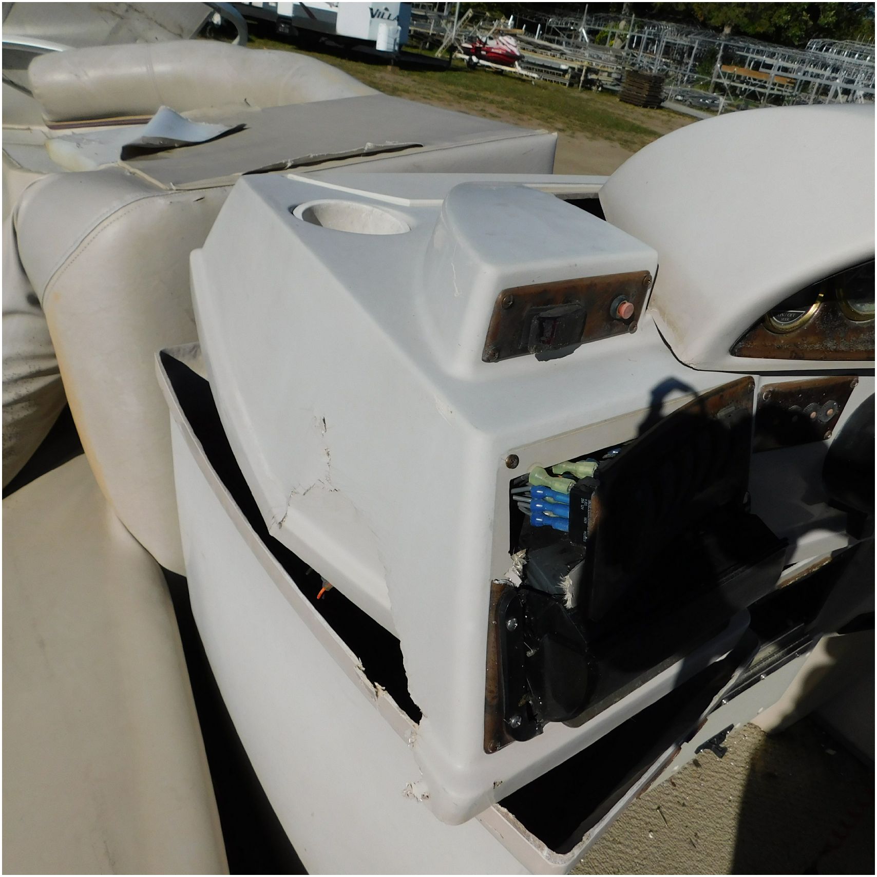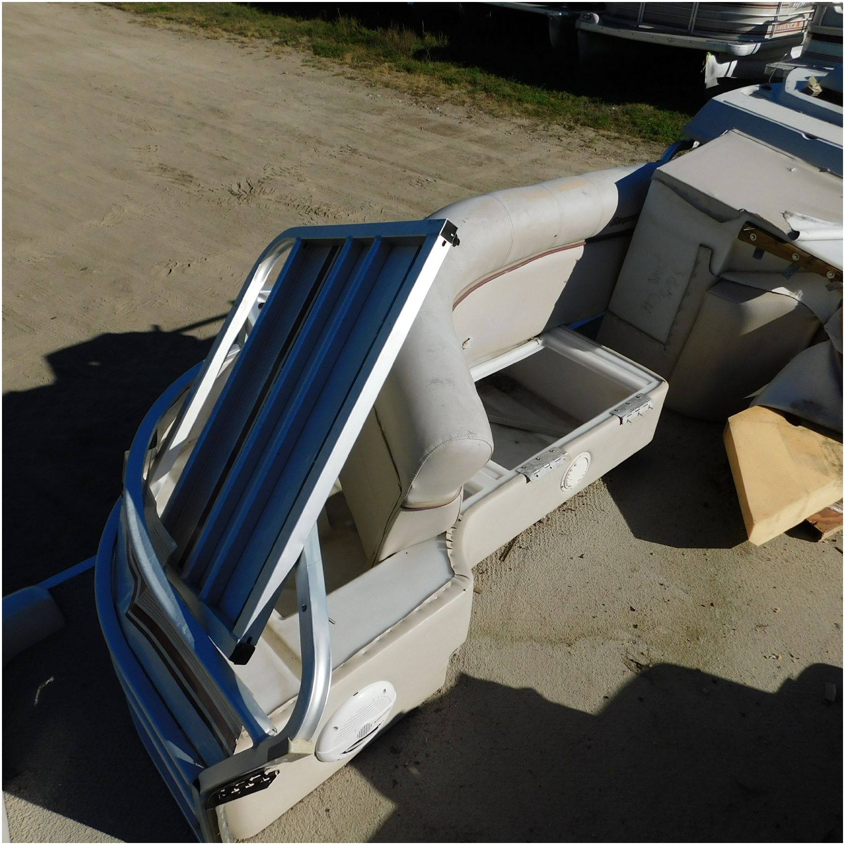 Up for auction is a 2000 San Pan 2200LE. This 22’ pontoon comes to us from being flipped and submerged. We are unsure of the exact year of the motor but we think the pontoon is equipped with a 2000 Yamaha F40TLR matching the year of the boat. The motor was started and that was it. The motor will need further inspection before any sort of use. The motor itself is weathered and paint is peeling. The front door is broke off and the railing is bent up good. The port side railing is tweaked and the siding is dented towards the rear. The stern railing is bent and the siding is dented up pretty good. The starboard side is really dented and the rails are pretty bent up. The starboard side door is also broke out. The toons are scuffed up, weathered and lake stained. The inside is completely all messed up from the roll over. The seats all around are ripped, not secure and just placed. The steering counsel is out of whack and cracked. The carpet is weathered. TRAILER NOT INCLUDED! Good Luck Bidding on this pontoon!