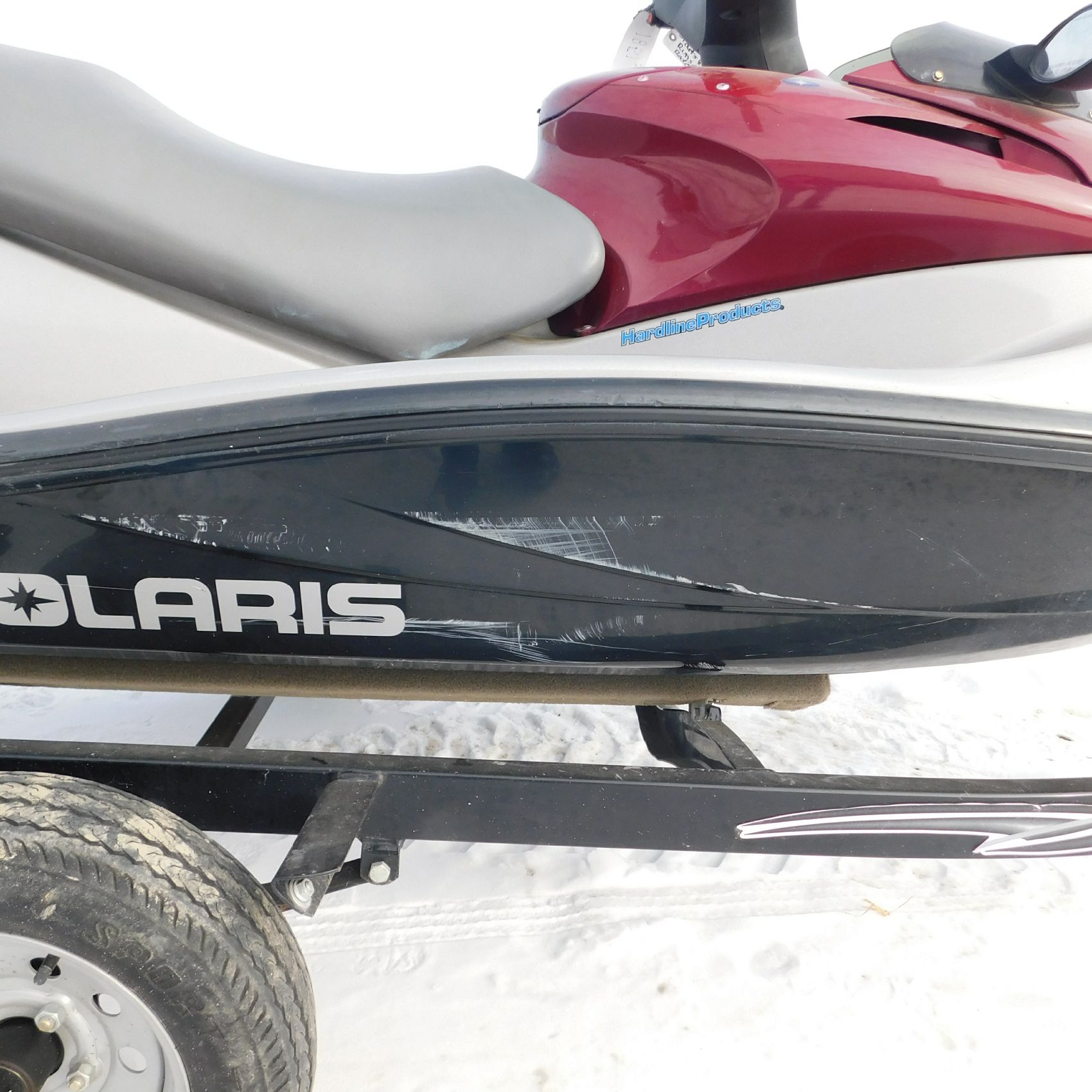 The Hull (bottom) of the jet ski is scuffed and scratched up but nothing to major from what we can see as its sitting on a trailer and could be some hidden damage. We also did lake-test this unit.